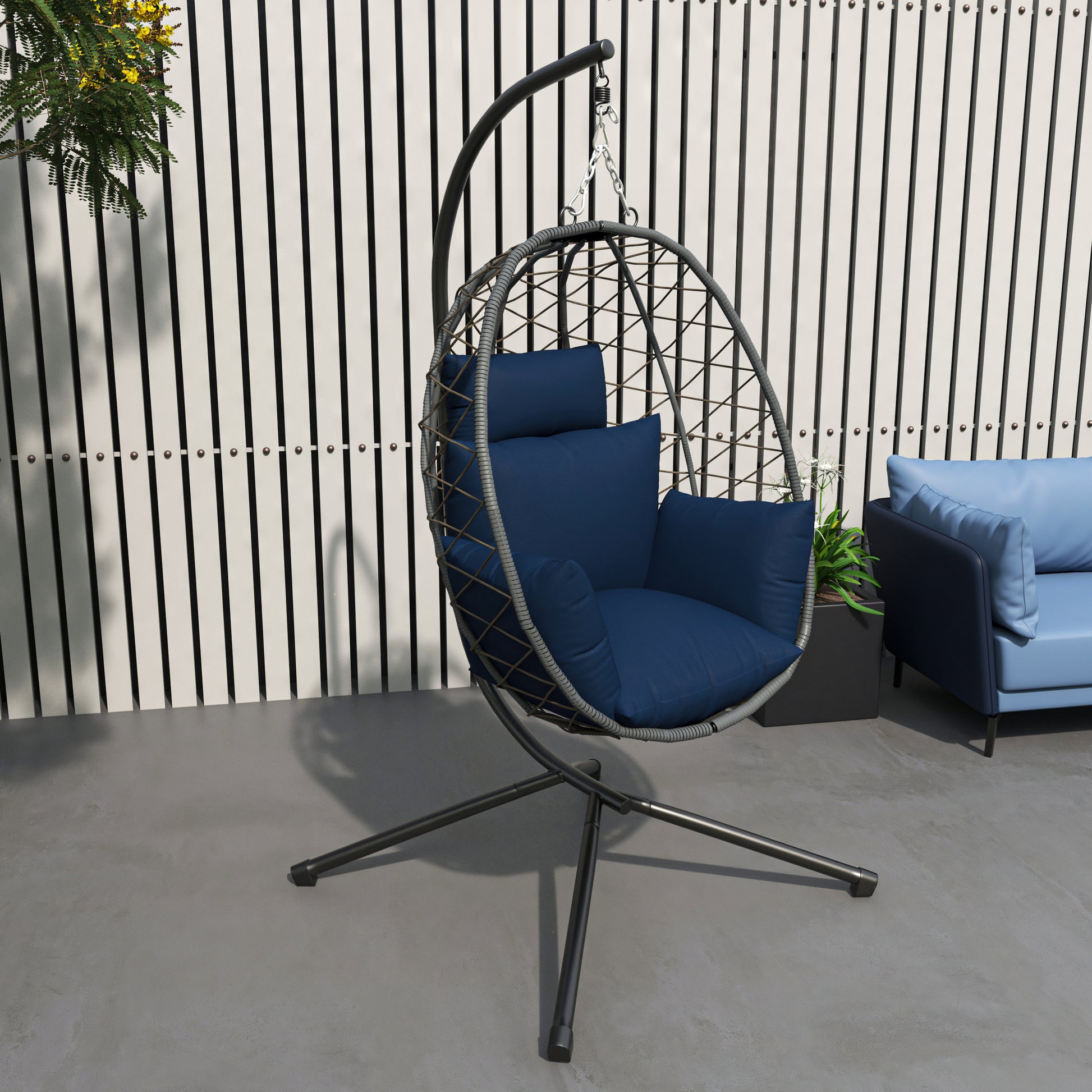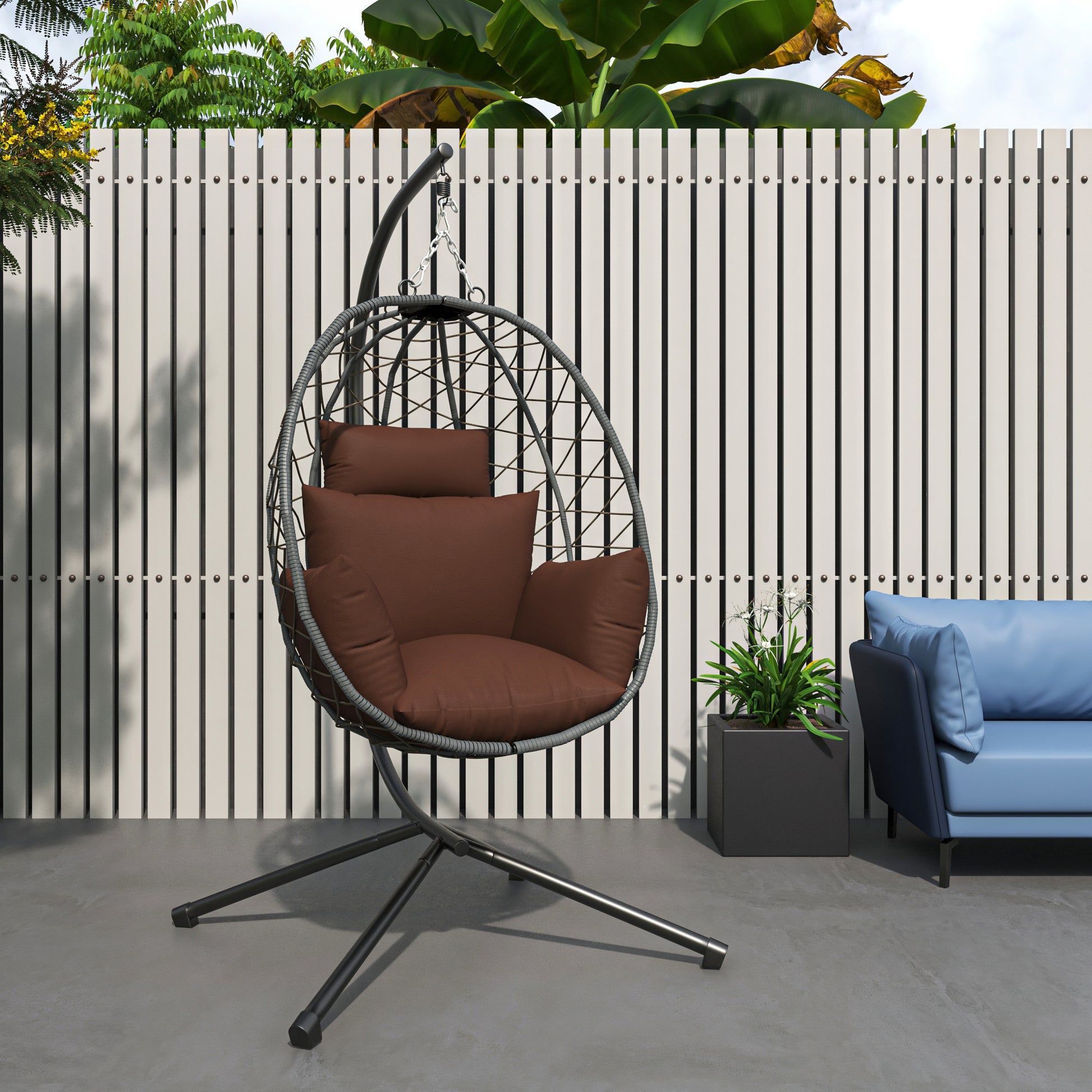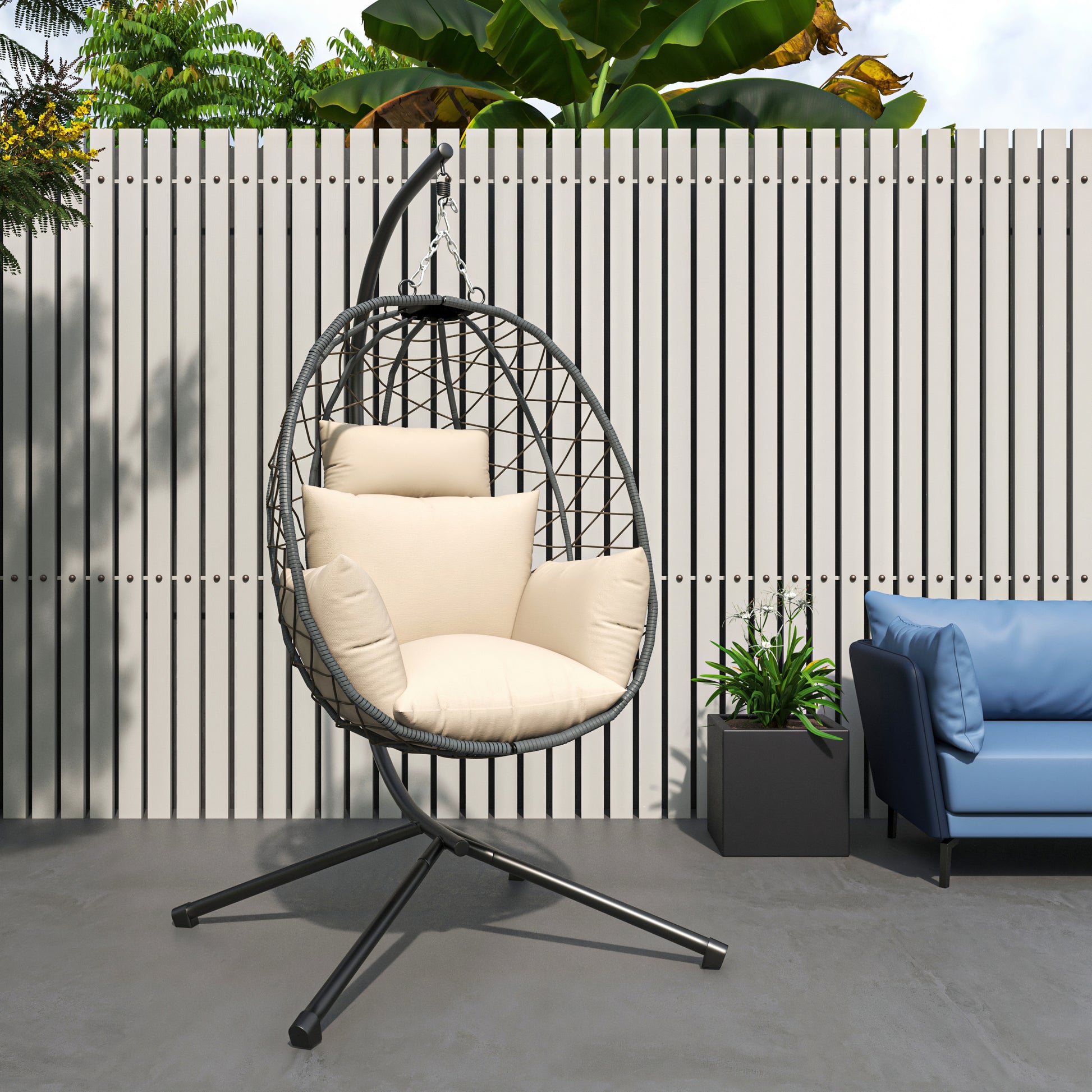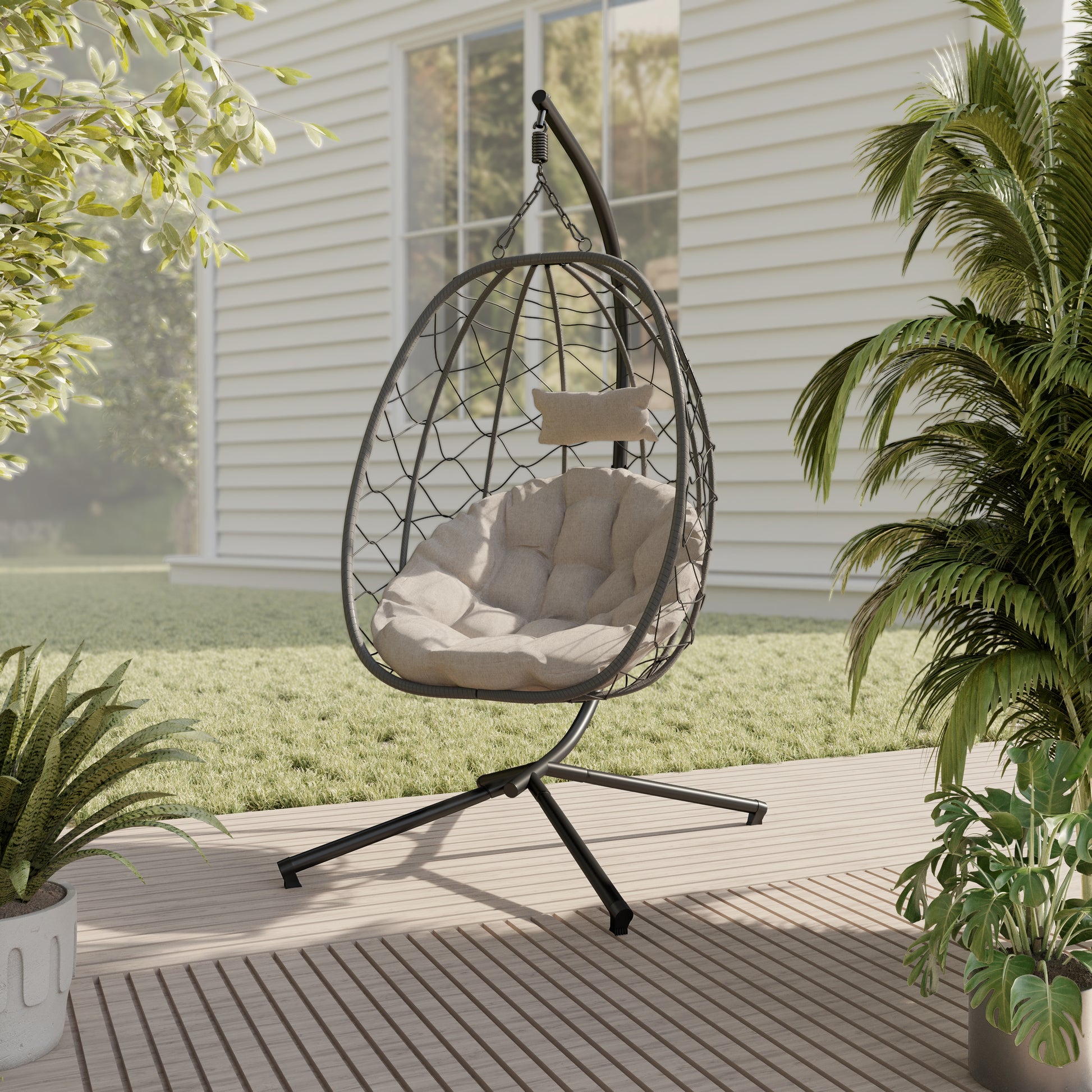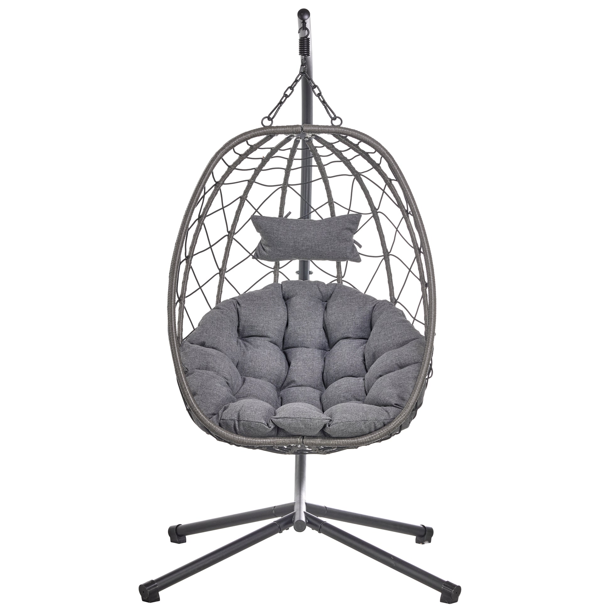 Summit Outdoor Single Person Egg Swing Chair in Grey Steel Frame With Removable Cushions