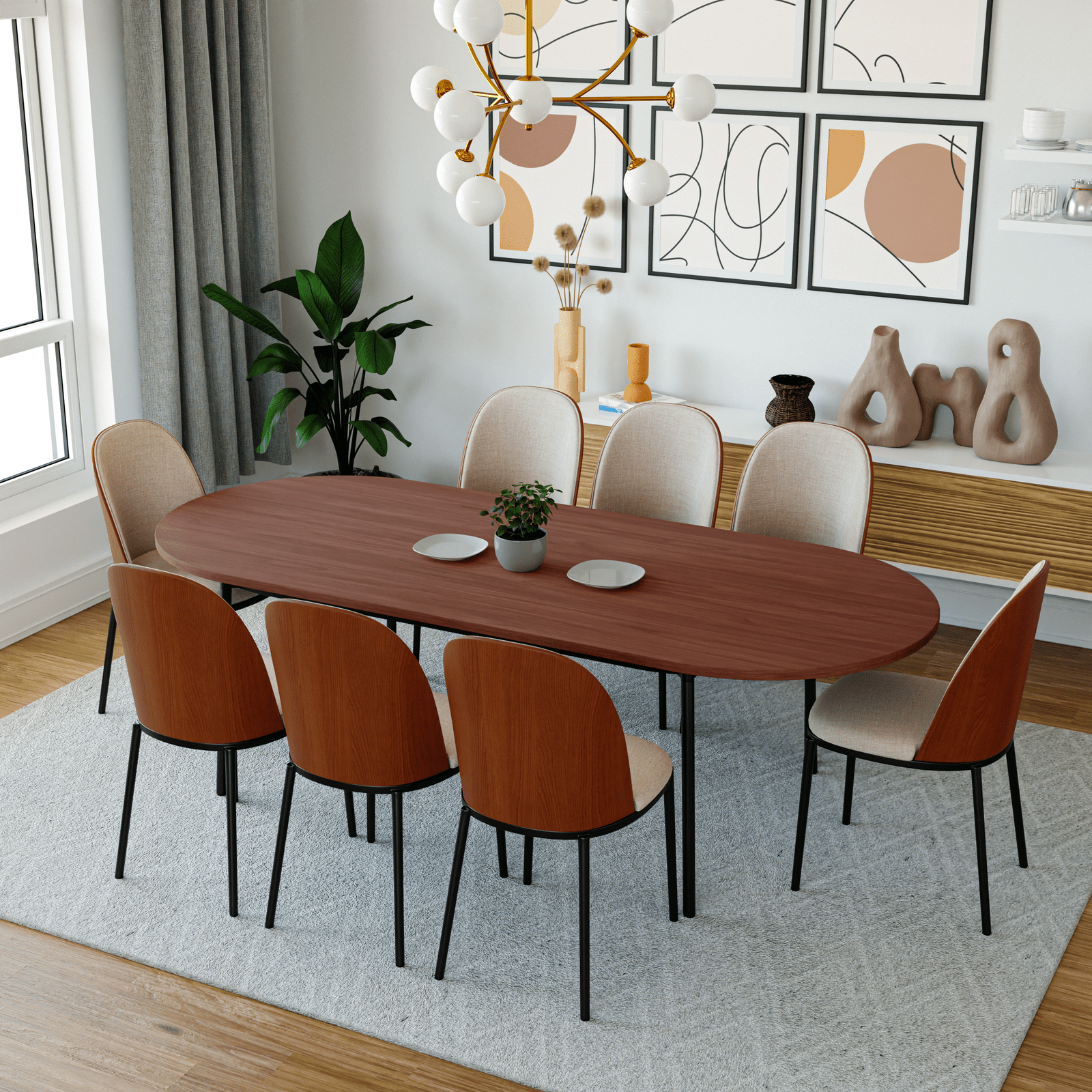 Tule 9-Piece Dining Set in Steel with 8 Upholstered Seat Dining Chairs and 83" Oval Dining Table with MDF Tabletop