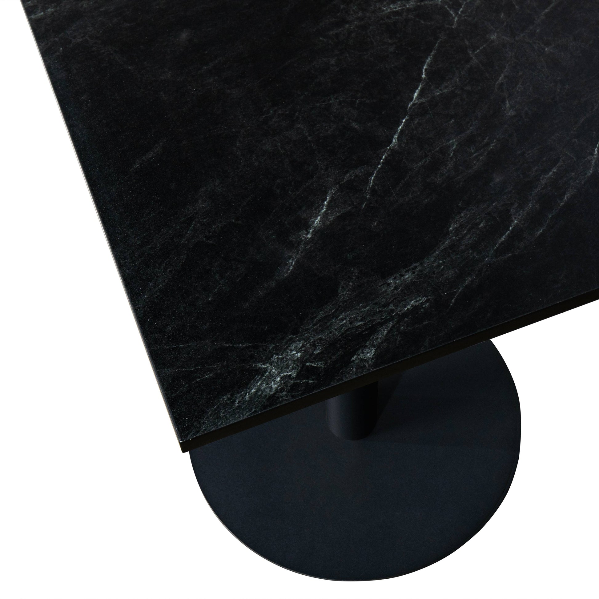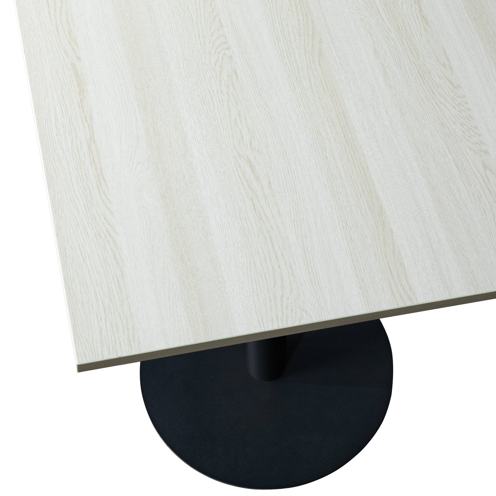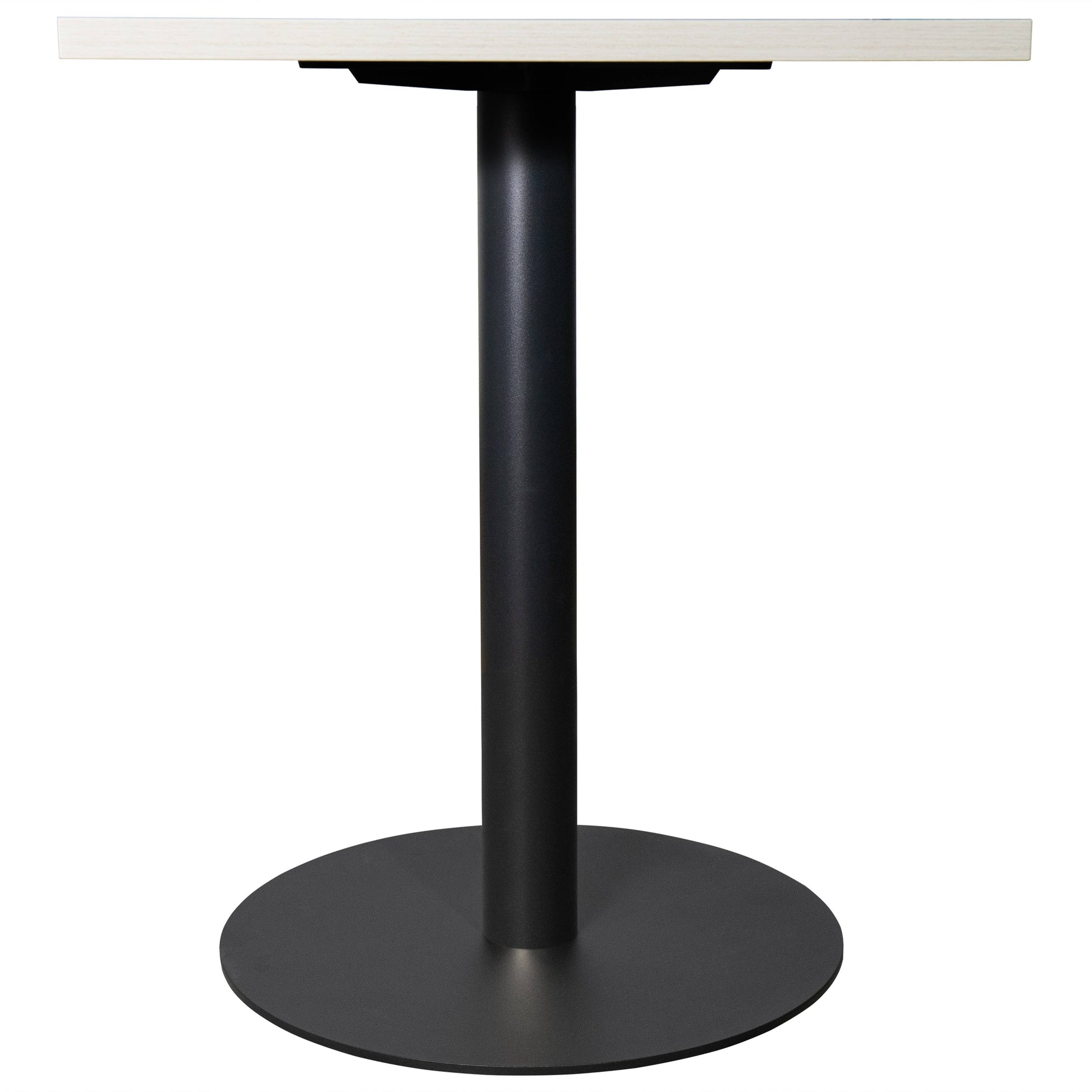 - The table stands on a round solid steel base with a central support column. This construction ensures strong, balanced support and holds up well under regular use in both commercial and residential settings.
