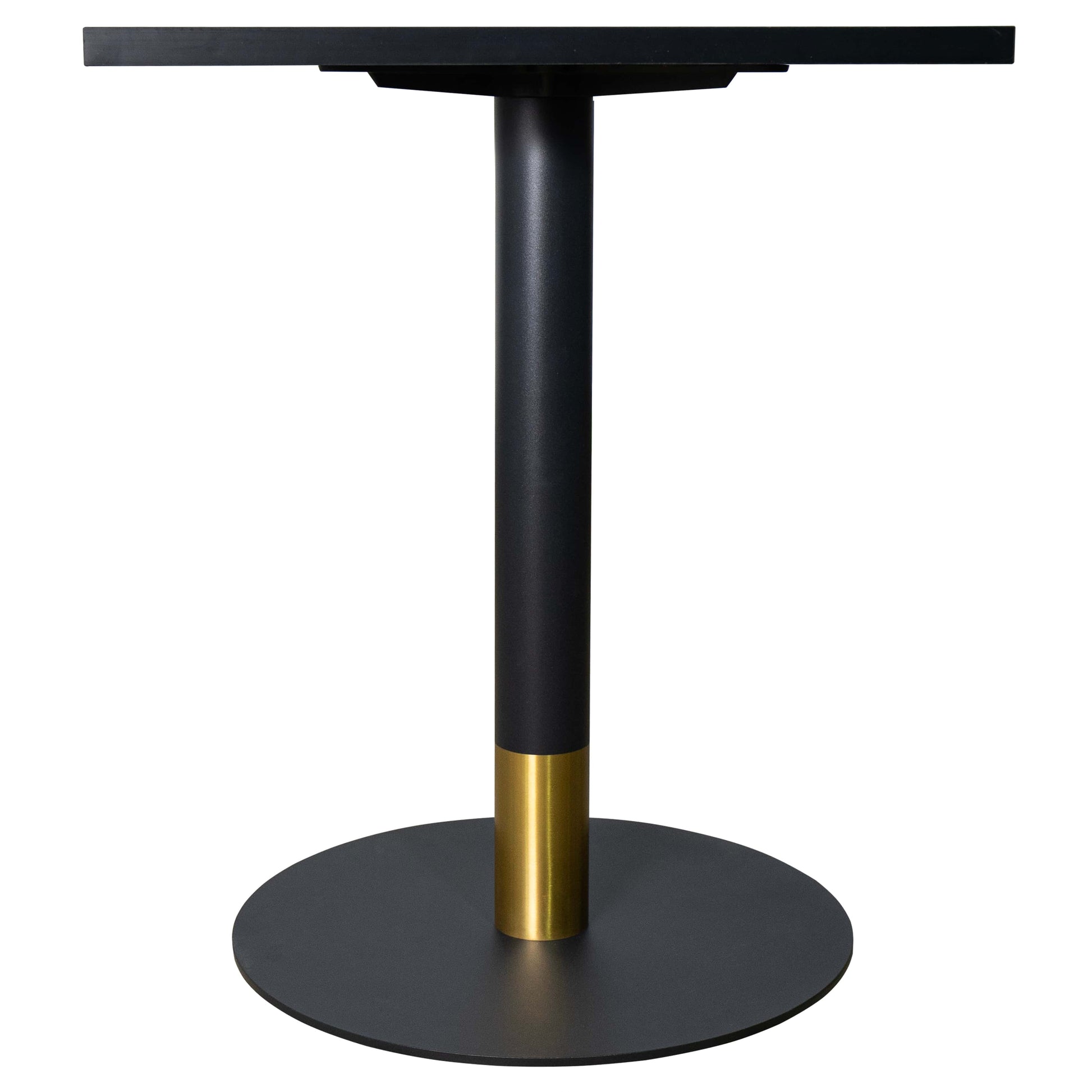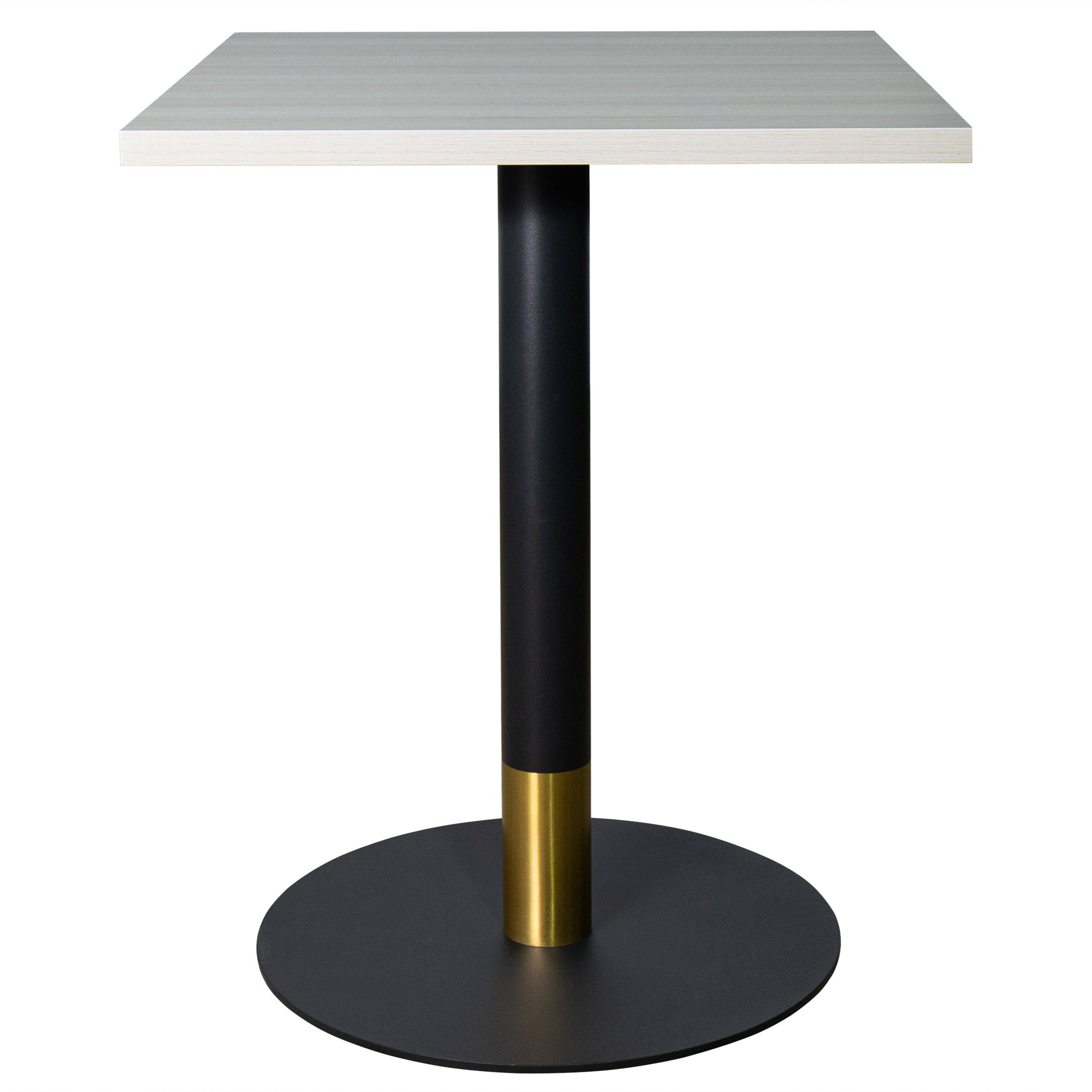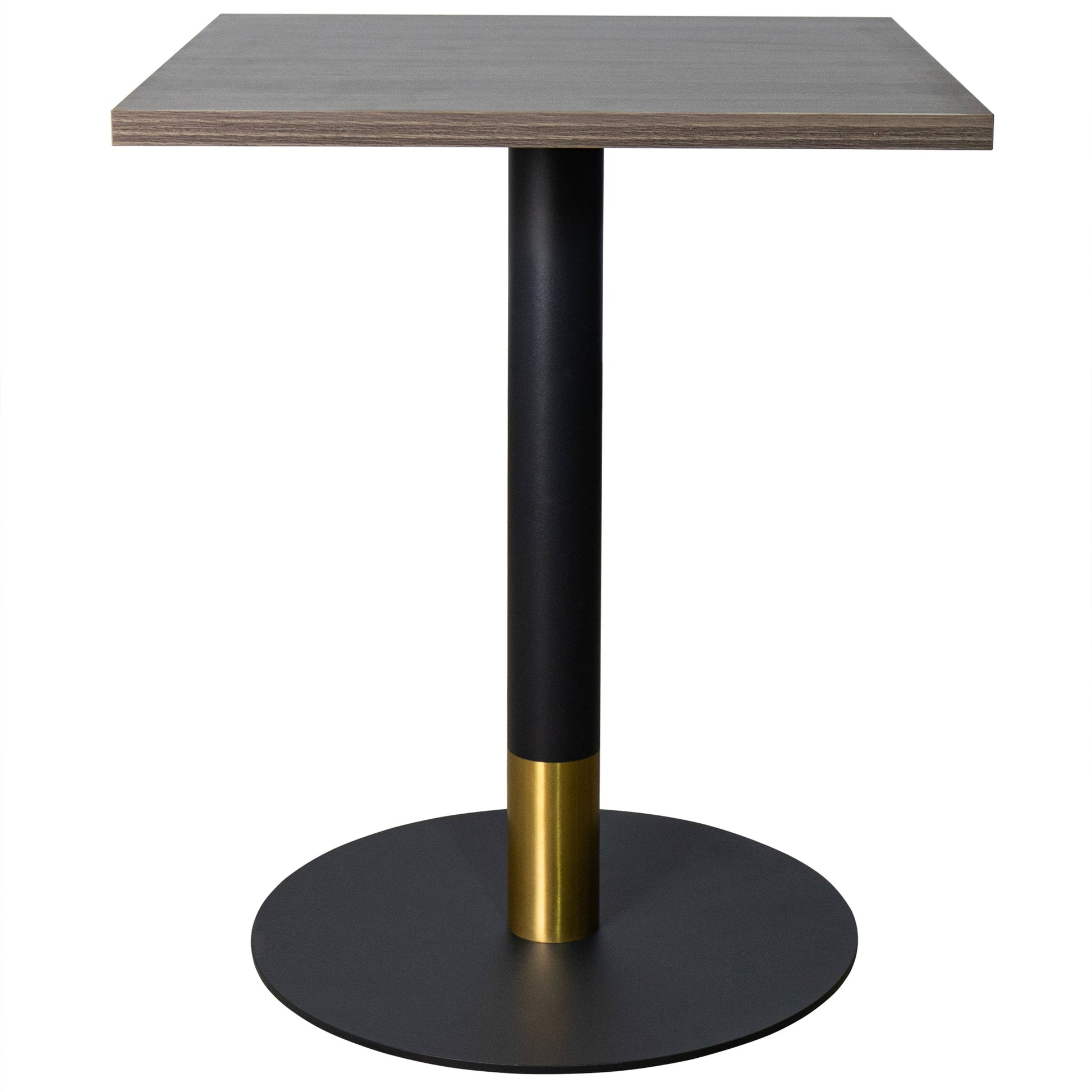 LeisureMod Vail Collection Dining Table Black/Gold Round Base With 24" Square Black MDF Top