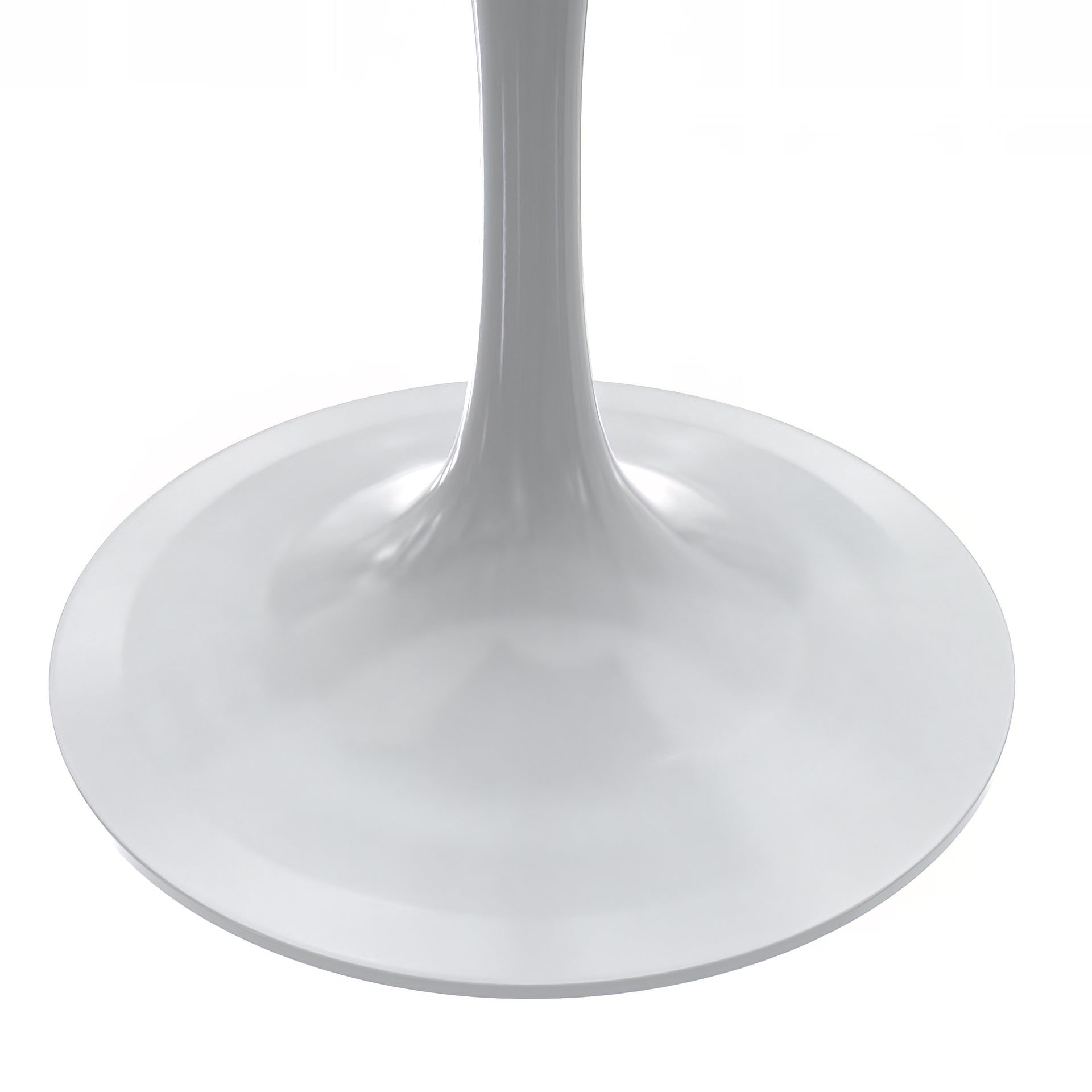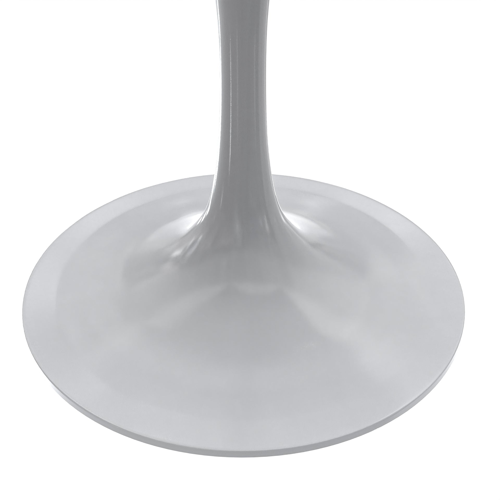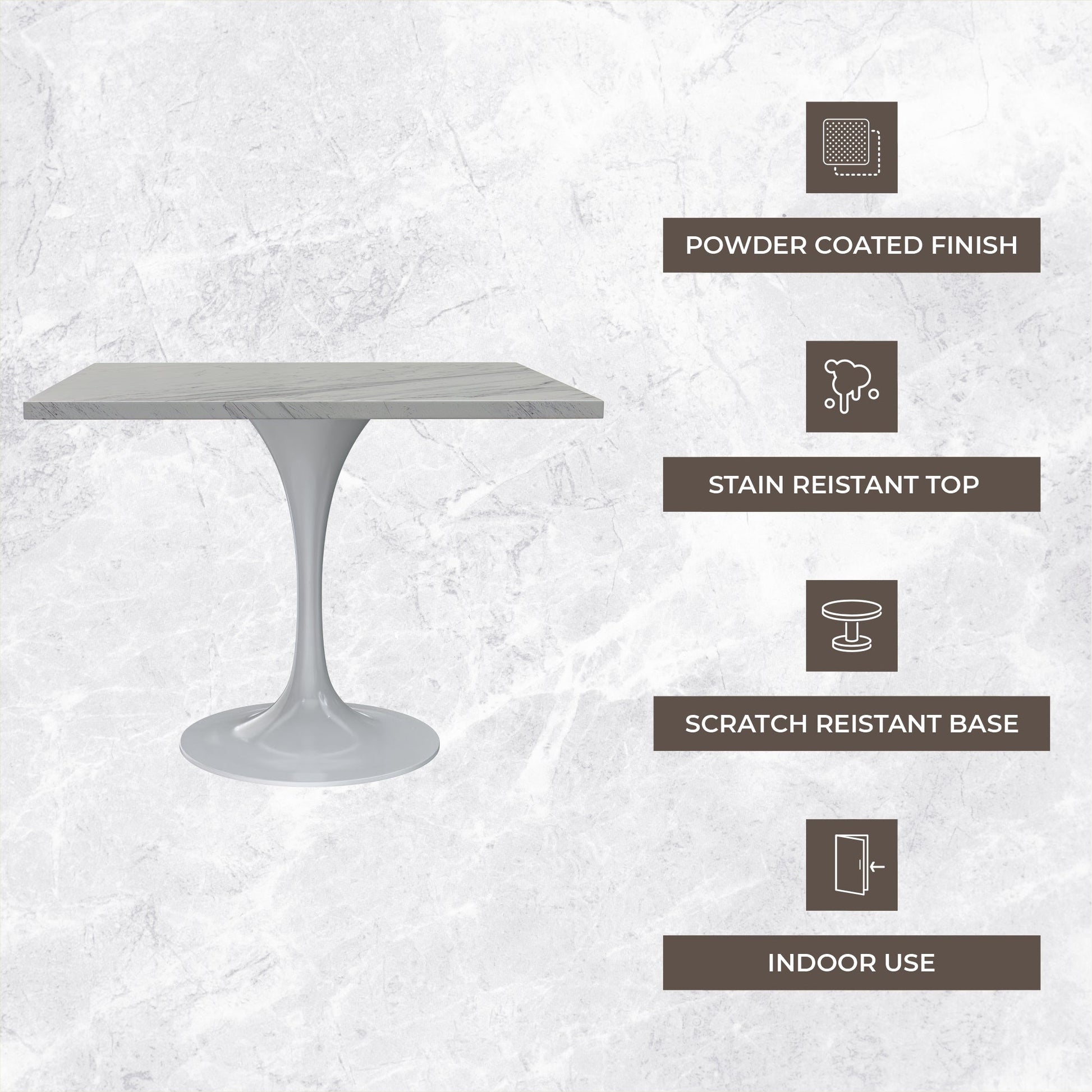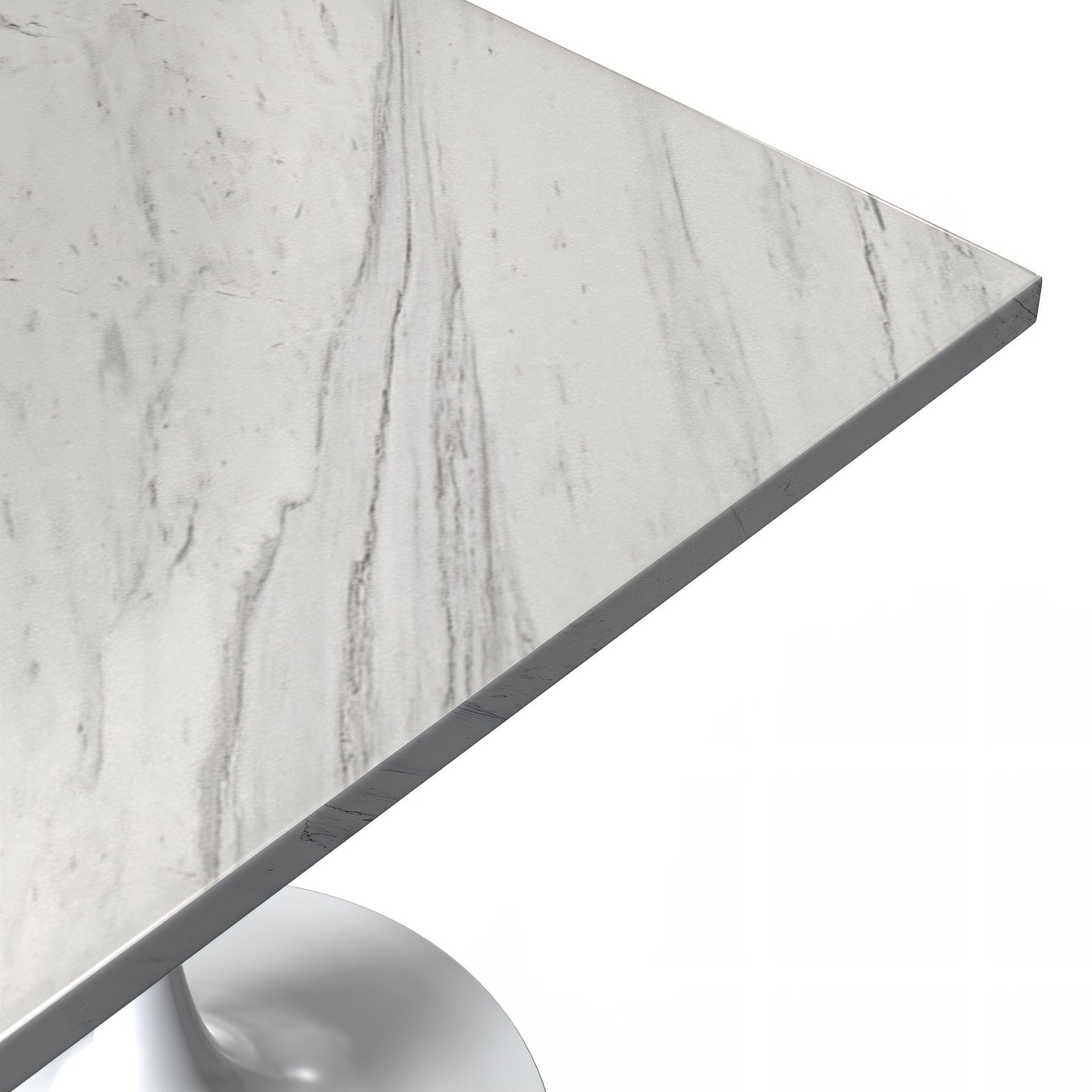 Verve Square Dining Table with a Laminated White Marbleized Tabletop and White Steel Pedestal Base