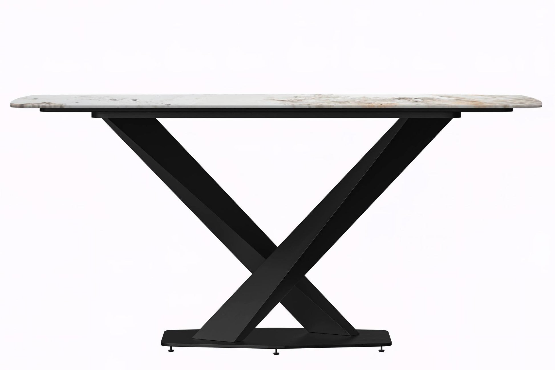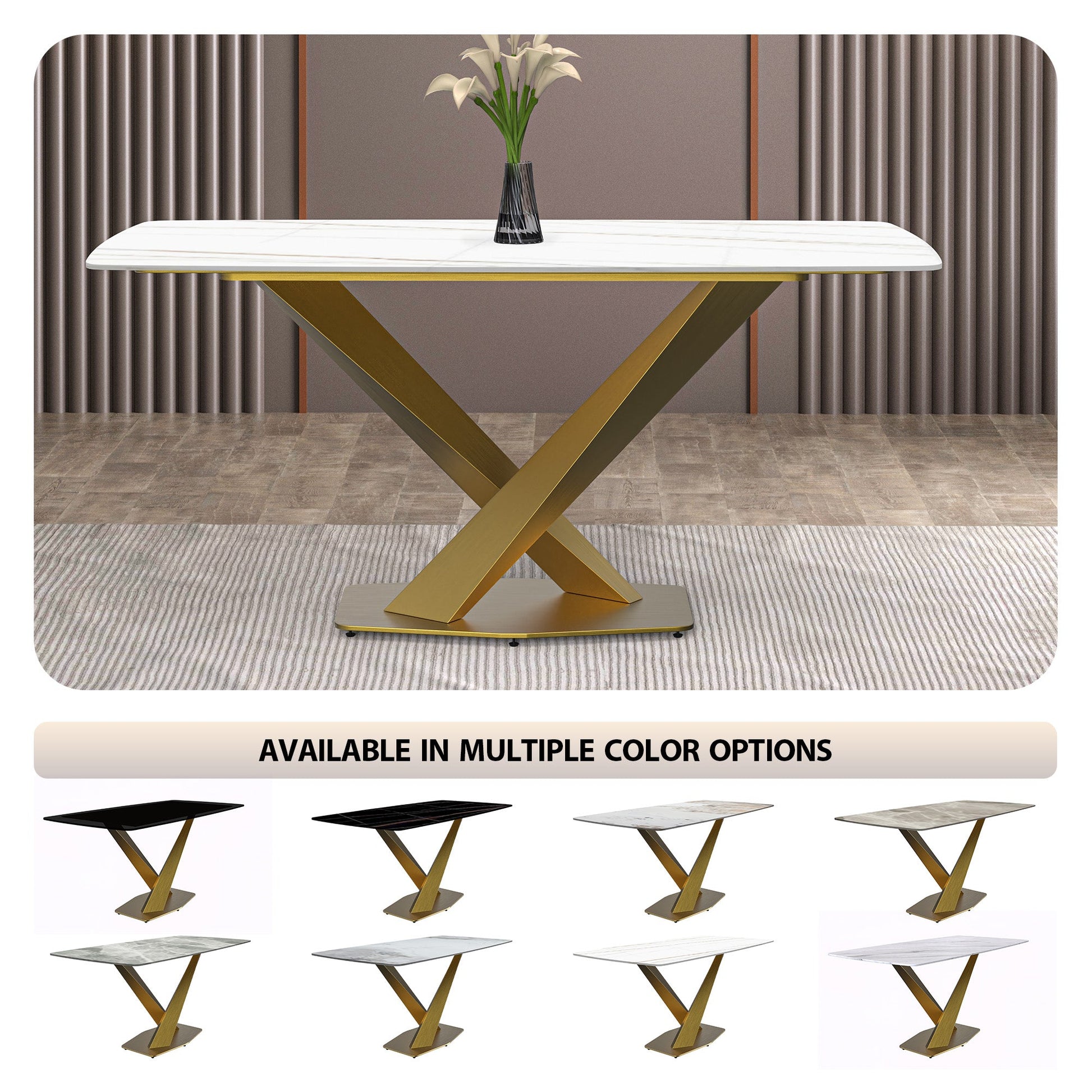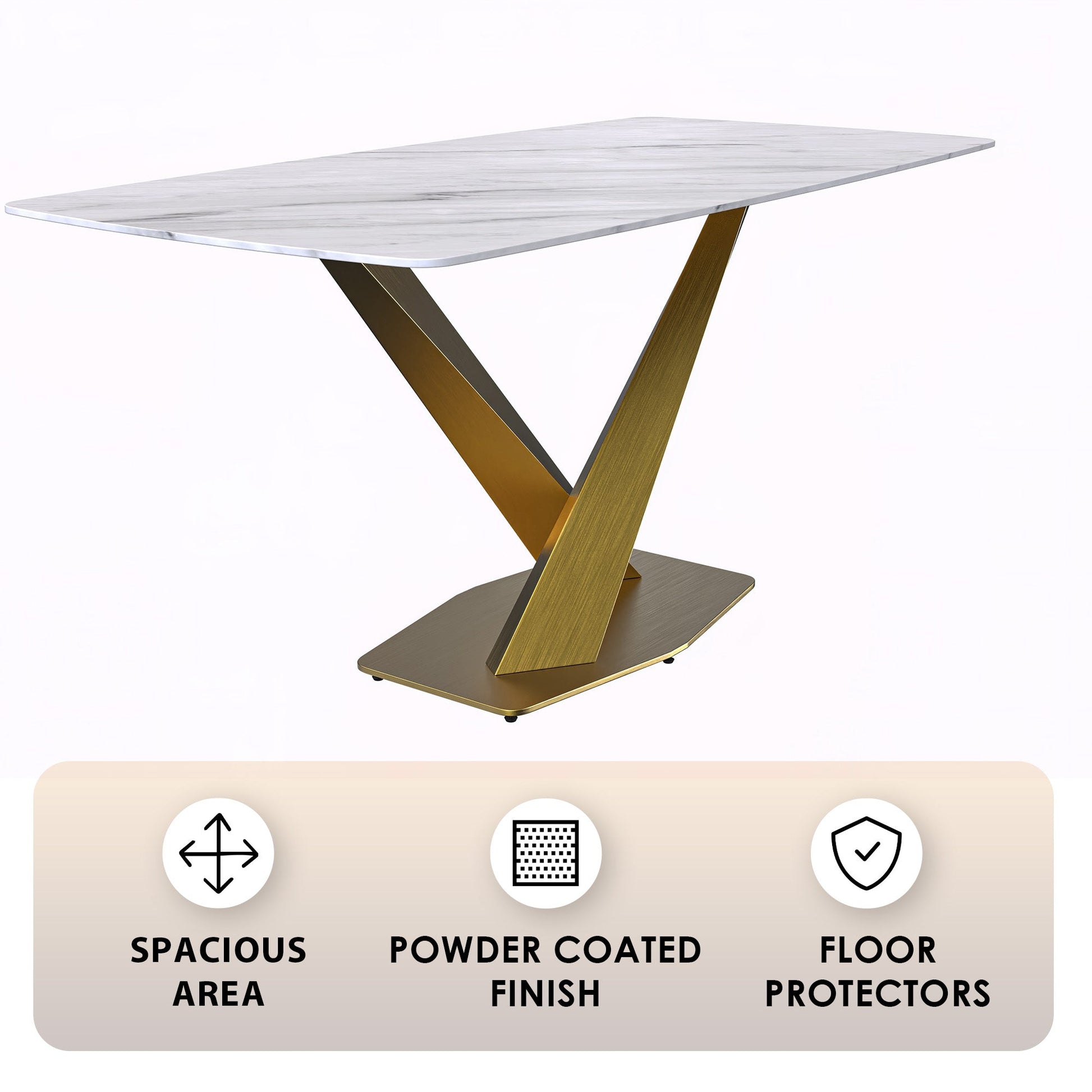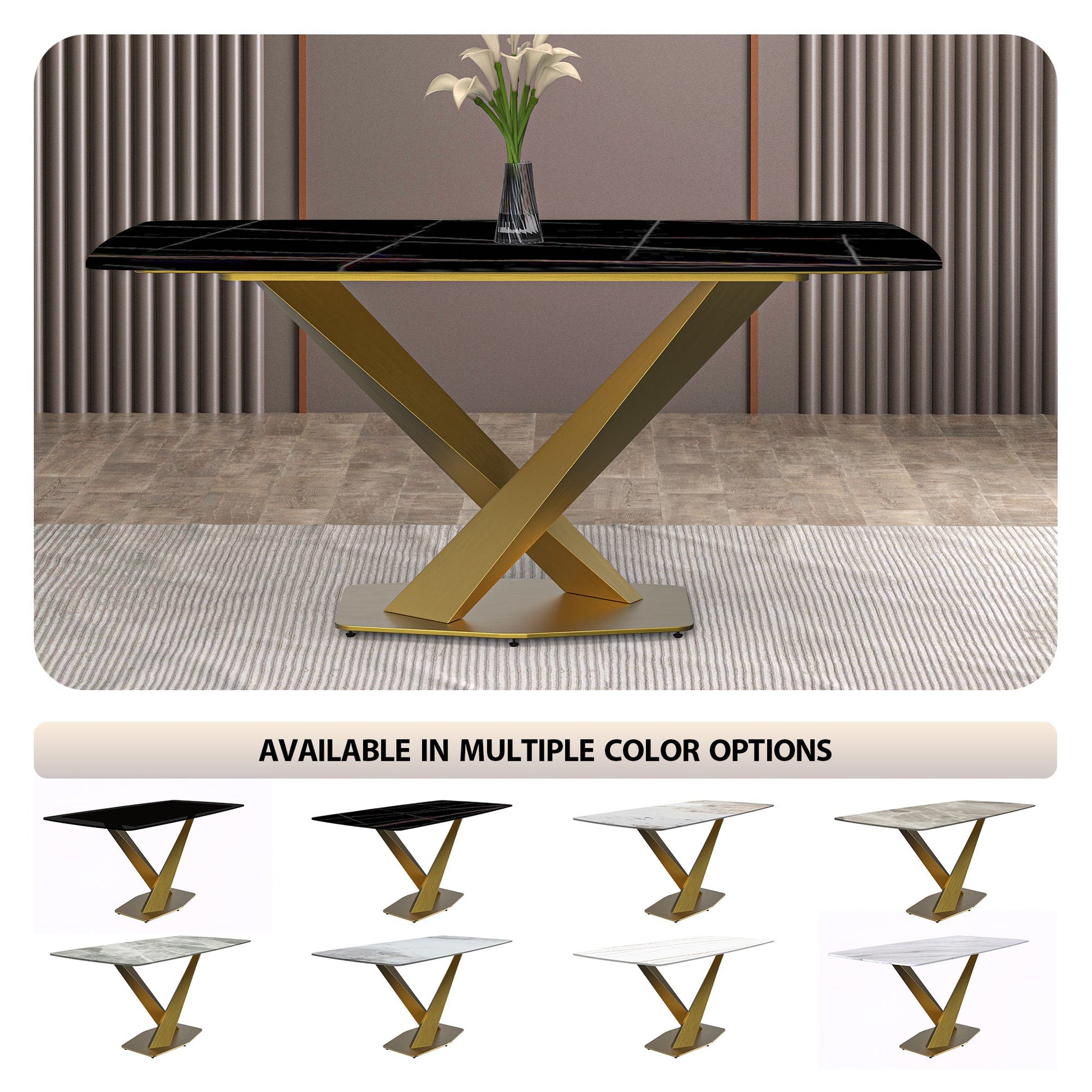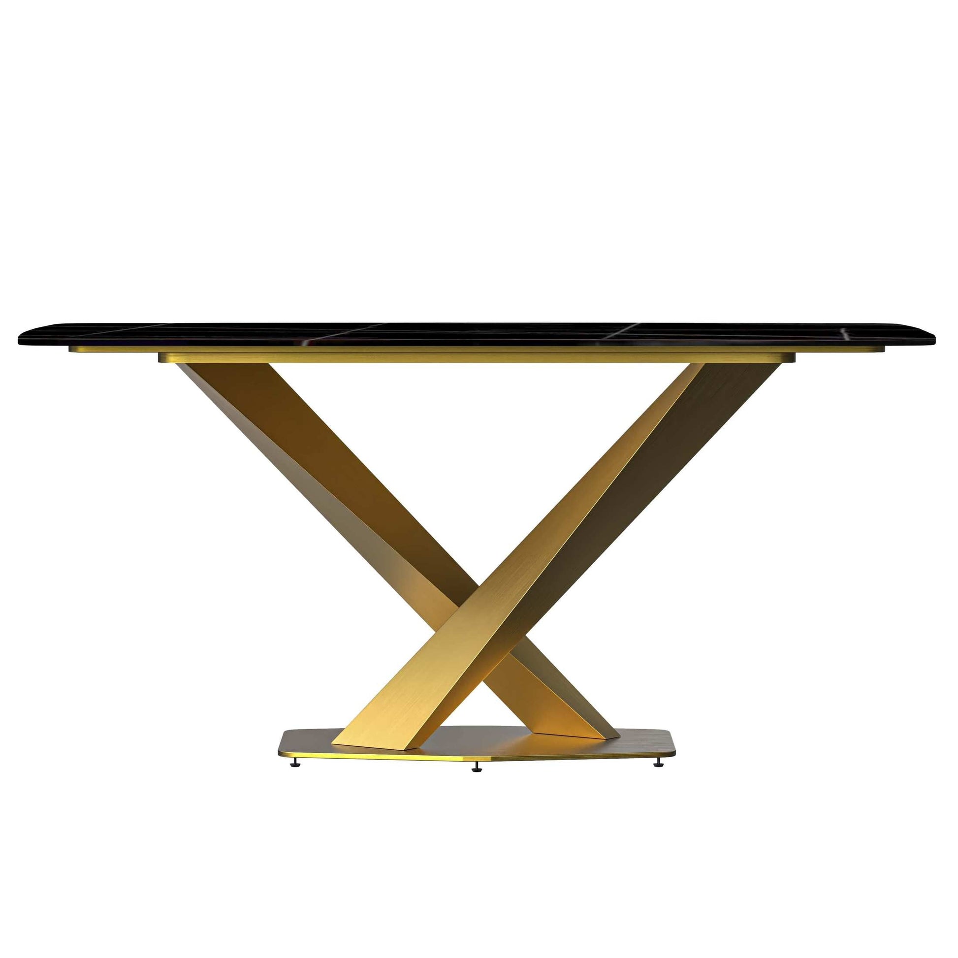 Voren Dining Table with Rectangular Tabletop with Gold/Black Stainless Steel Base