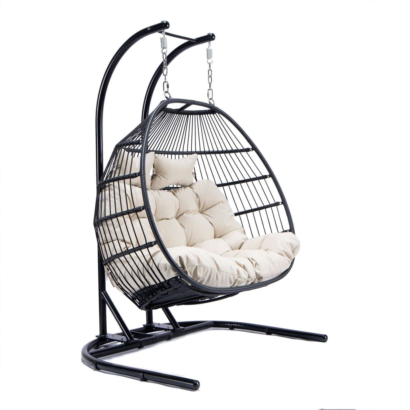 Wicker 2 Person Double Folding Hanging Egg Swing Chair