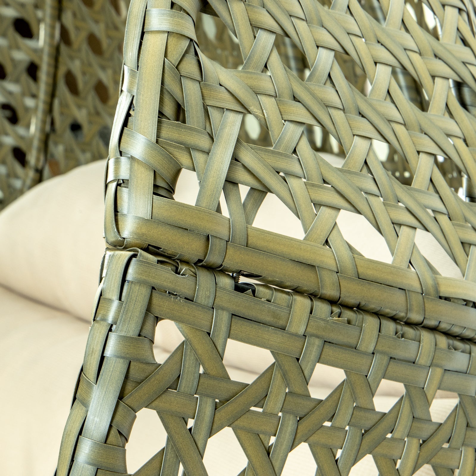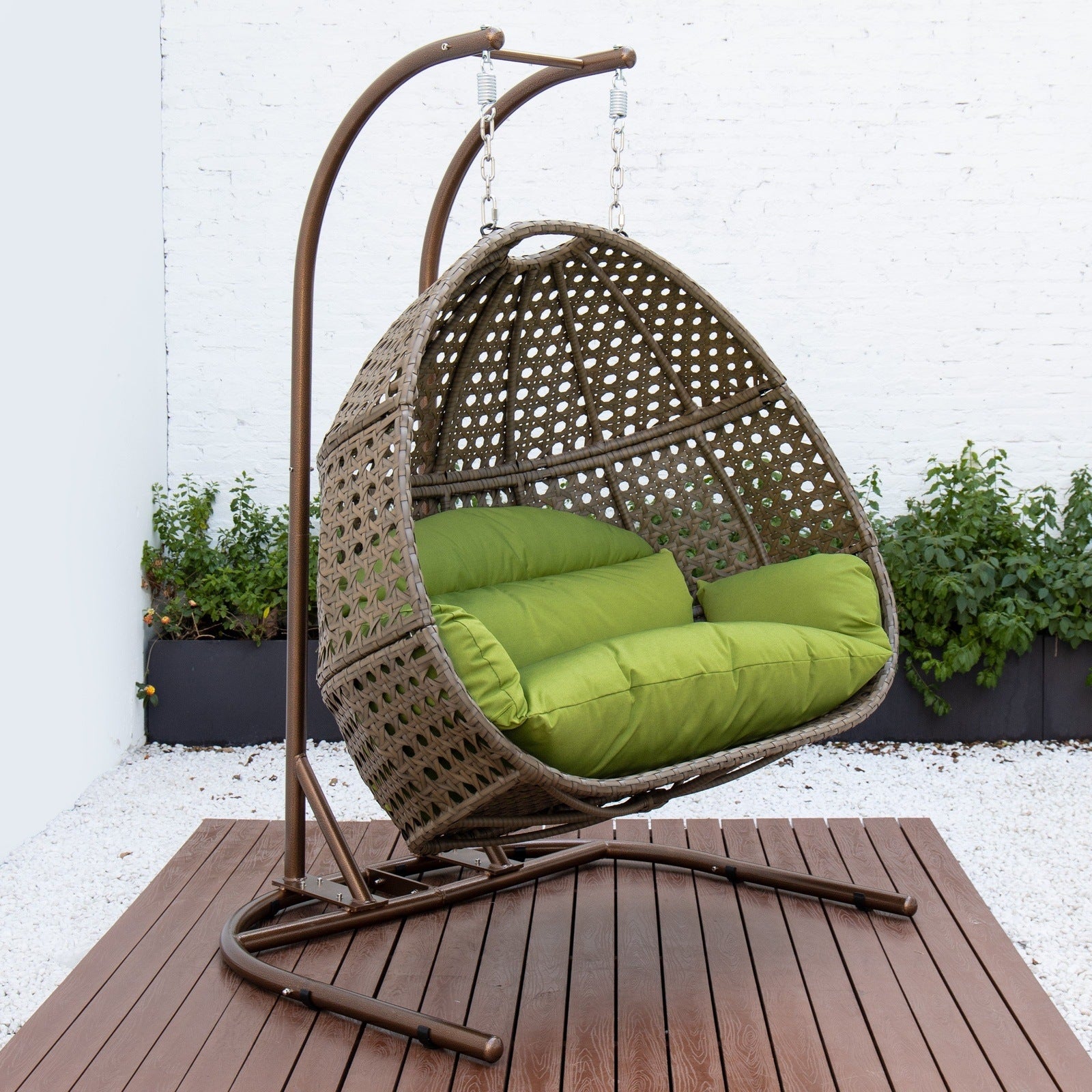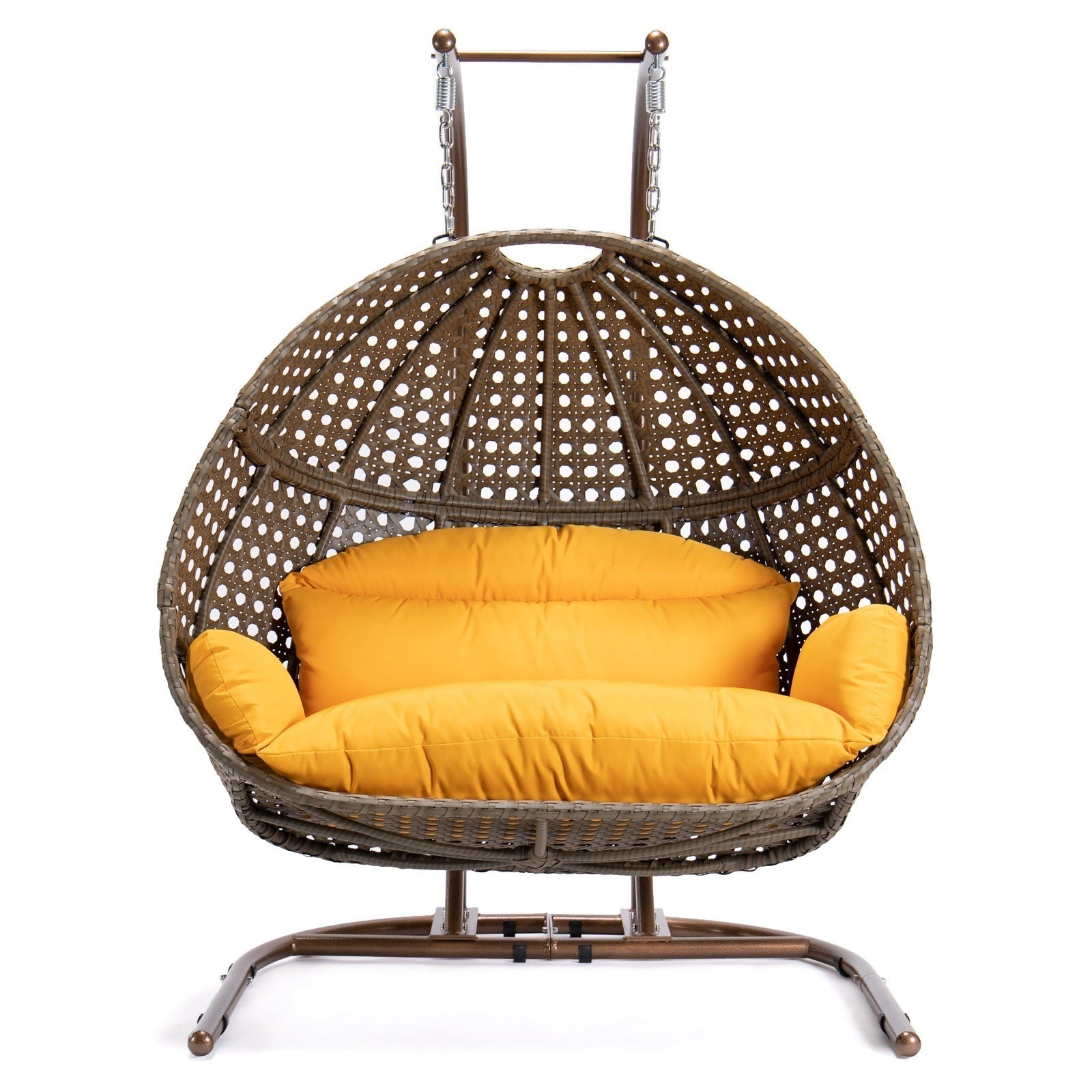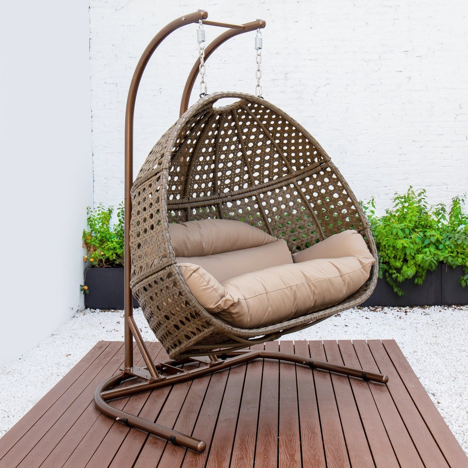 Wicker Hanging Double Egg Beige Swing Chair with an Iron Base