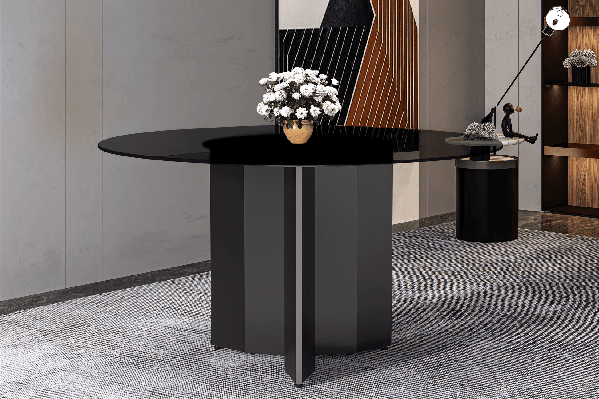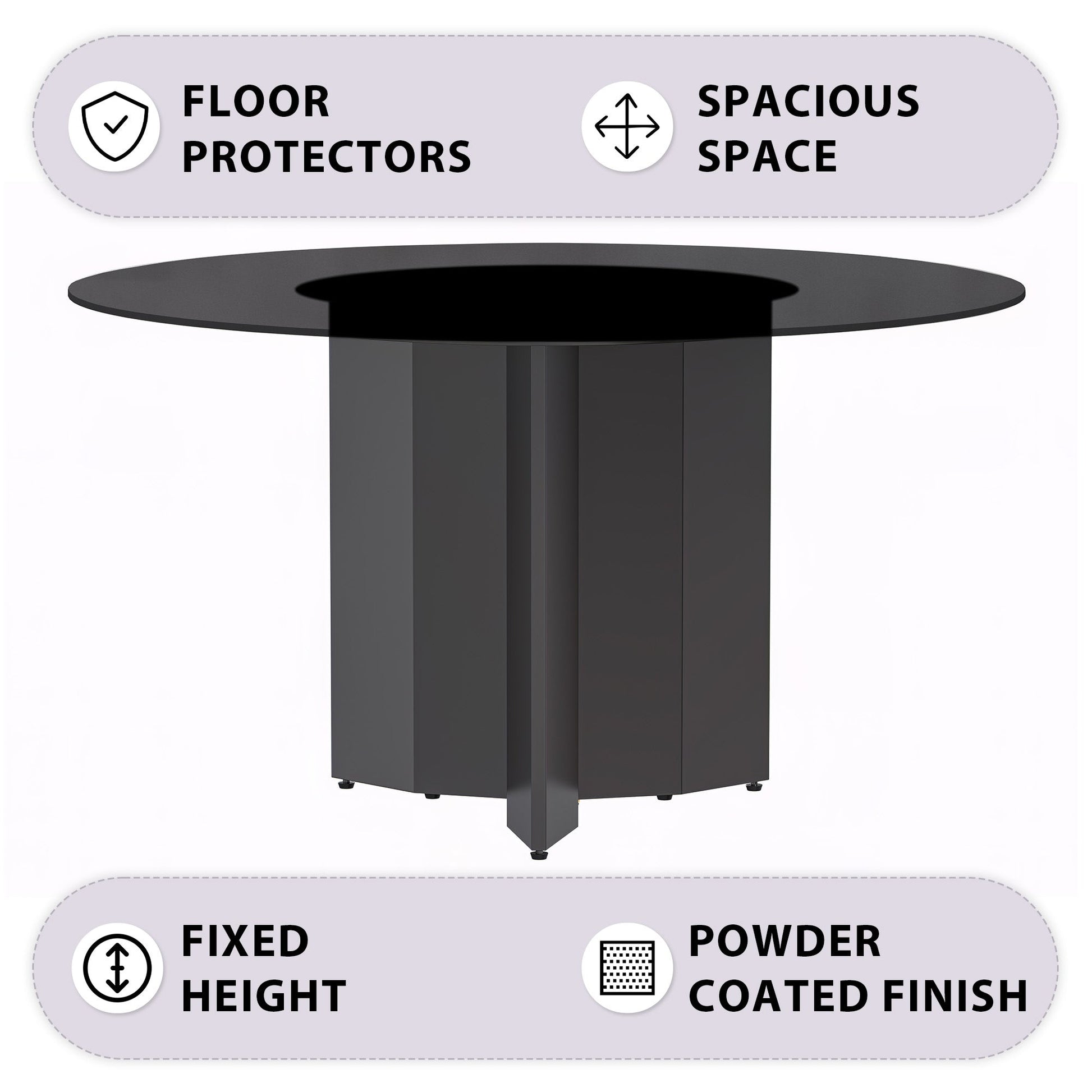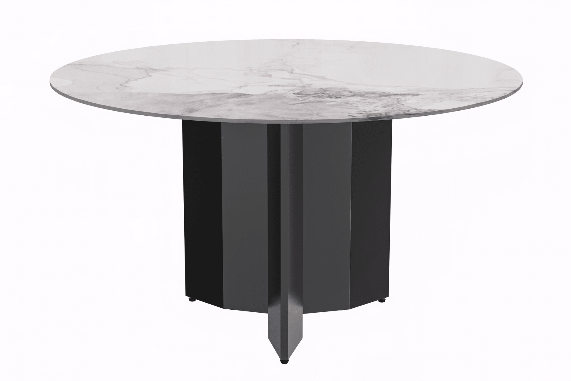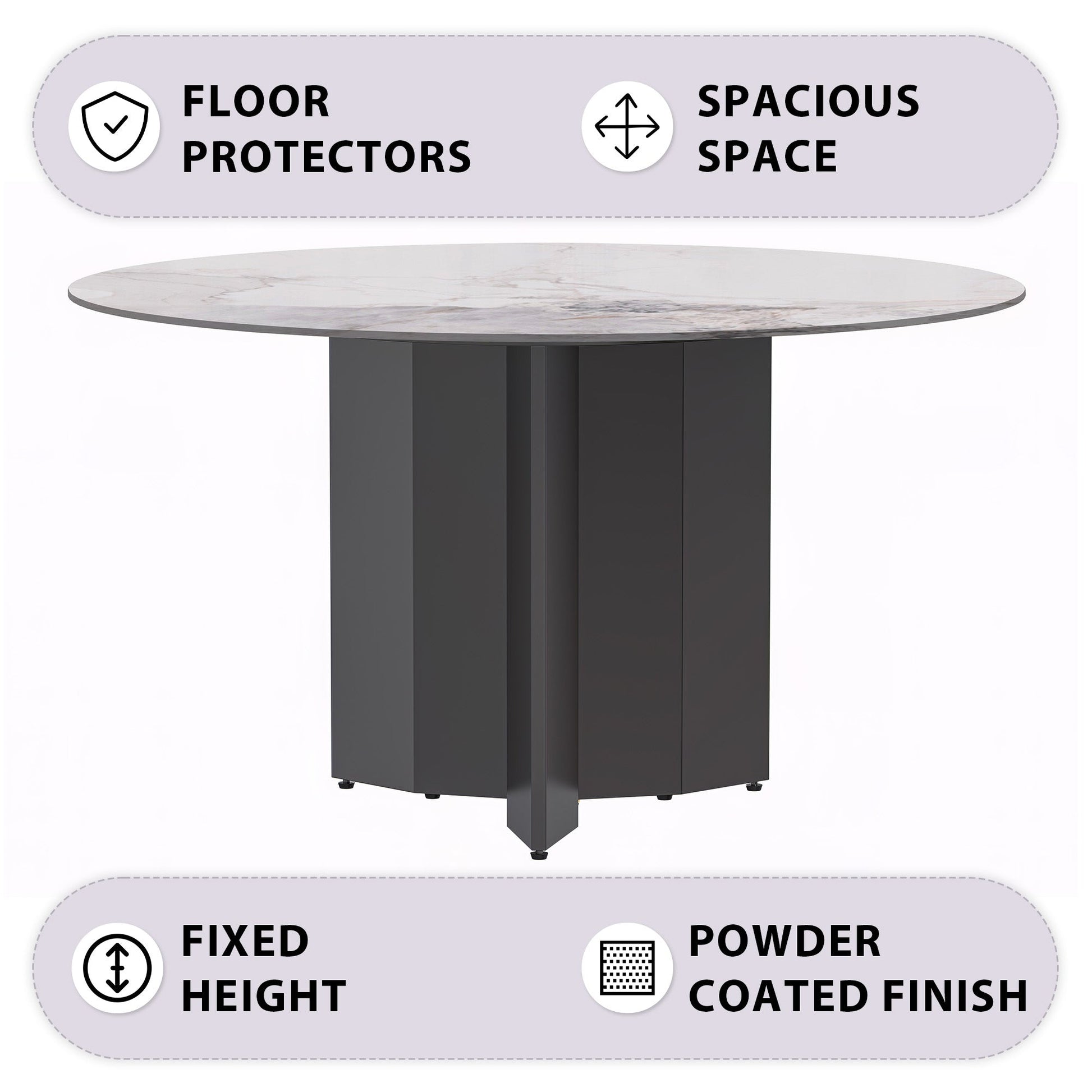 Zevro Round Dining Table with Sintered Stone/Glass Tabletop in Black Stainless Steel