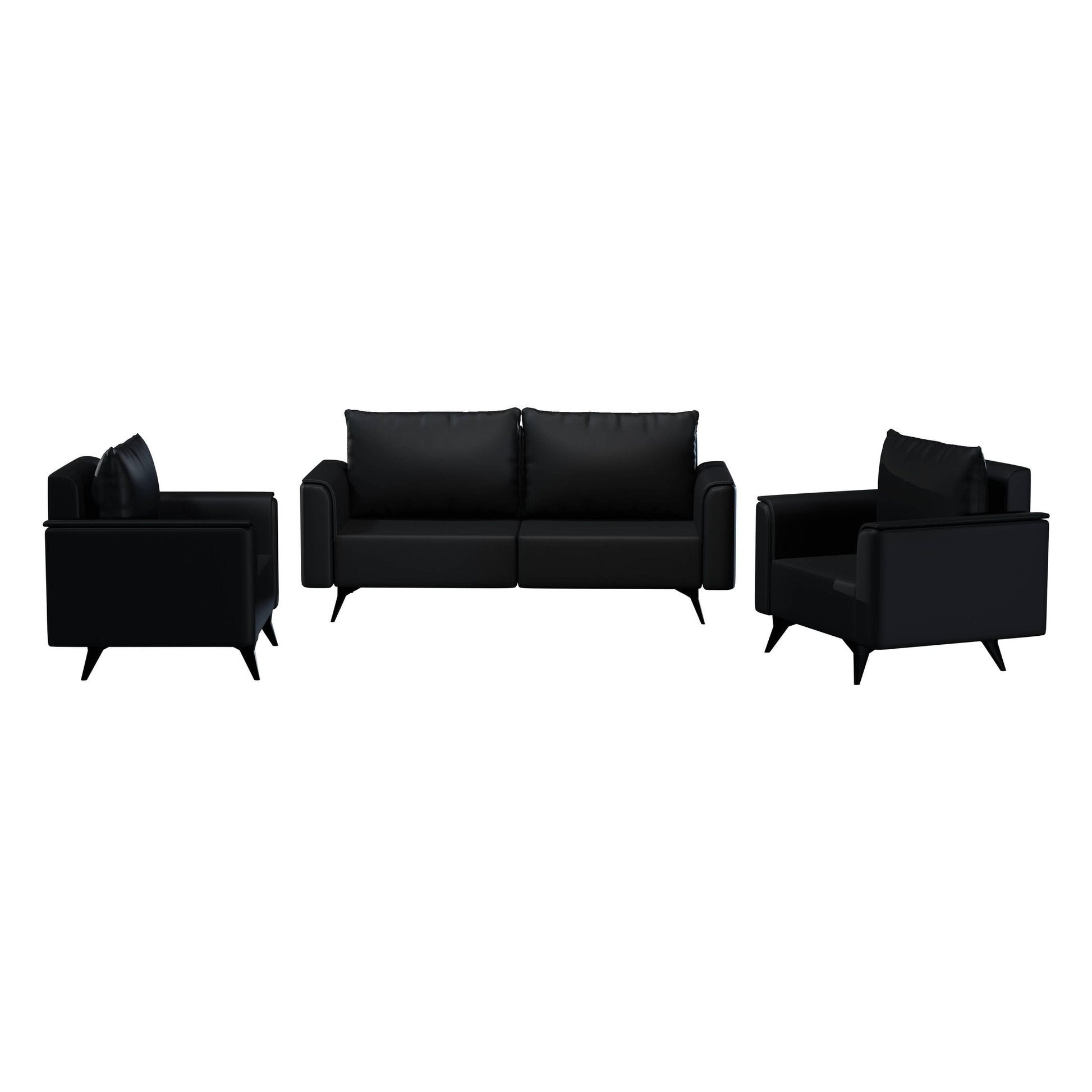 Rusk 3-Piece Leather Sofa Set with Stainless Steel Legs and Removable Cushions