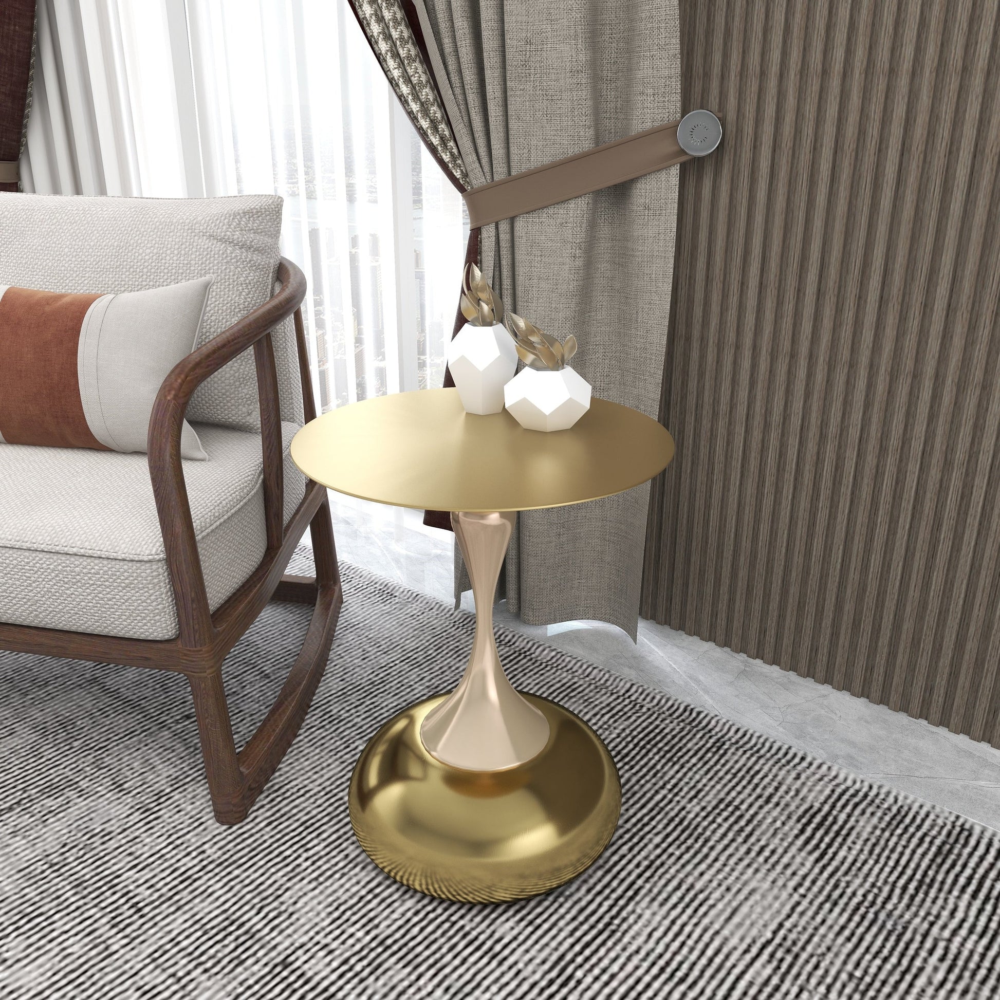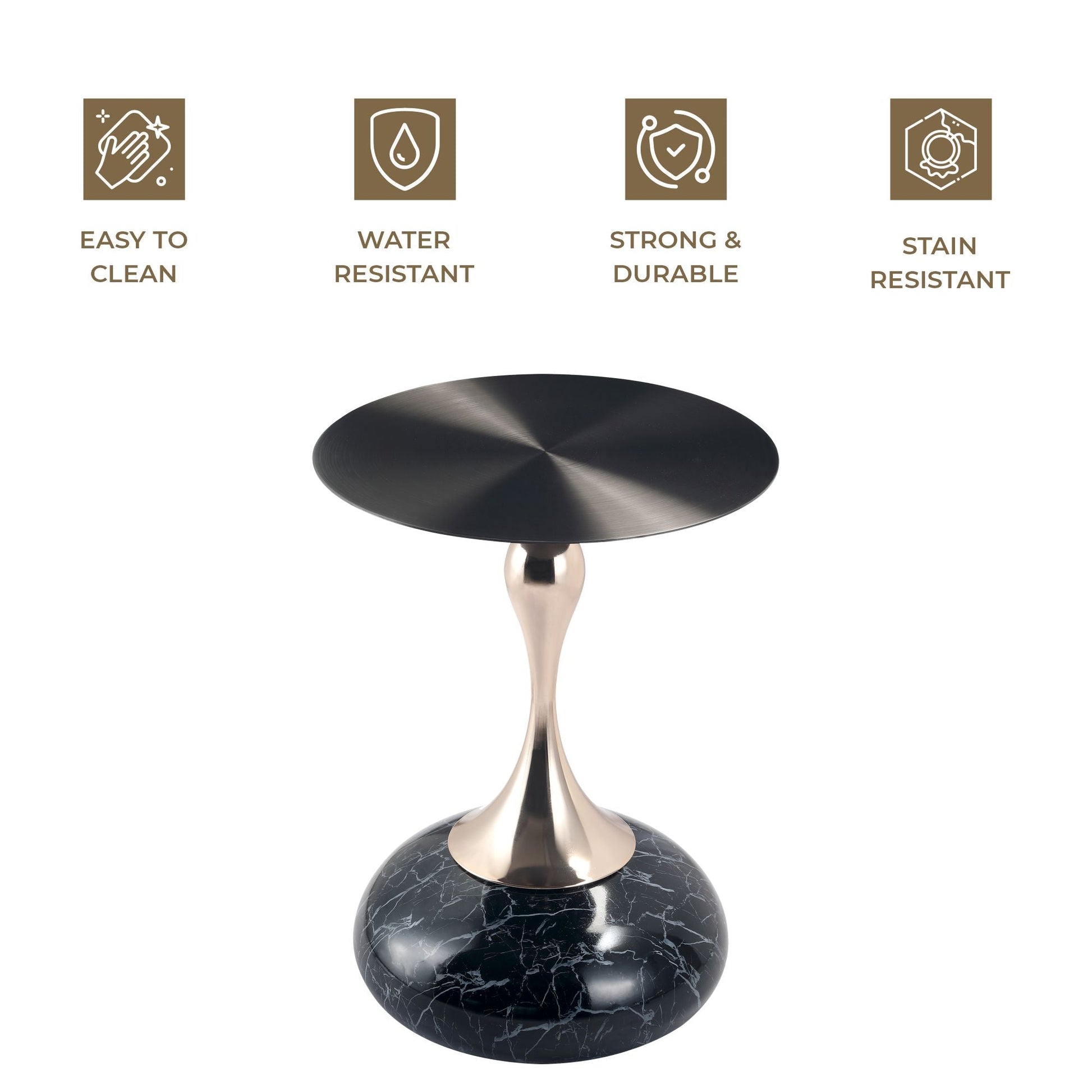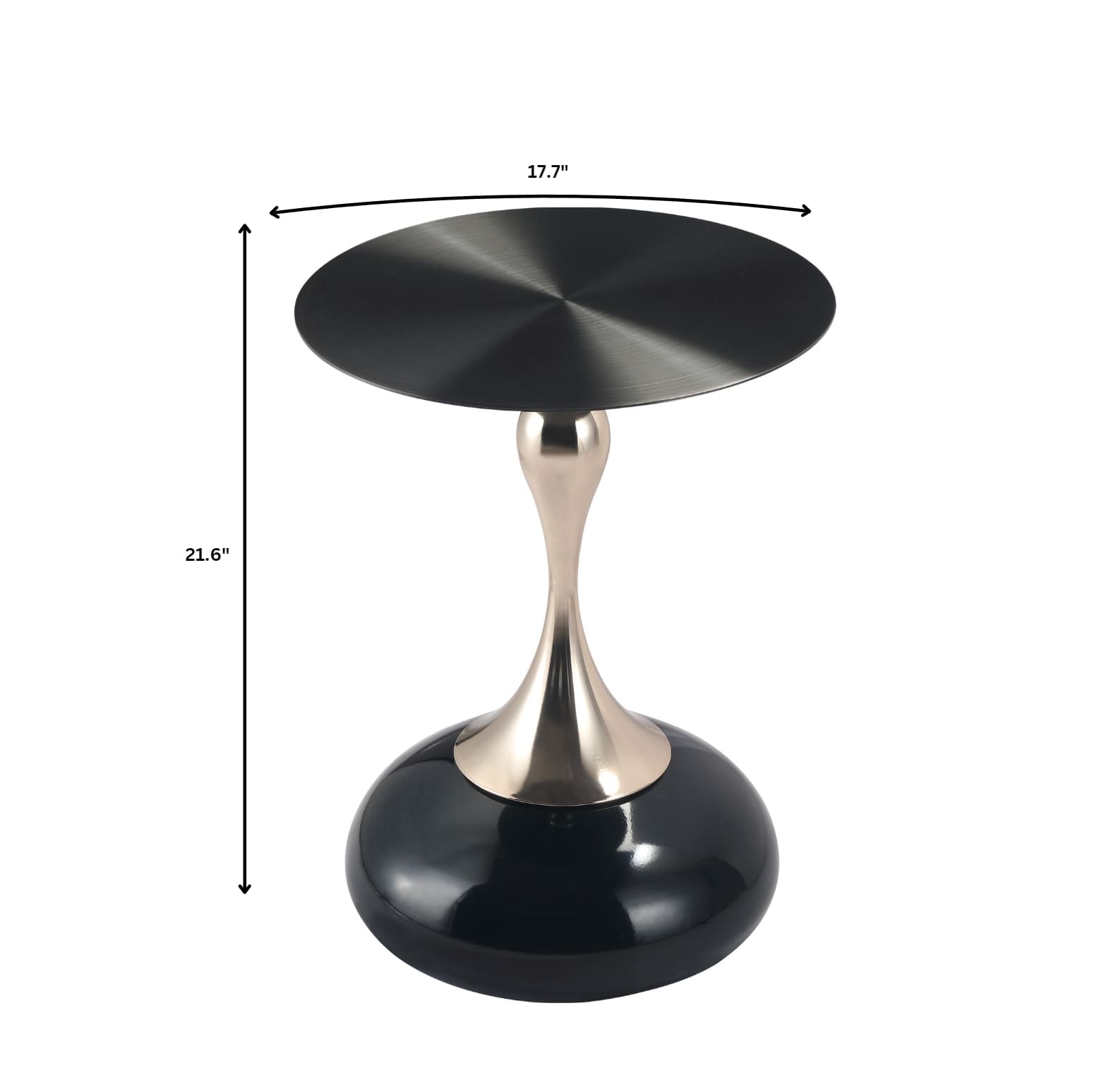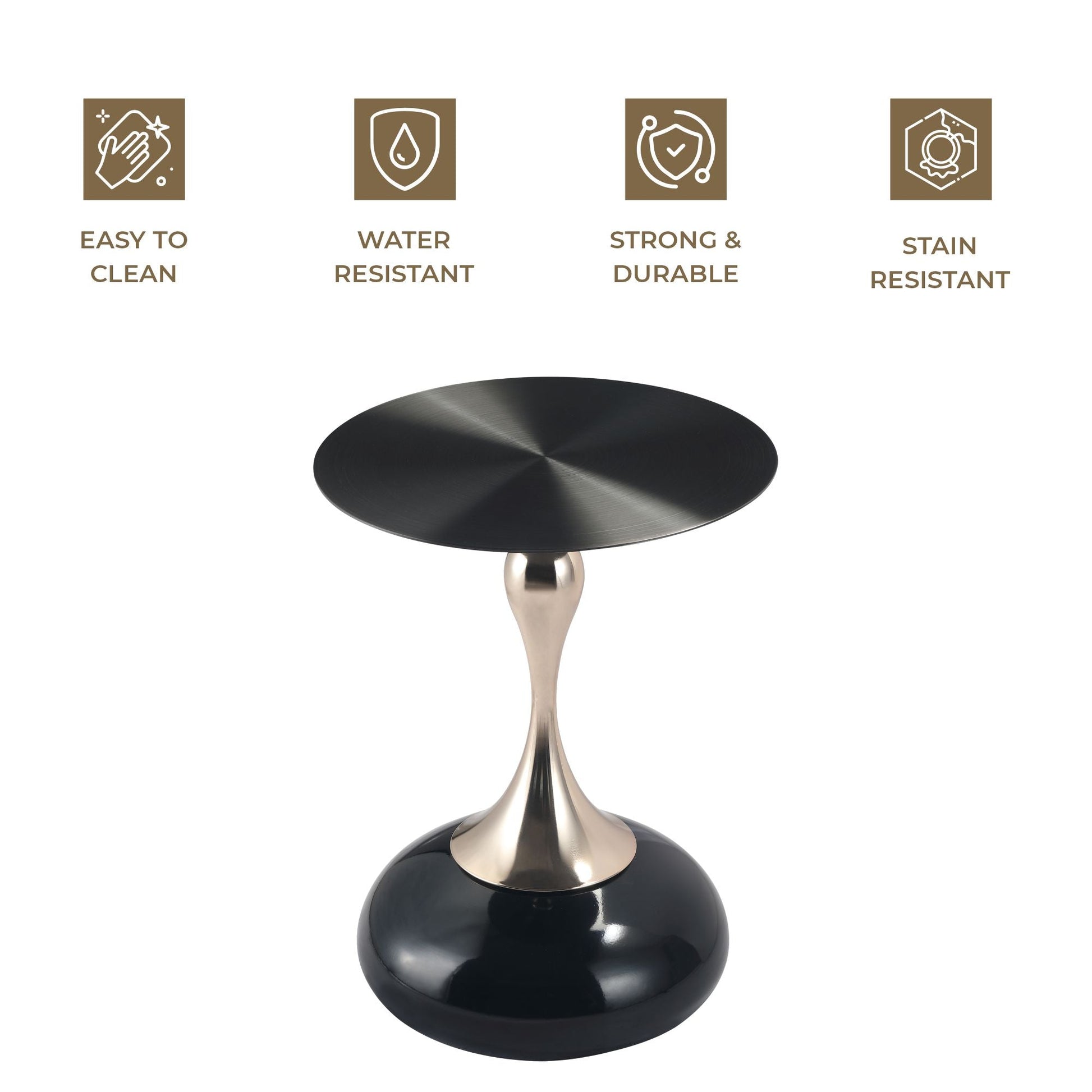A stylish and versatile addition to your home decor. Its sleek, metallic look comes from a circular tabletop with a brushed finish. Crafted from durable stainless steel, it features a stable pedestal base with a powder-coated finish, resistant to scratches and corrosion. Ready to use and easy to maintain, it's perfect for end tables or displaying items.