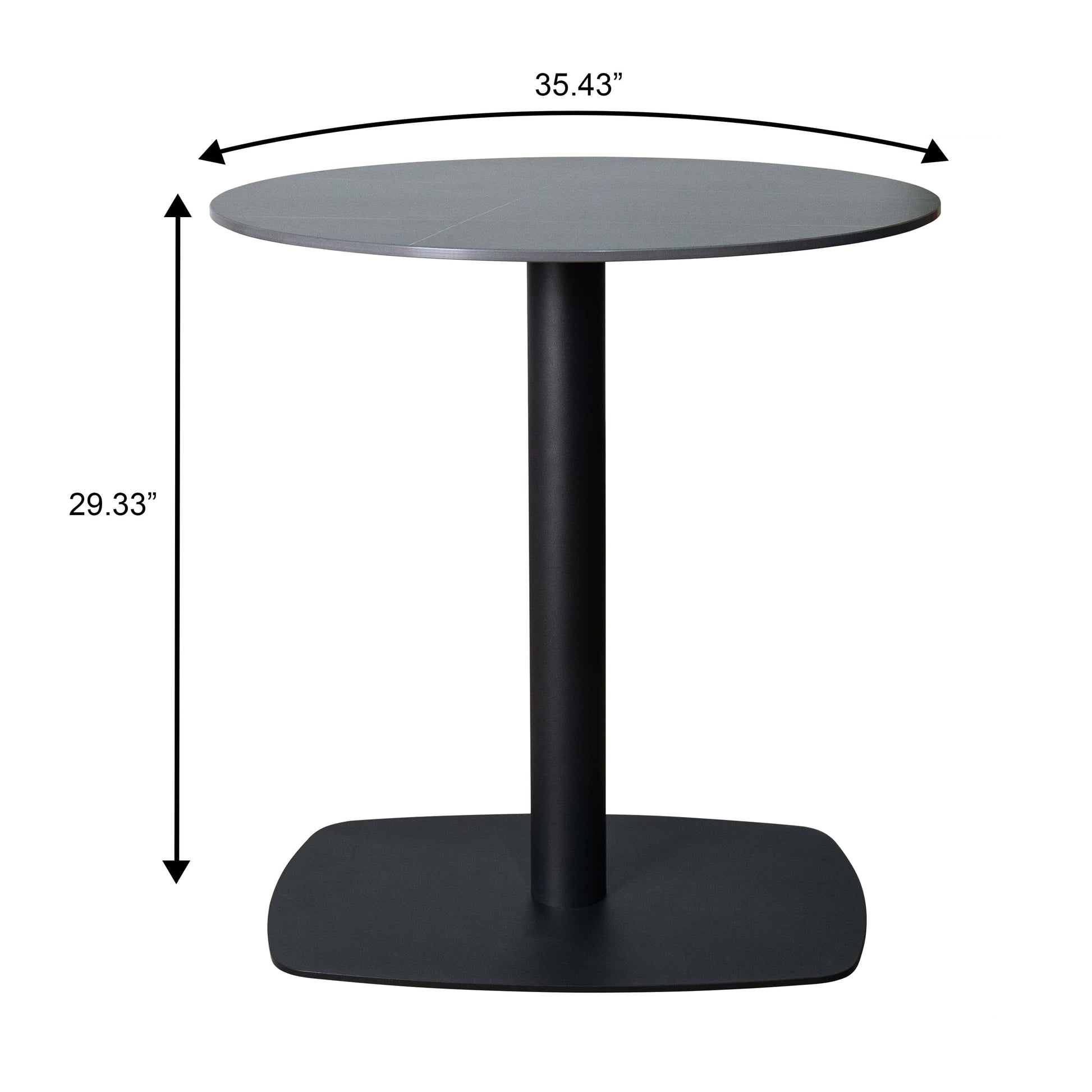 The LeisureMod Vail Dining Table combines modern design with practical durability, making it a reliable centerpiece for everyday dining or casual workspaces. The sleek sintered stone tabletop withstands heat, stains, and scratches to keep its fresh, polished look. A solid steel pedestal base with a powder-coated finish ensures sturdy, balanced support while maximizing legroom with its open design. Perfectly sized for smaller spaces such as kitchens, patios, cafés, or break rooms, this table comfortably seats two to three people. Assembly is straightforward with included hardware and instructions, helping you set up quickly and enjoy a versatile, stylish addition to your home or workspace.