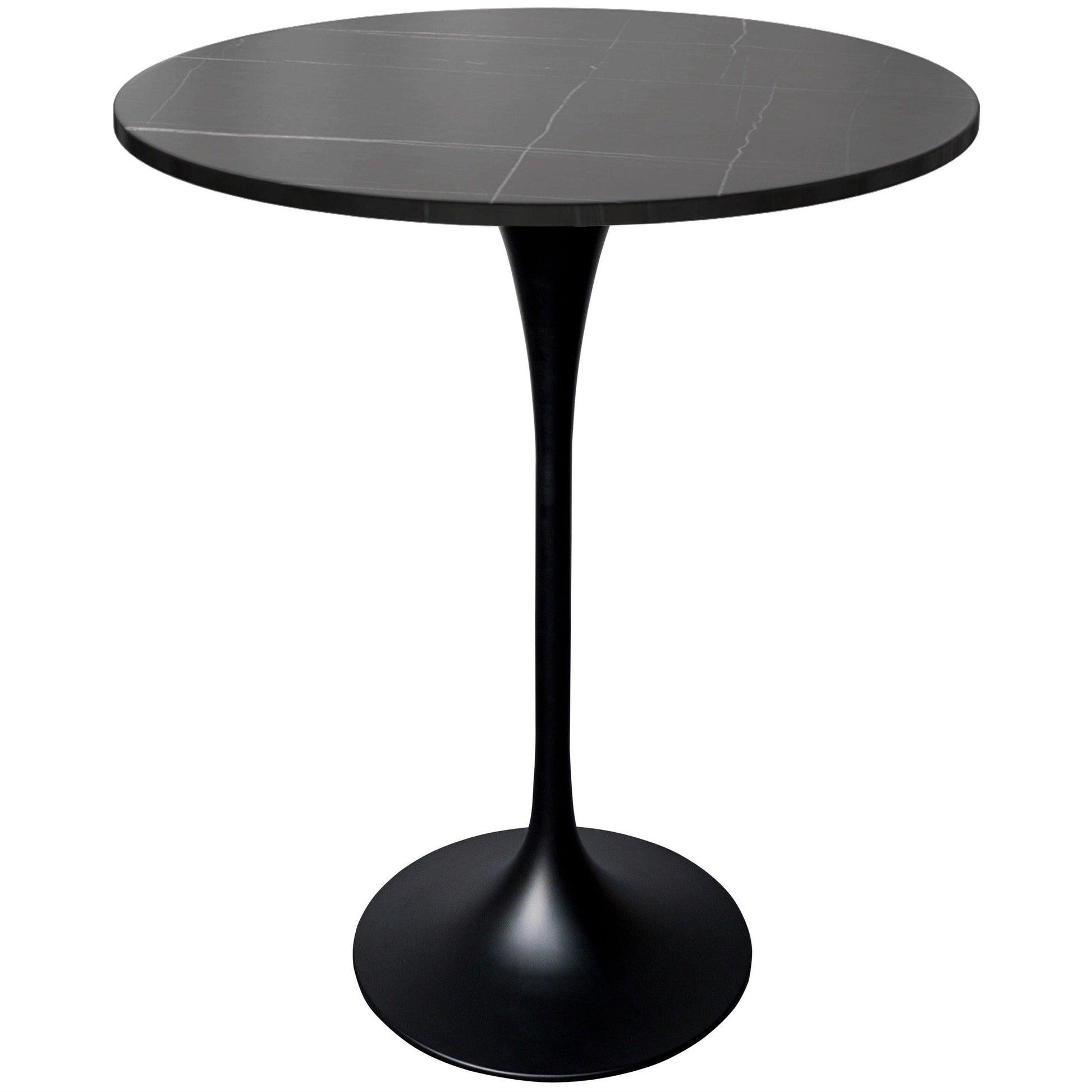 Verve Bar Height Dining Table with 27" Round Sintered Stone Top and Black Stainless Steel Base