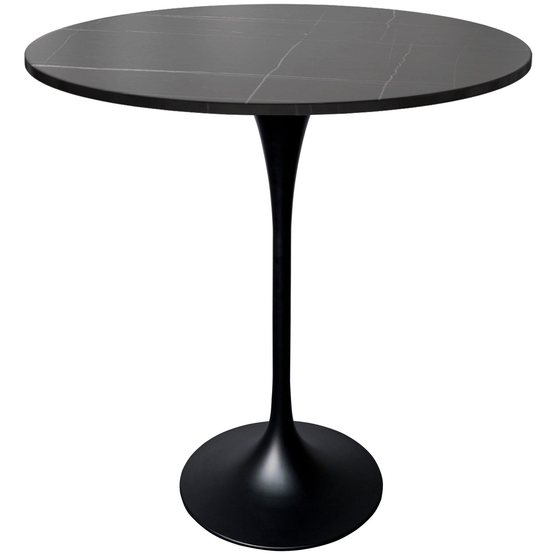 Verve Bar Height Dining Table with 36" Round Sintered Stone Top and Black Stainless Steel Base