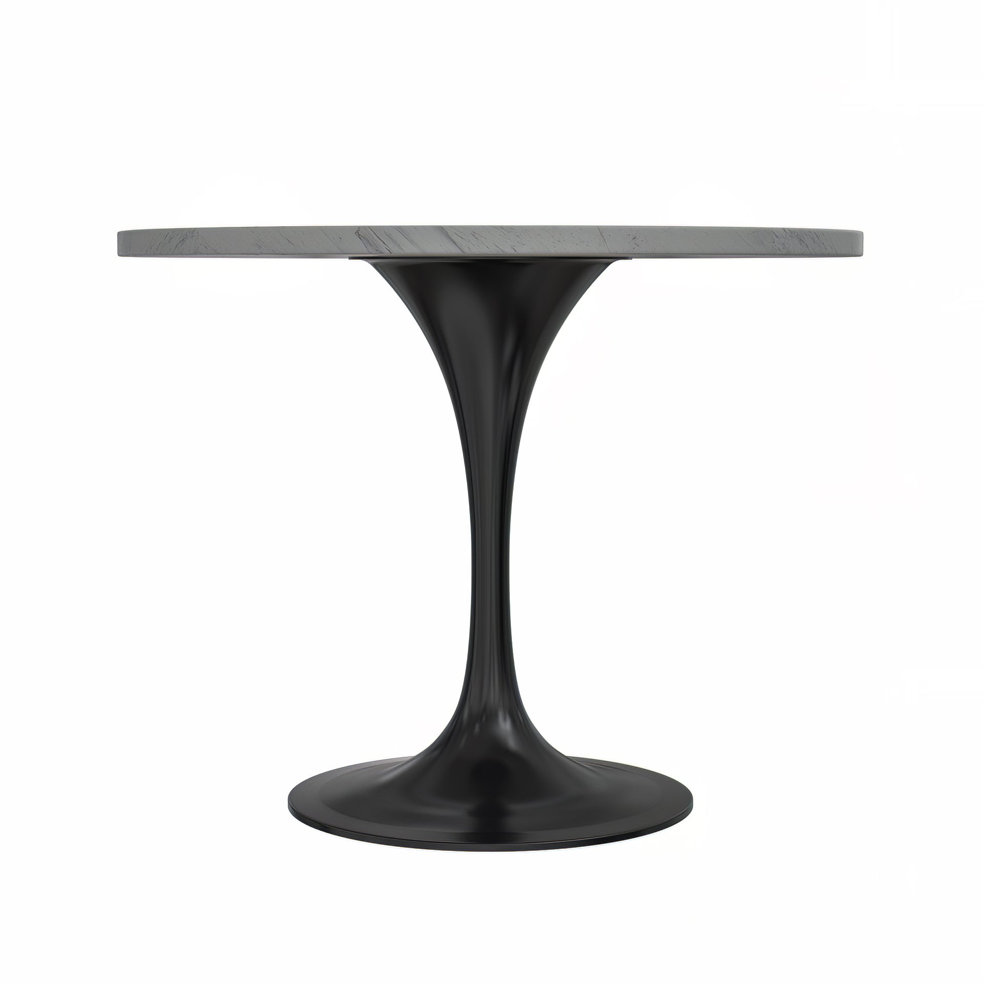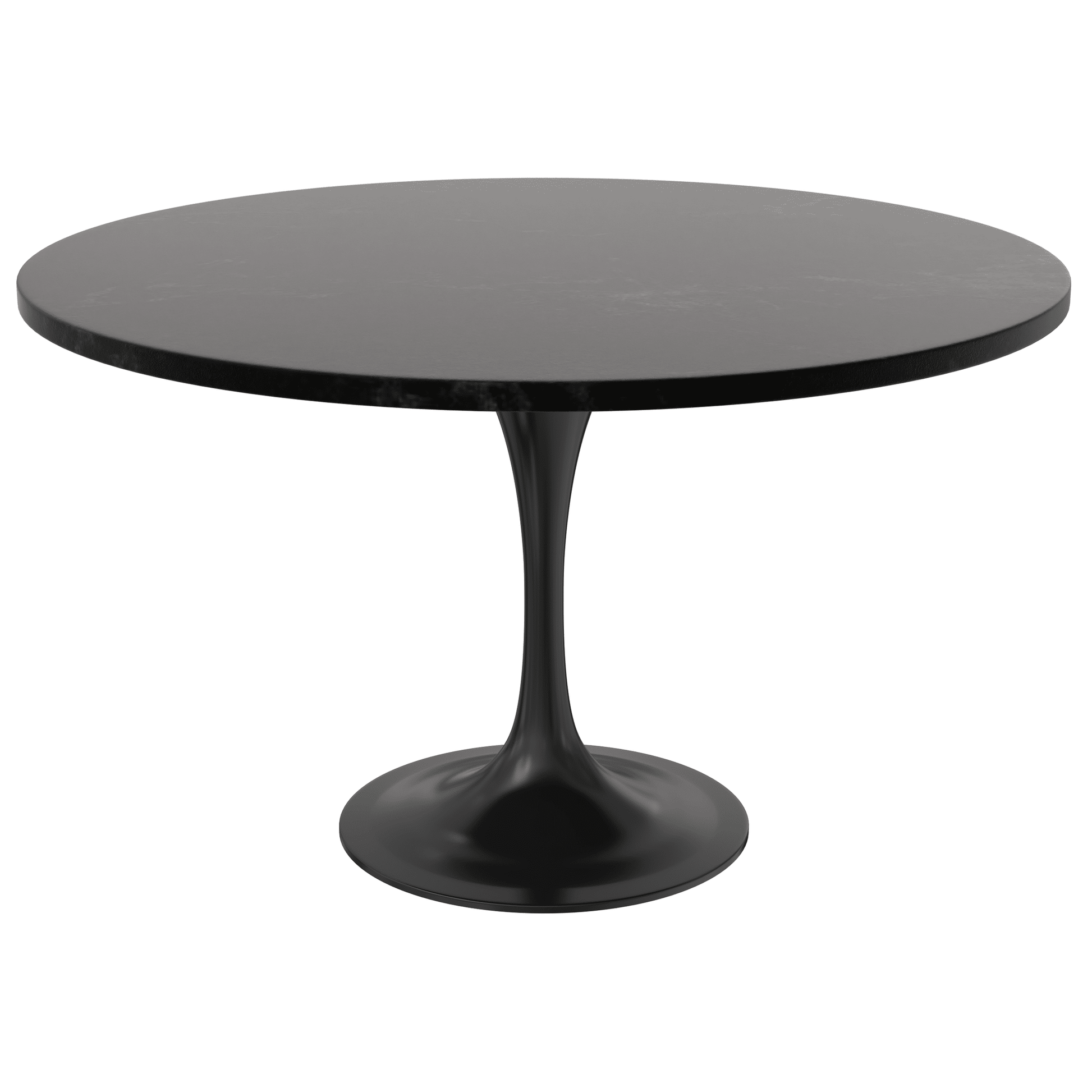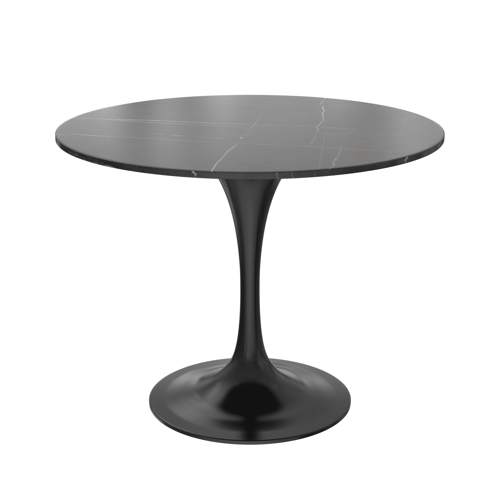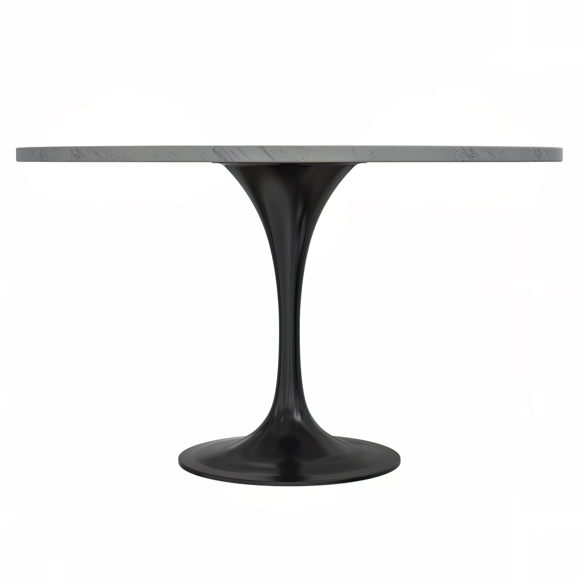 Verve Round Dining Table with MDF/Sintered Stone/Resin Tabletop in Black Stainless Steel Pedestal Base