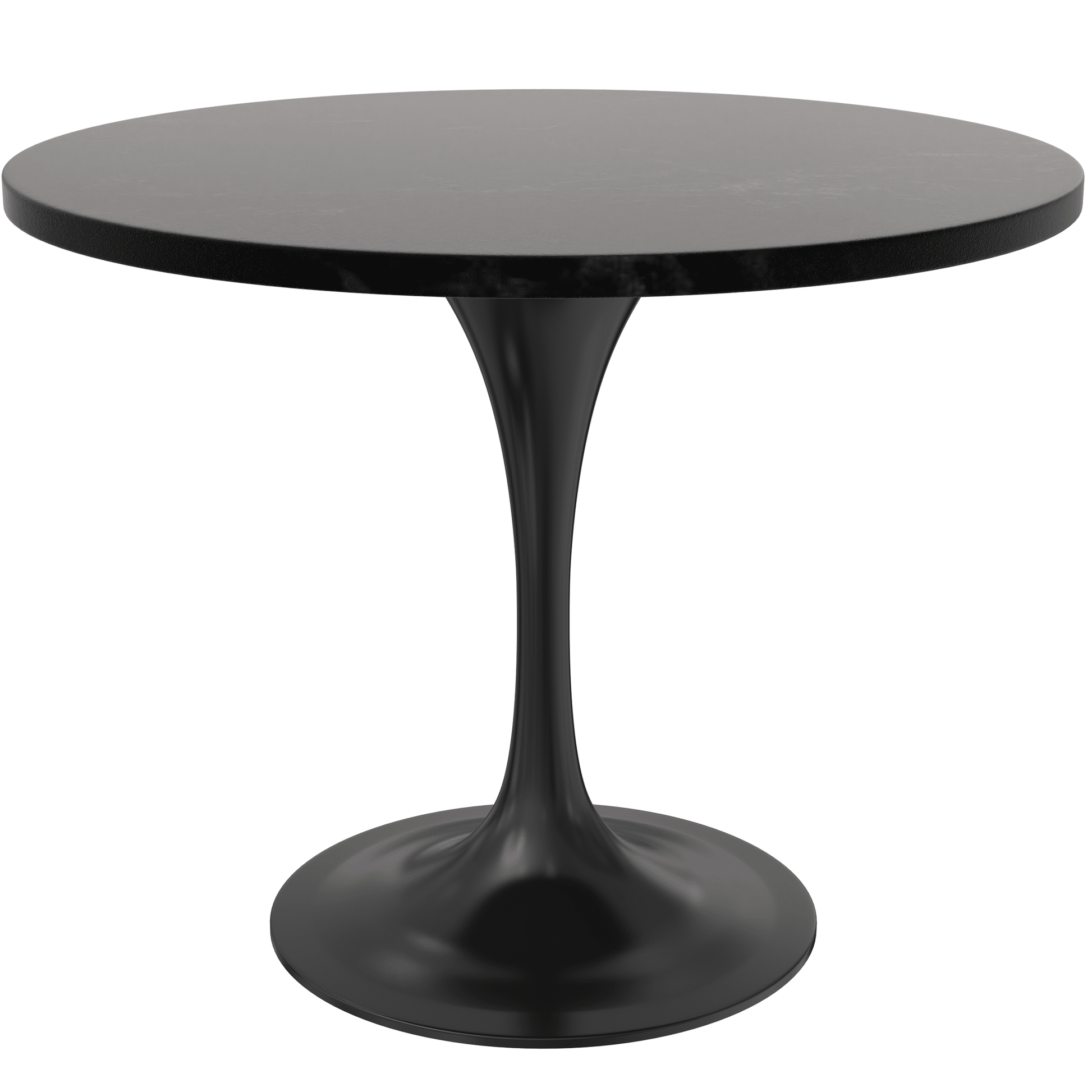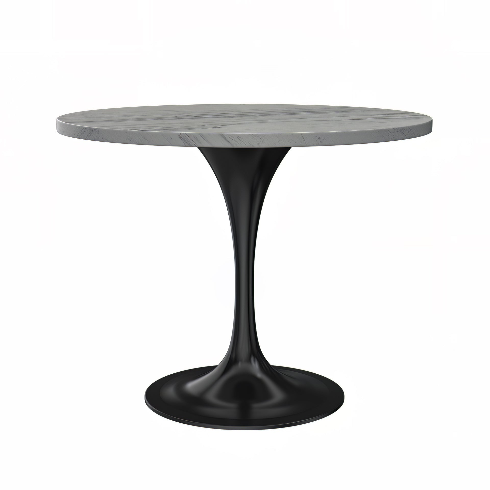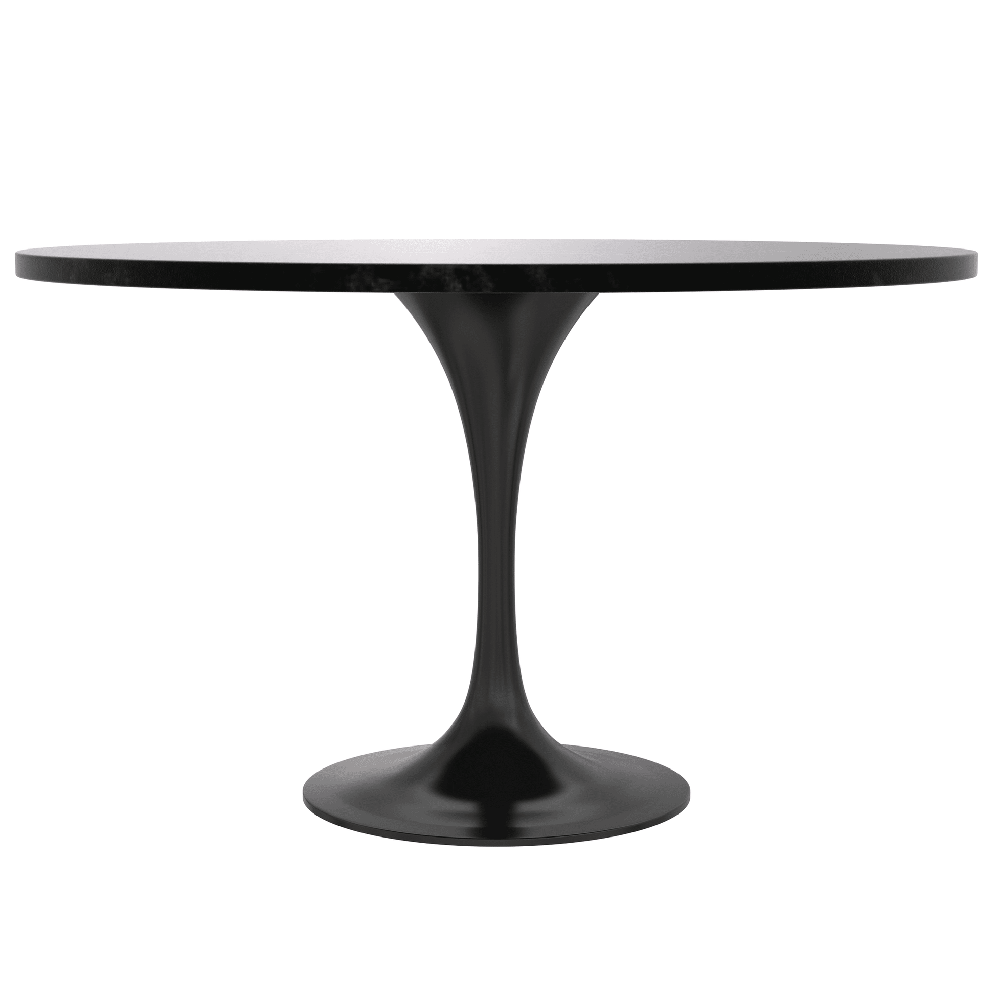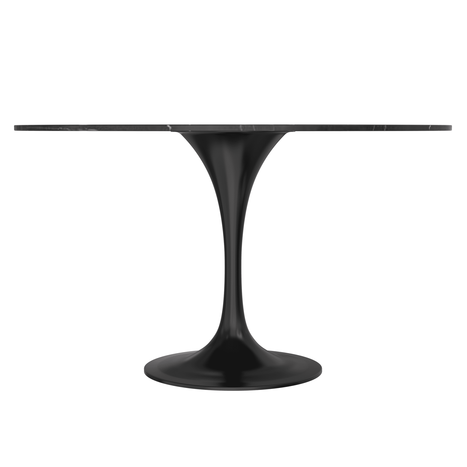 Verve Round Dining Table with MDF/Sintered Stone/Resin Tabletop in Black Stainless Steel Pedestal Base