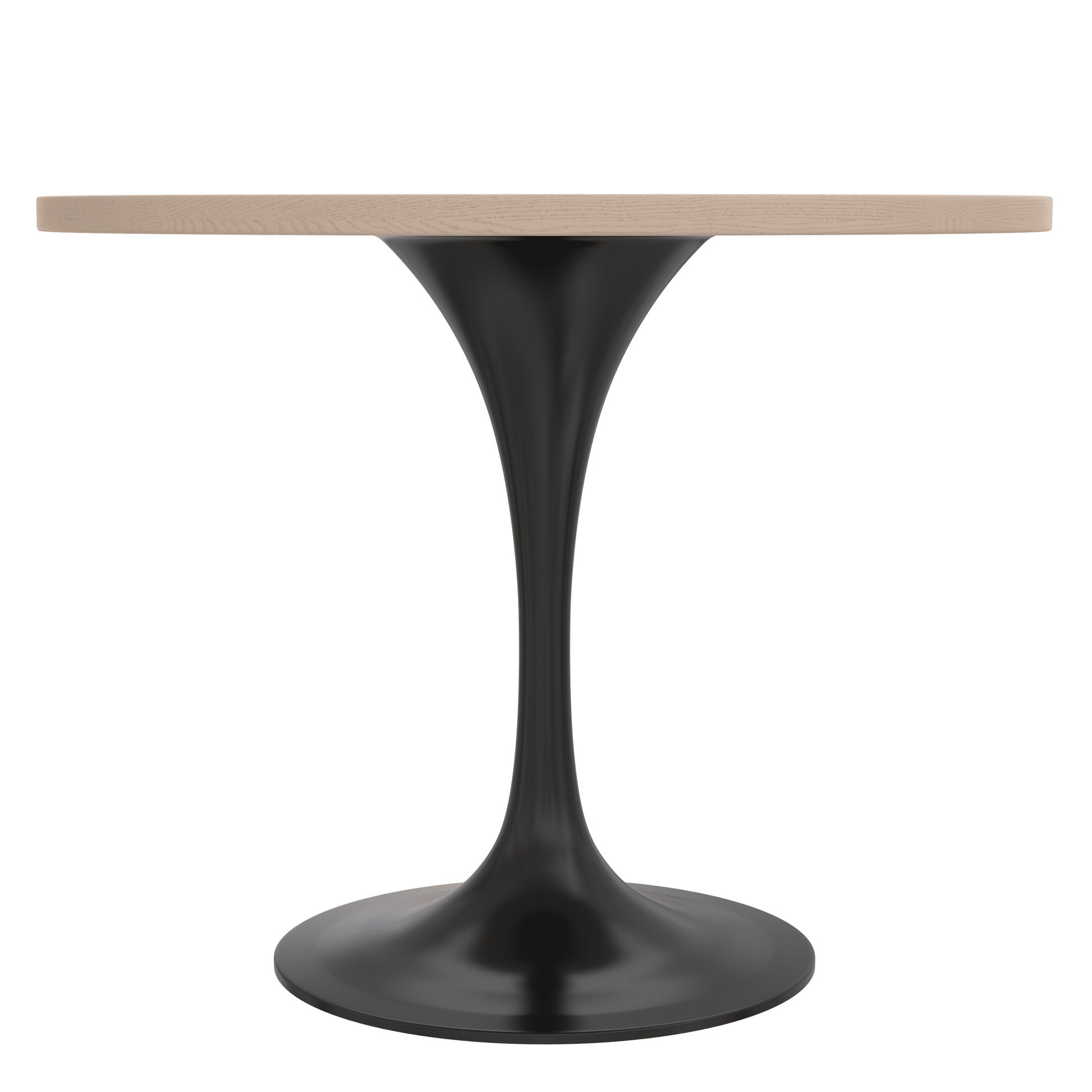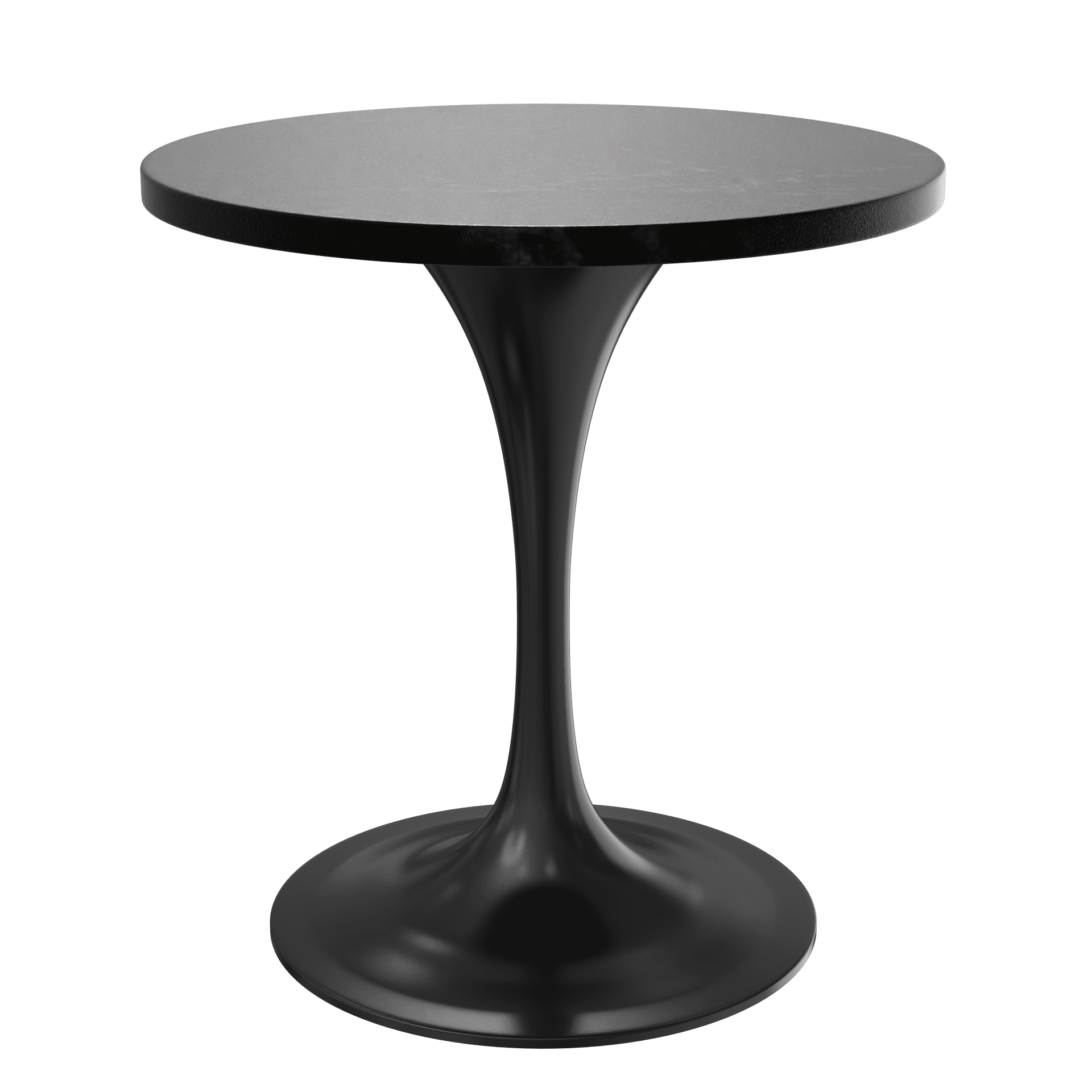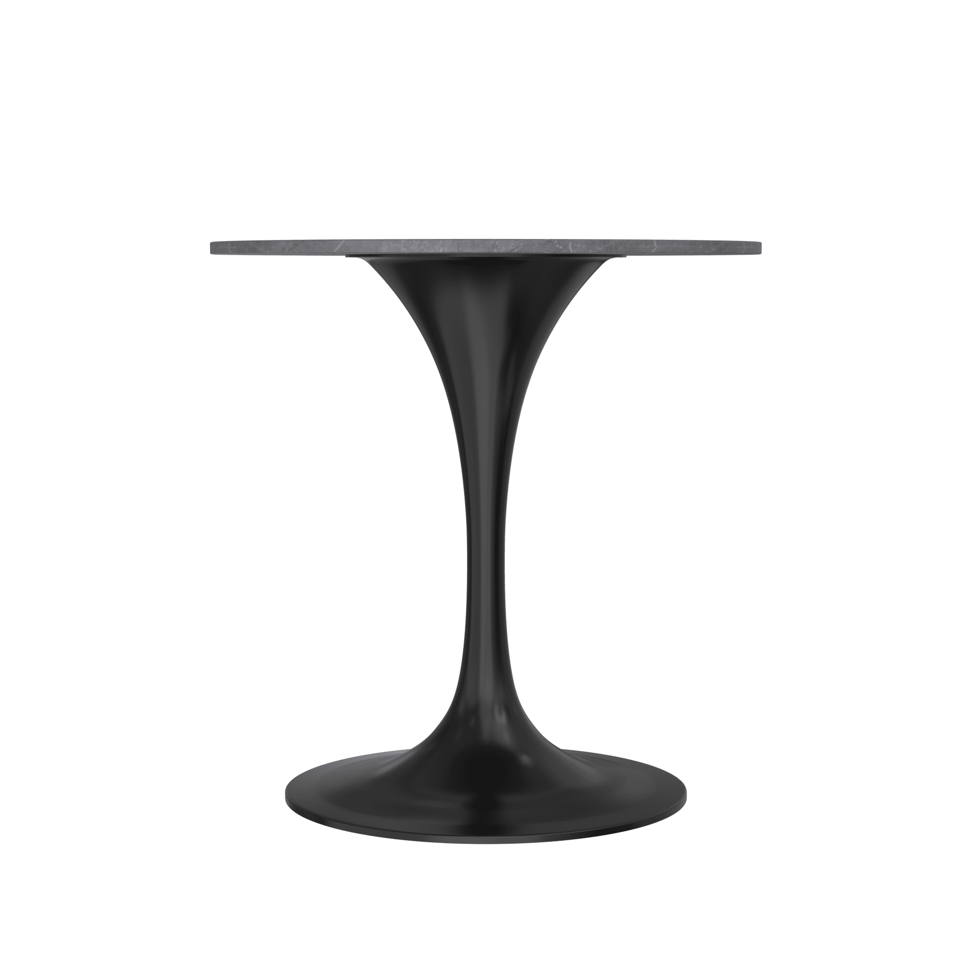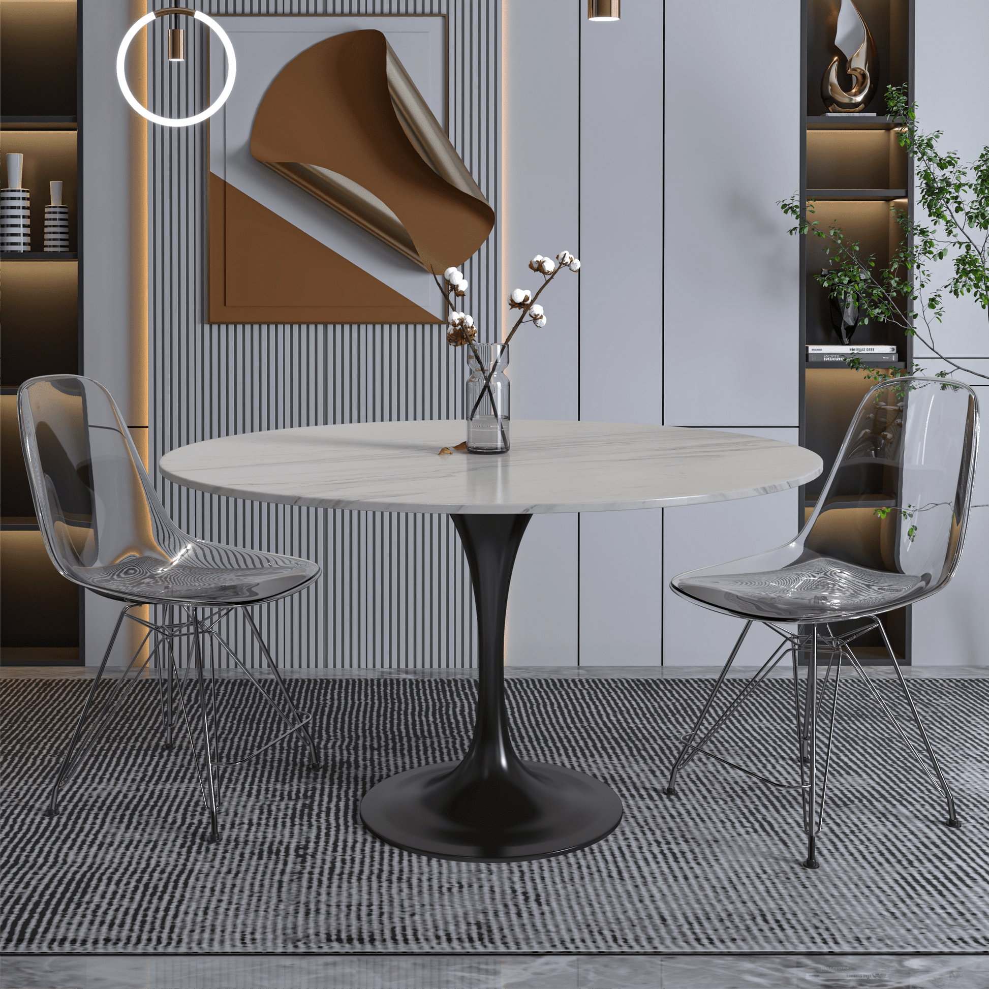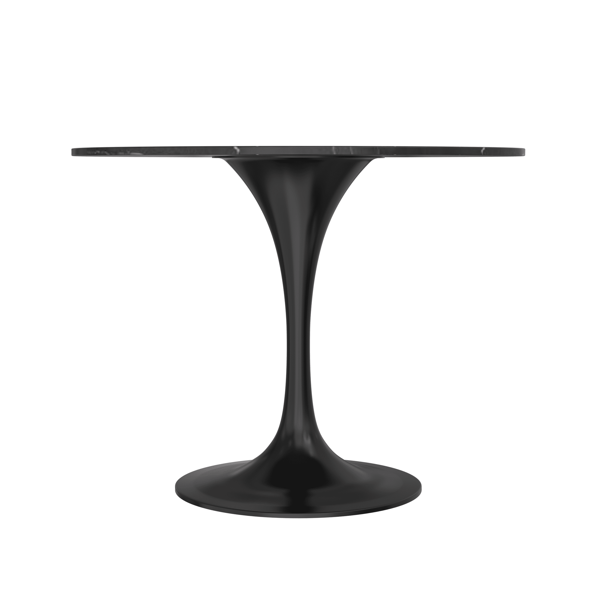 Verve Round Dining Table with MDF/Sintered Stone/Resin Tabletop in Black Stainless Steel Pedestal Base