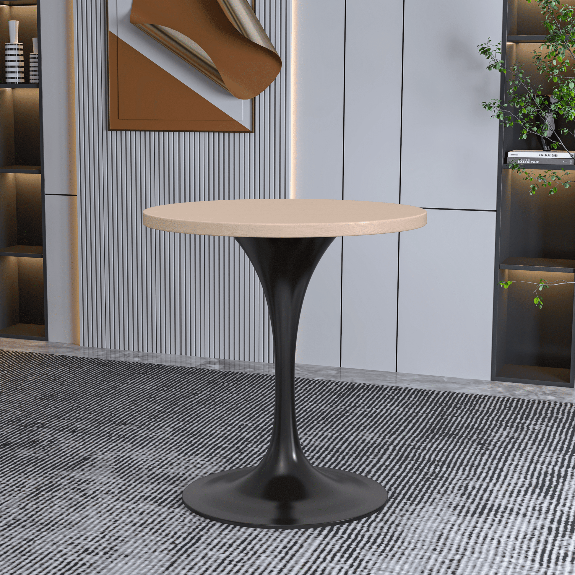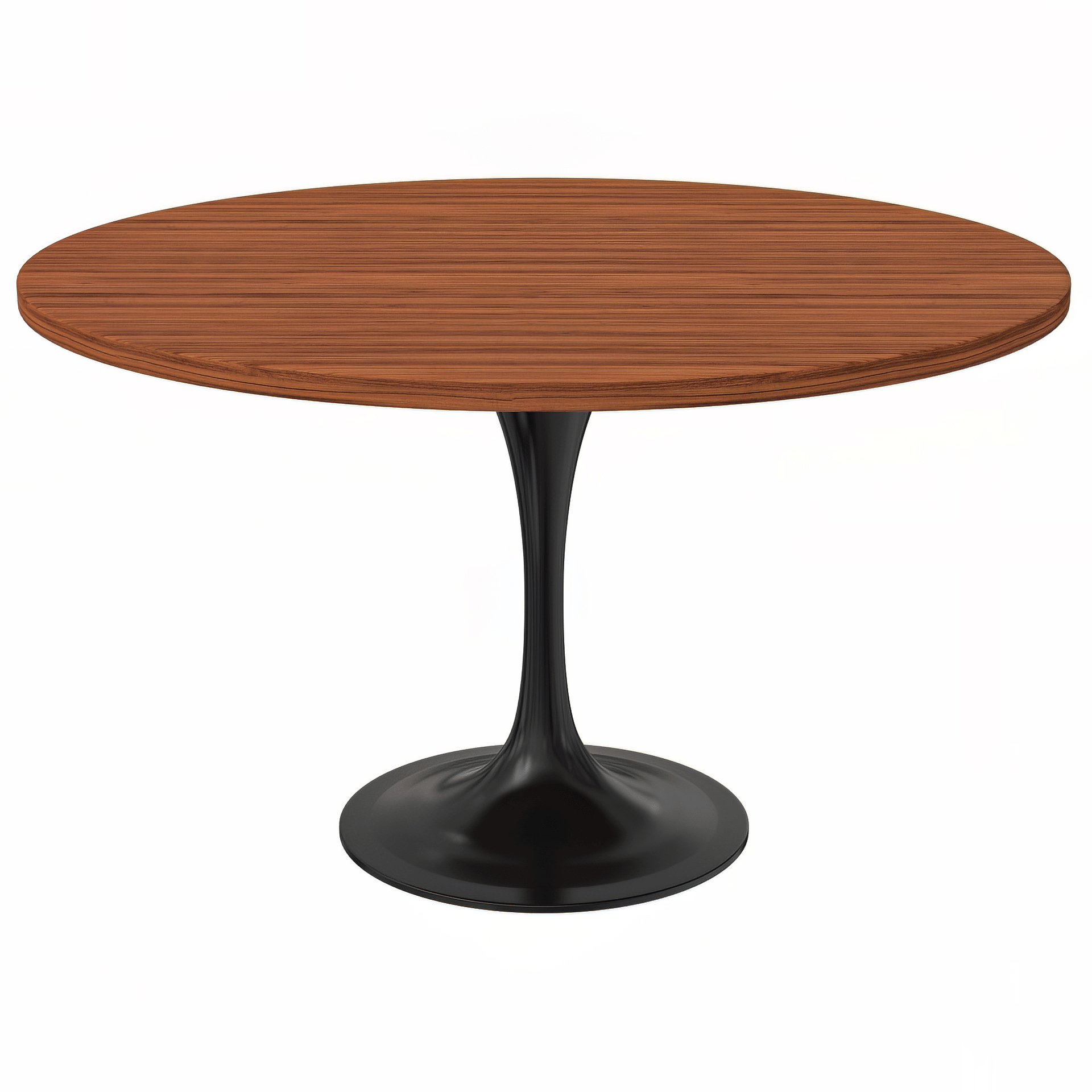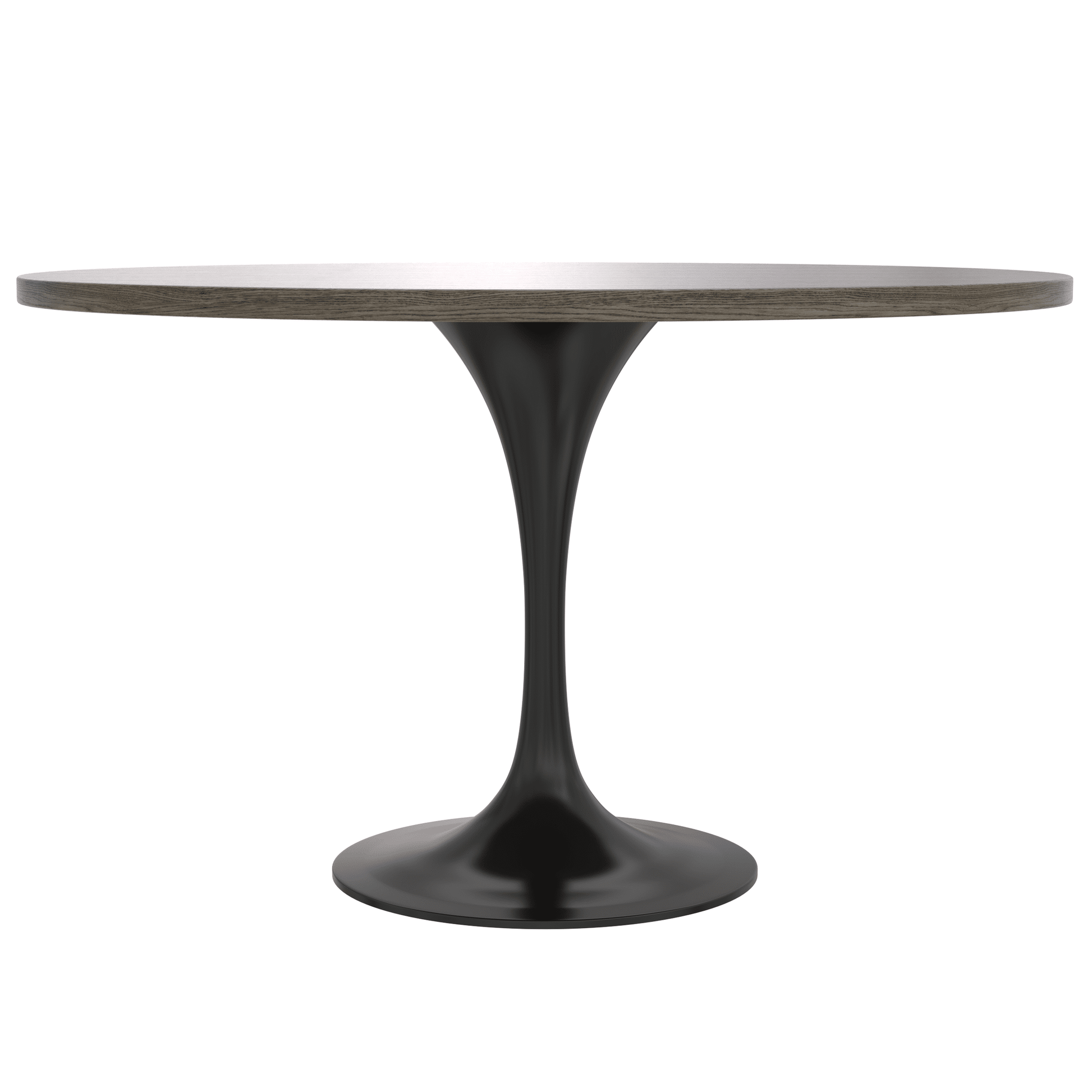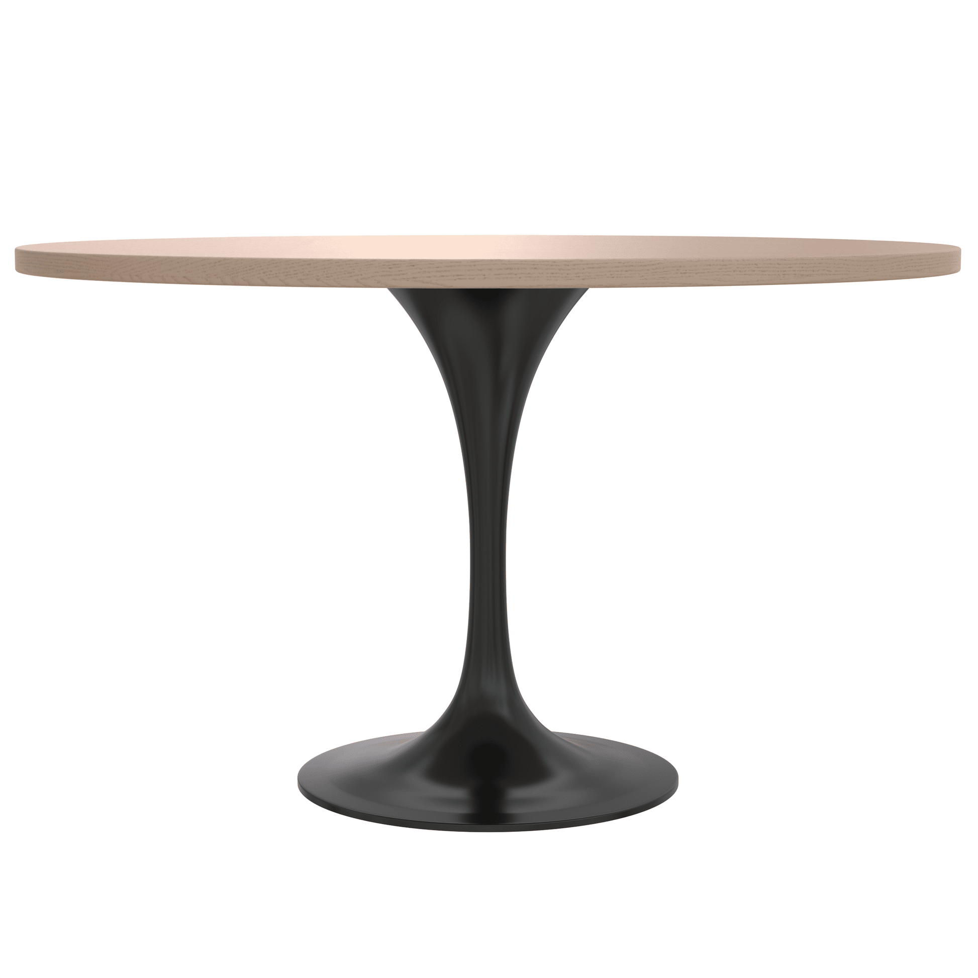 Verve Round Dining Table with MDF/Sintered Stone/Resin Tabletop in Black Stainless Steel Pedestal Base