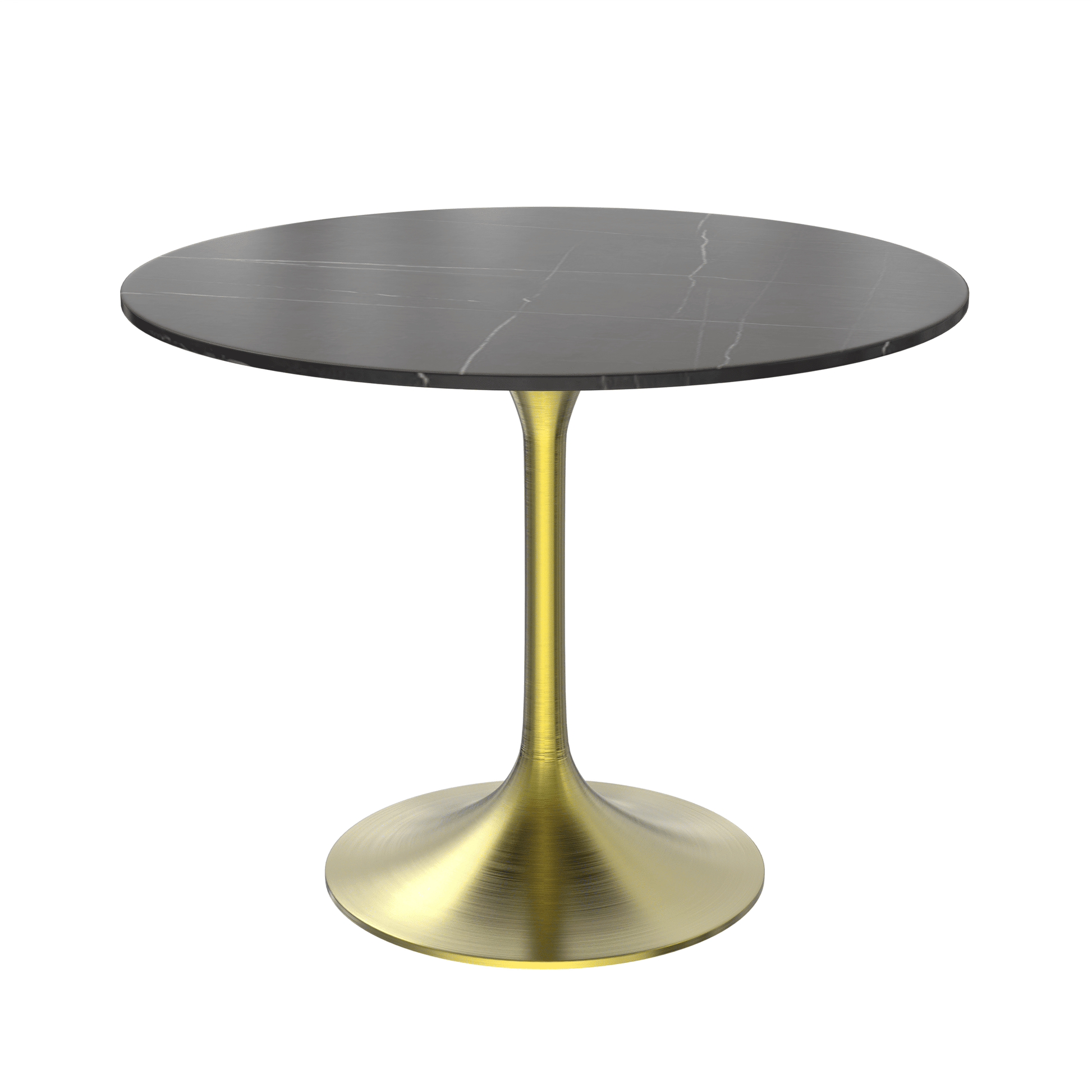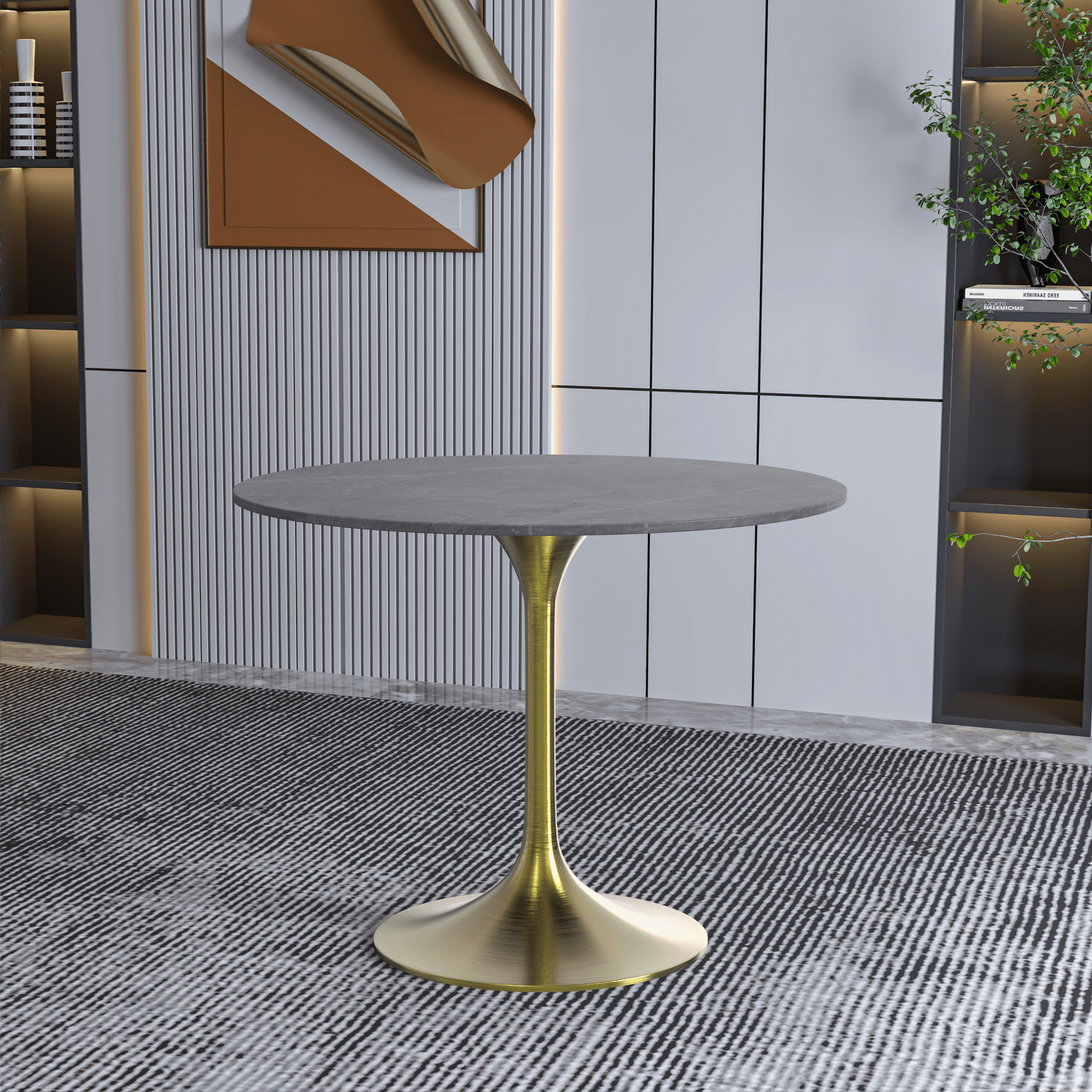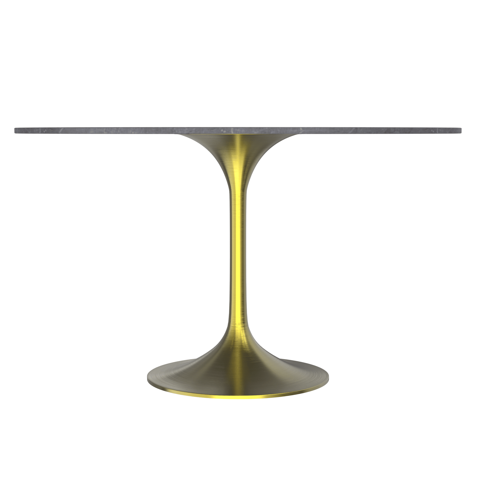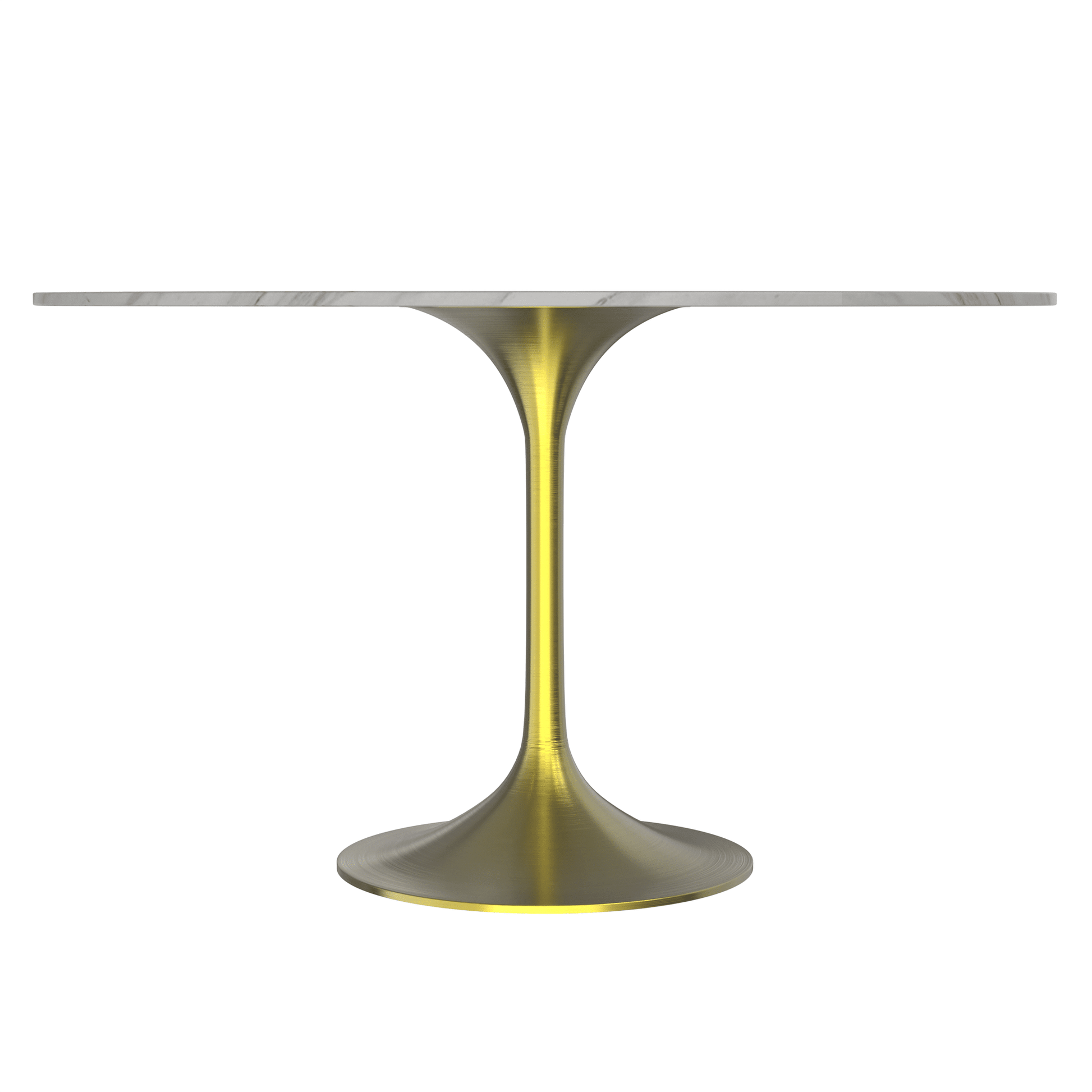 Verve Round Dining Table with MDF/Sintered Stone/Resin Tabletop in Gold Stainless Steel Pedestal Base