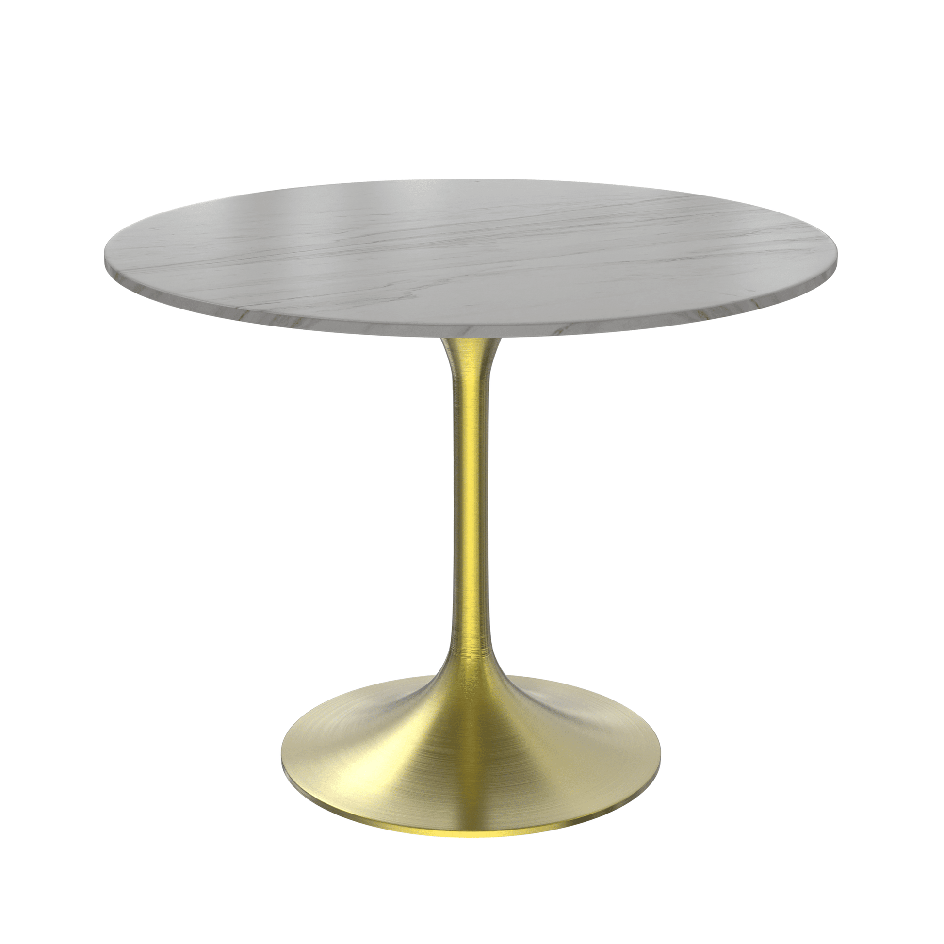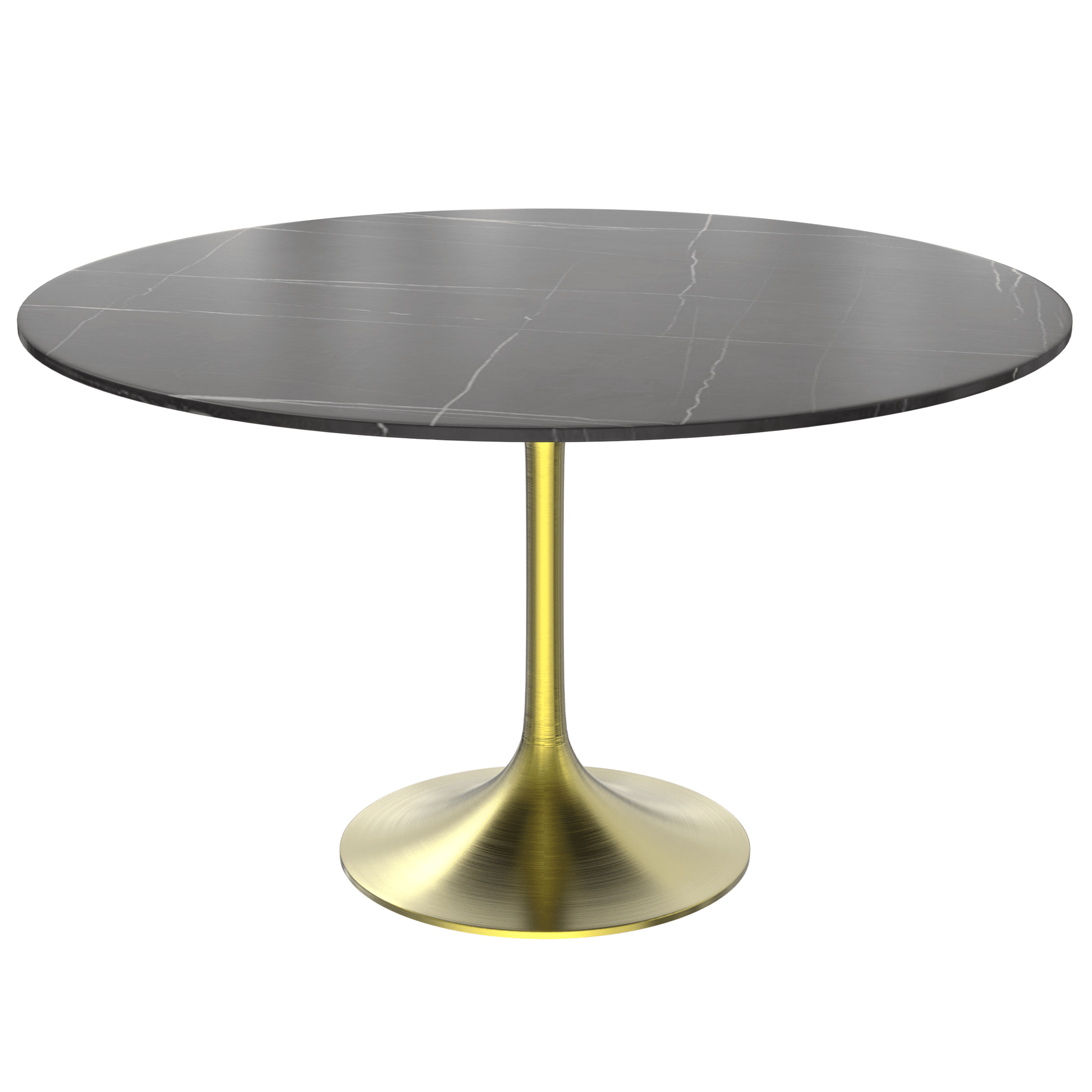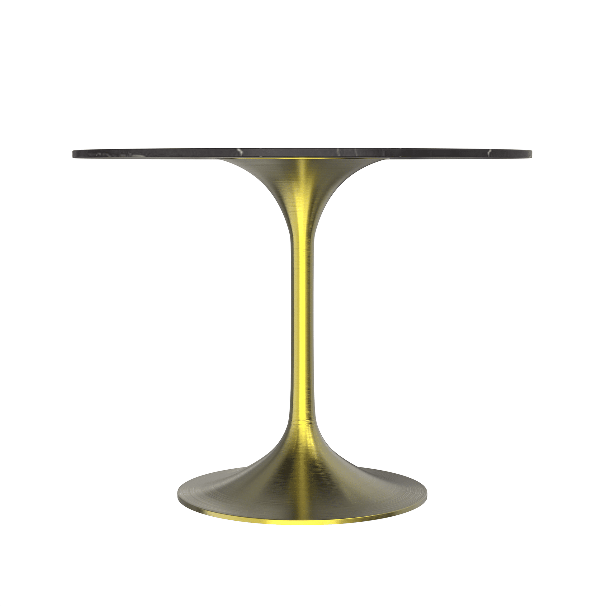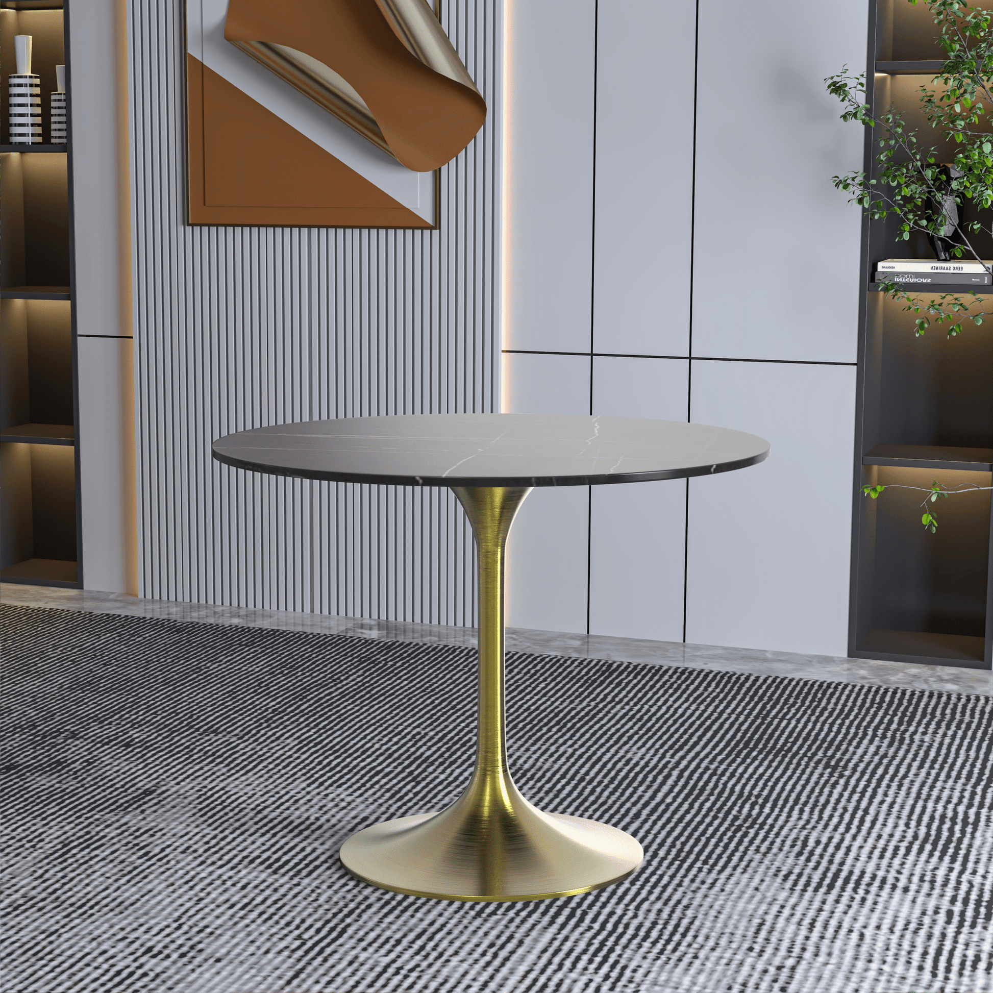 Verve Round Dining Table with MDF/Sintered Stone/Resin Tabletop in Gold Stainless Steel Pedestal Base