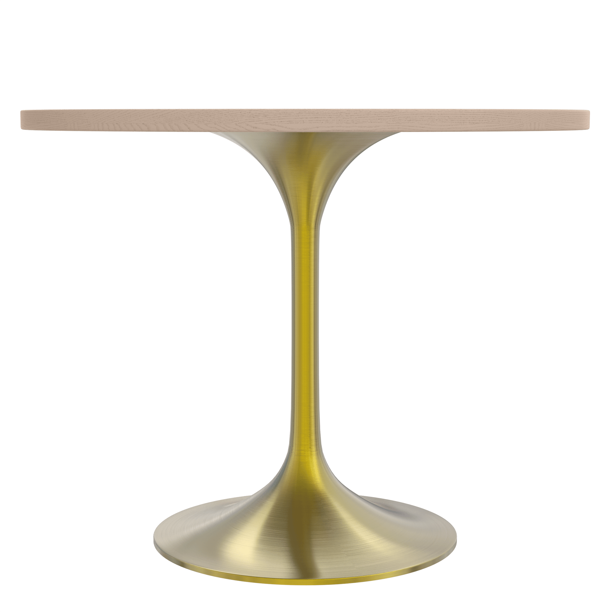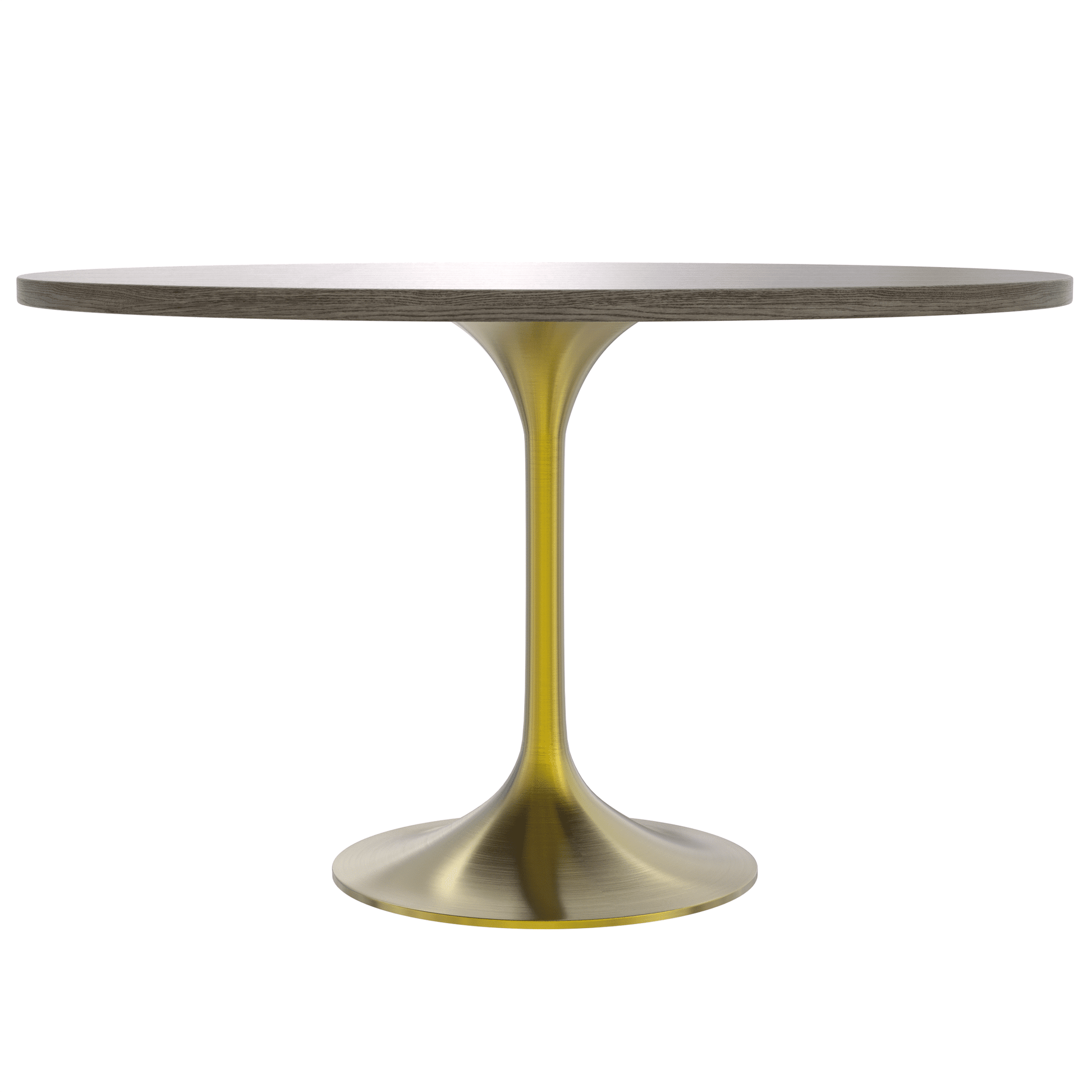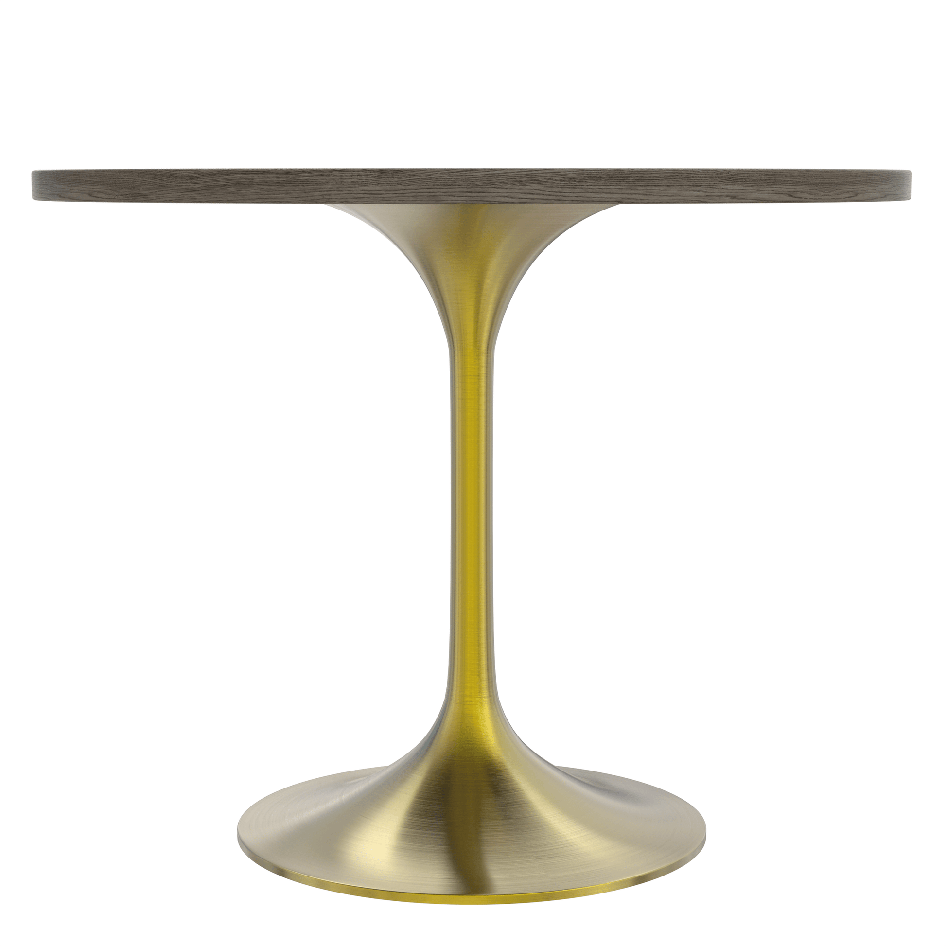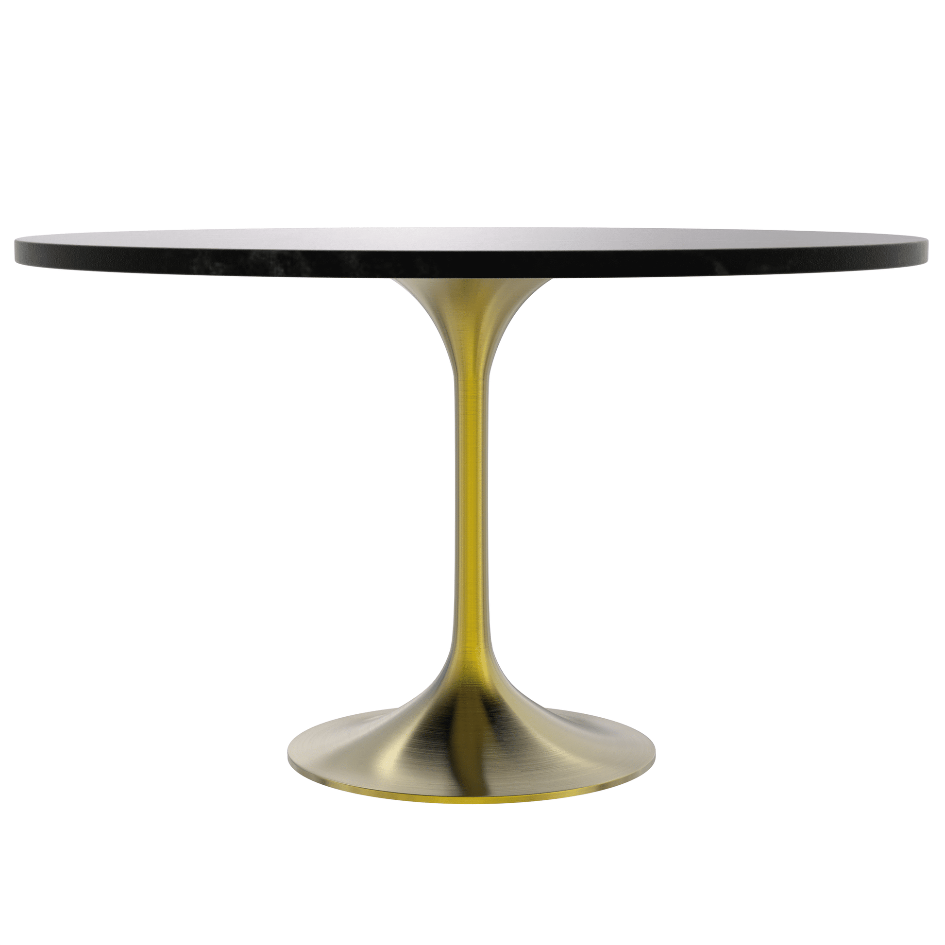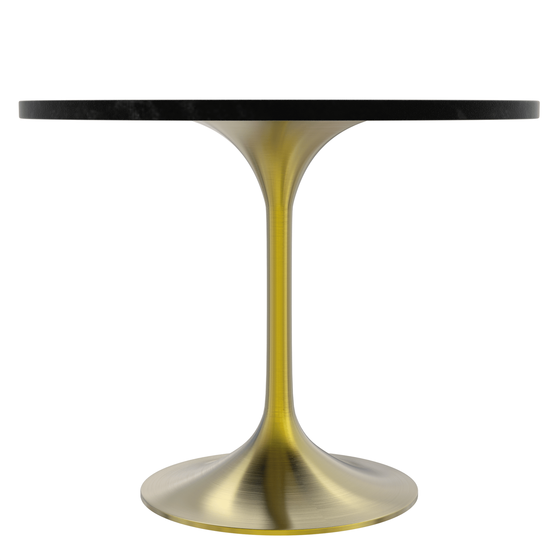 Verve Round Dining Table with MDF/Sintered Stone/Resin Tabletop in Gold Stainless Steel Pedestal Base