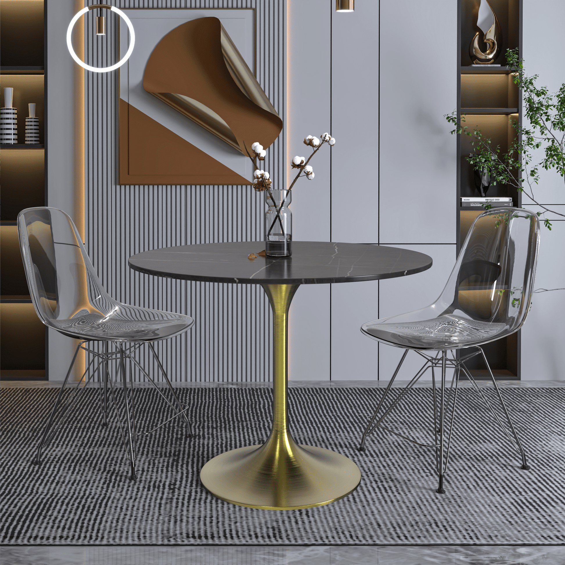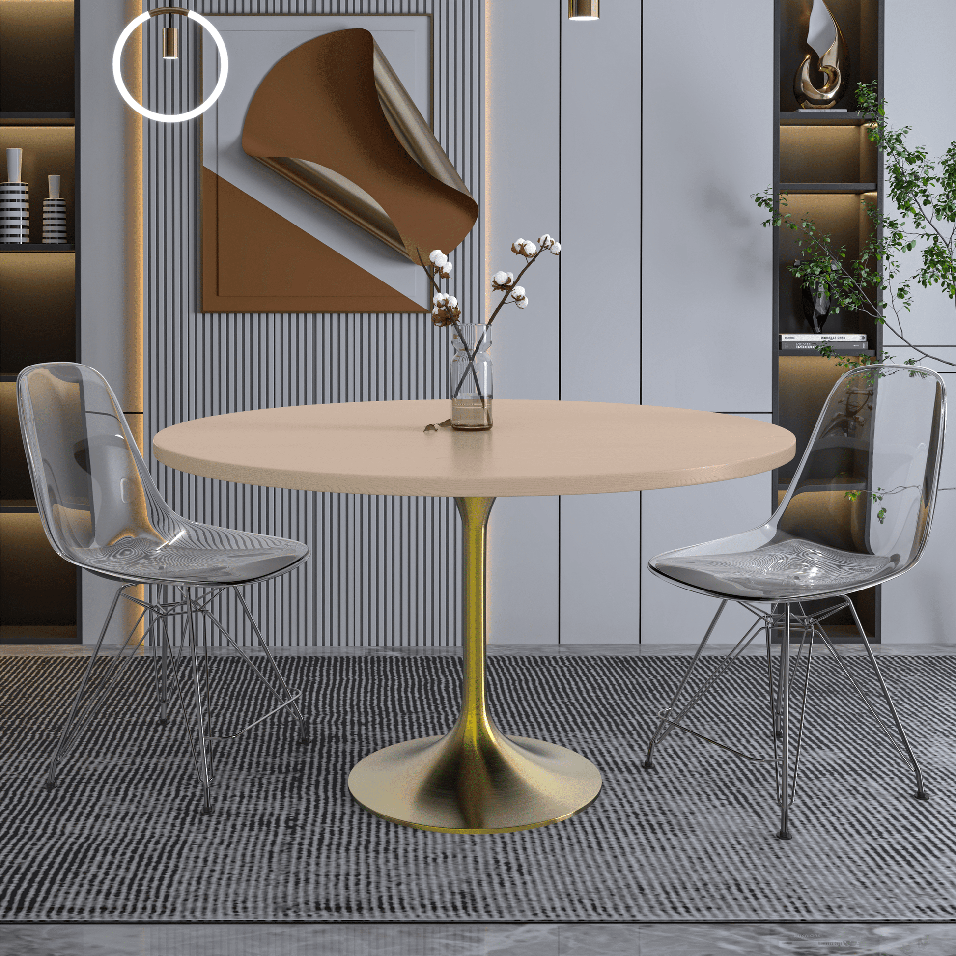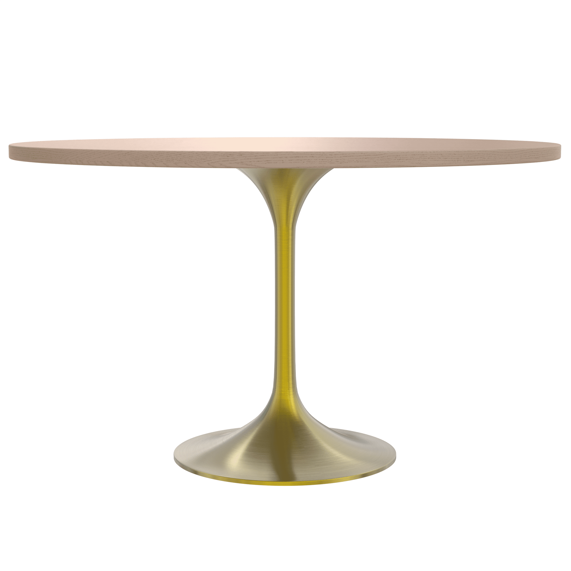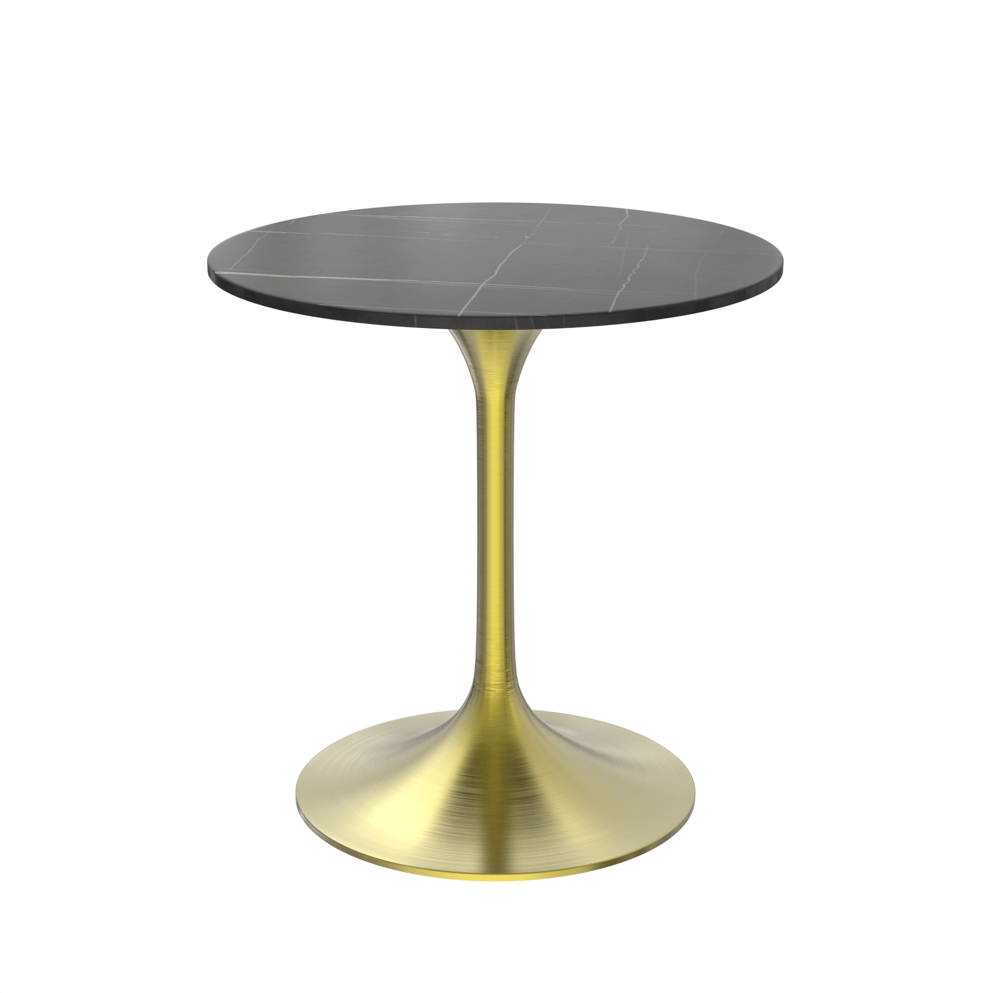 Verve Round Dining Table with MDF/Sintered Stone/Resin Tabletop in Gold Stainless Steel Pedestal Base