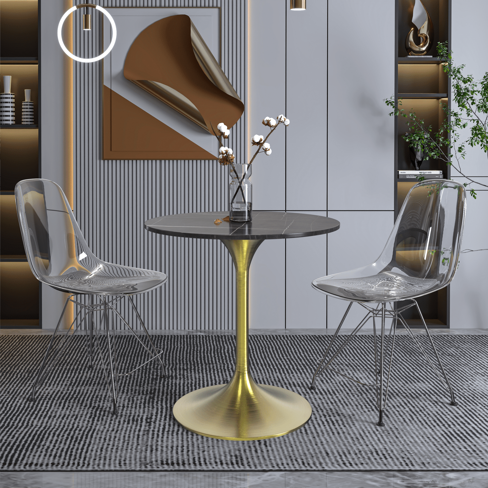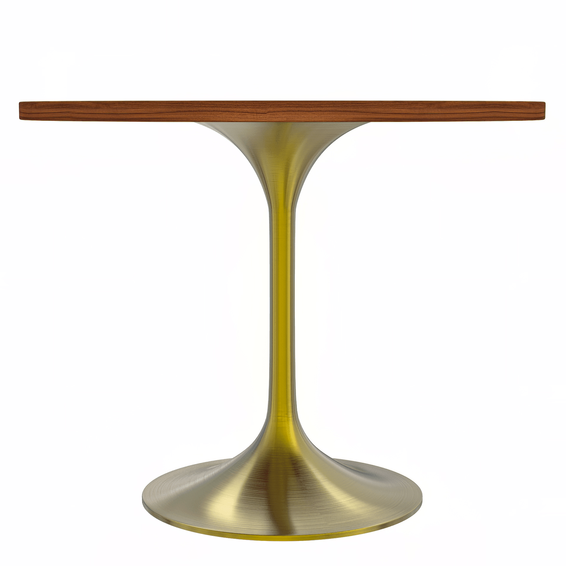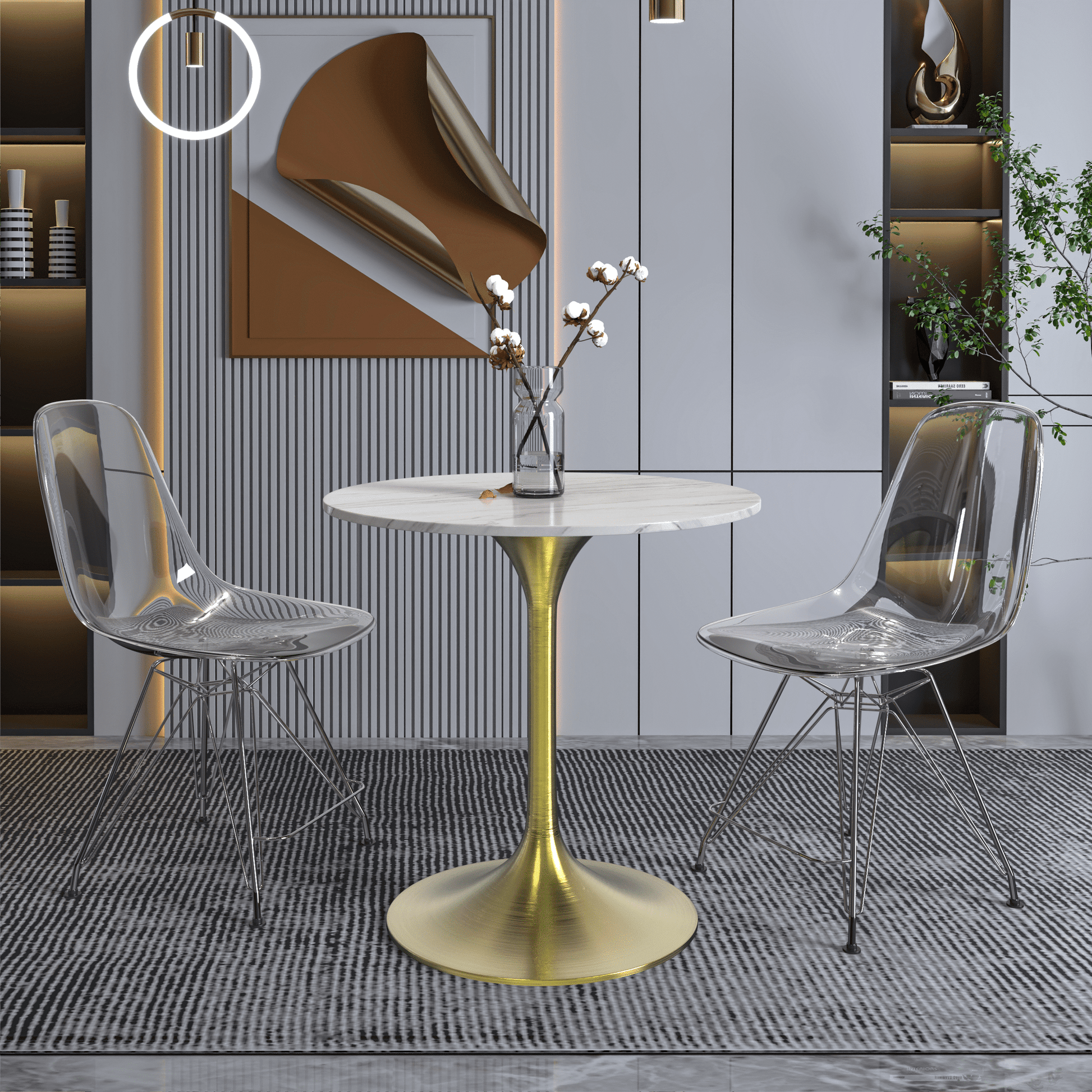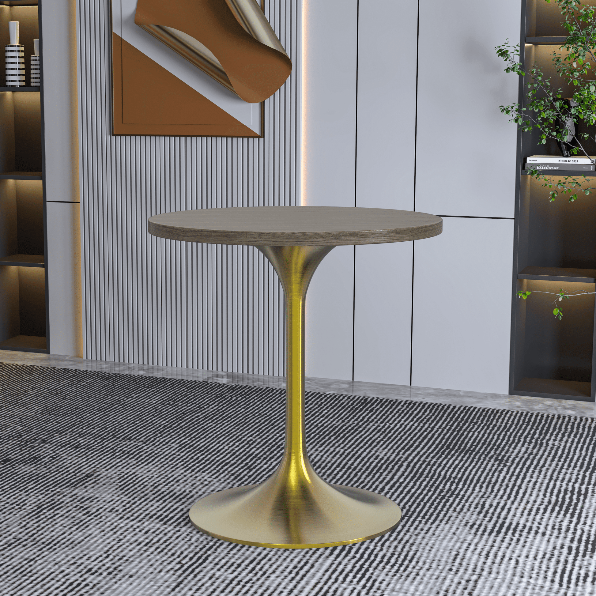 Verve Round Dining Table with MDF/Sintered Stone/Resin Tabletop in Gold Stainless Steel Pedestal Base
