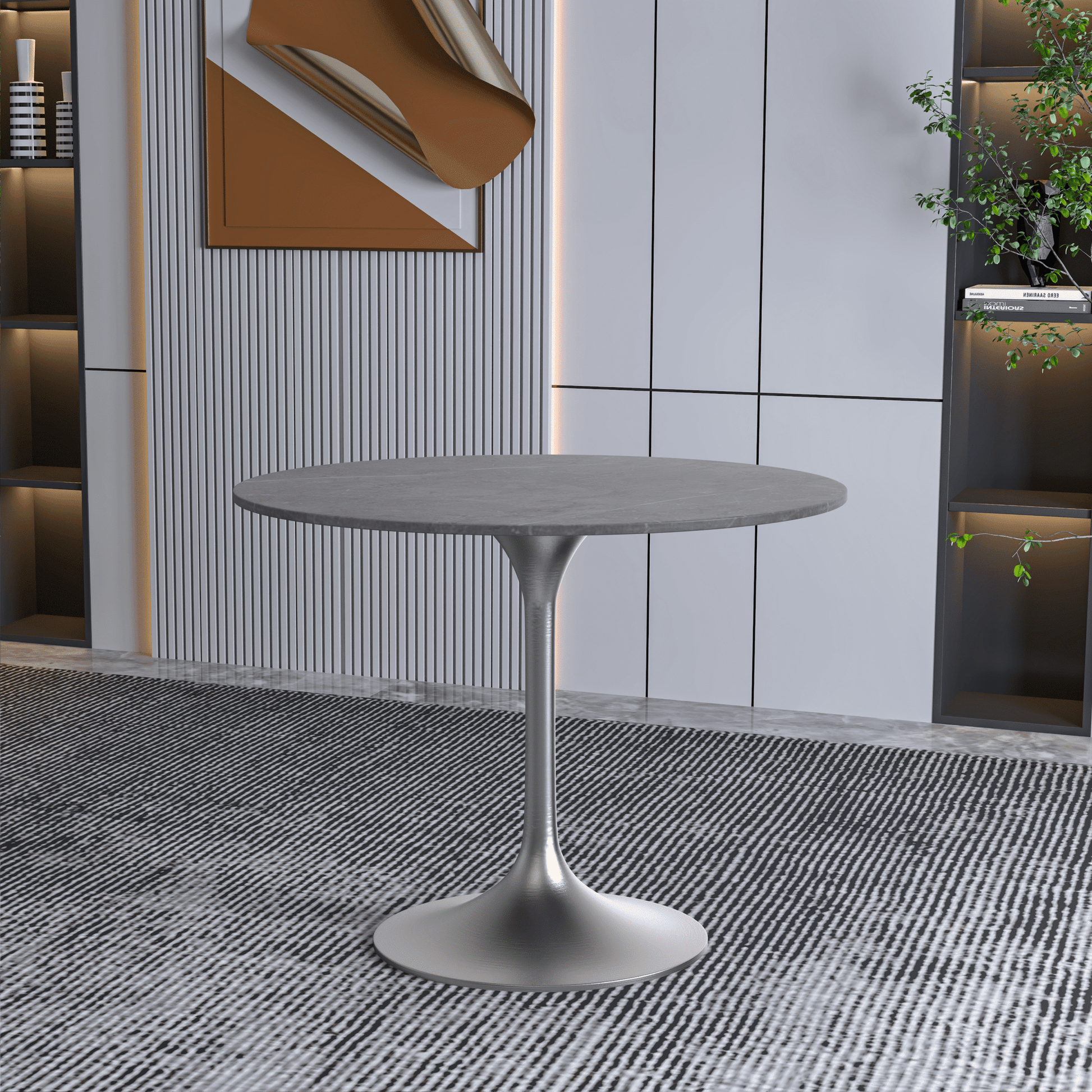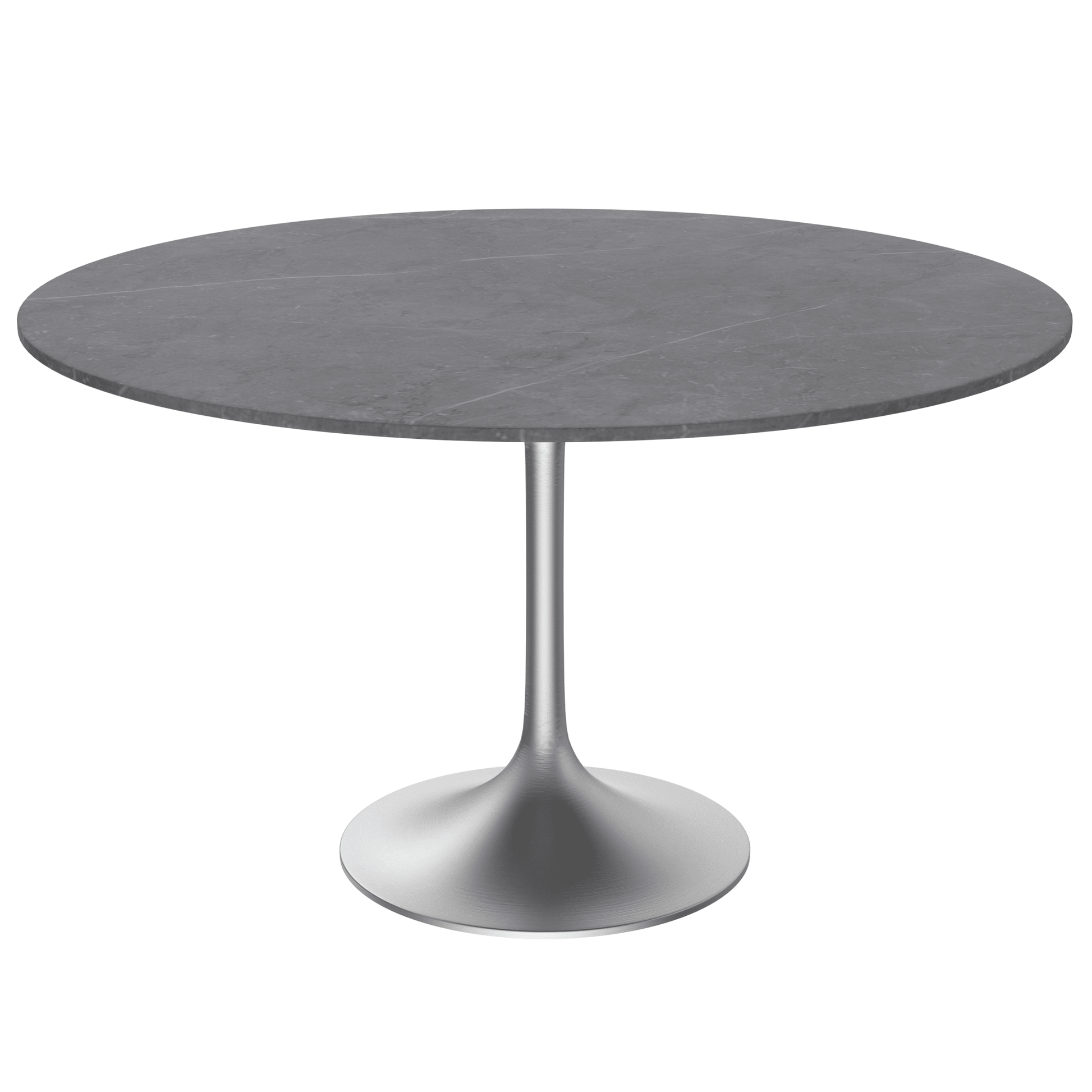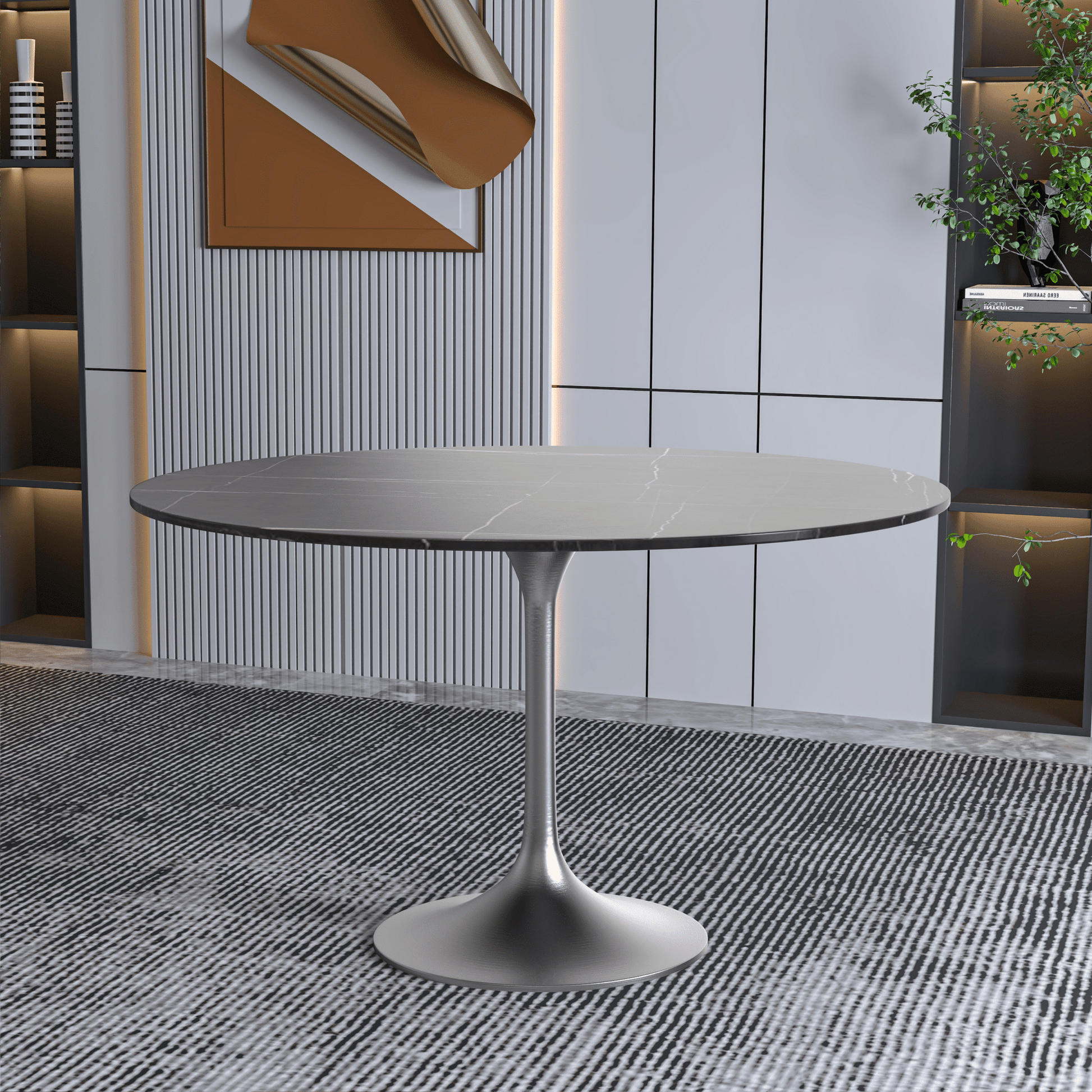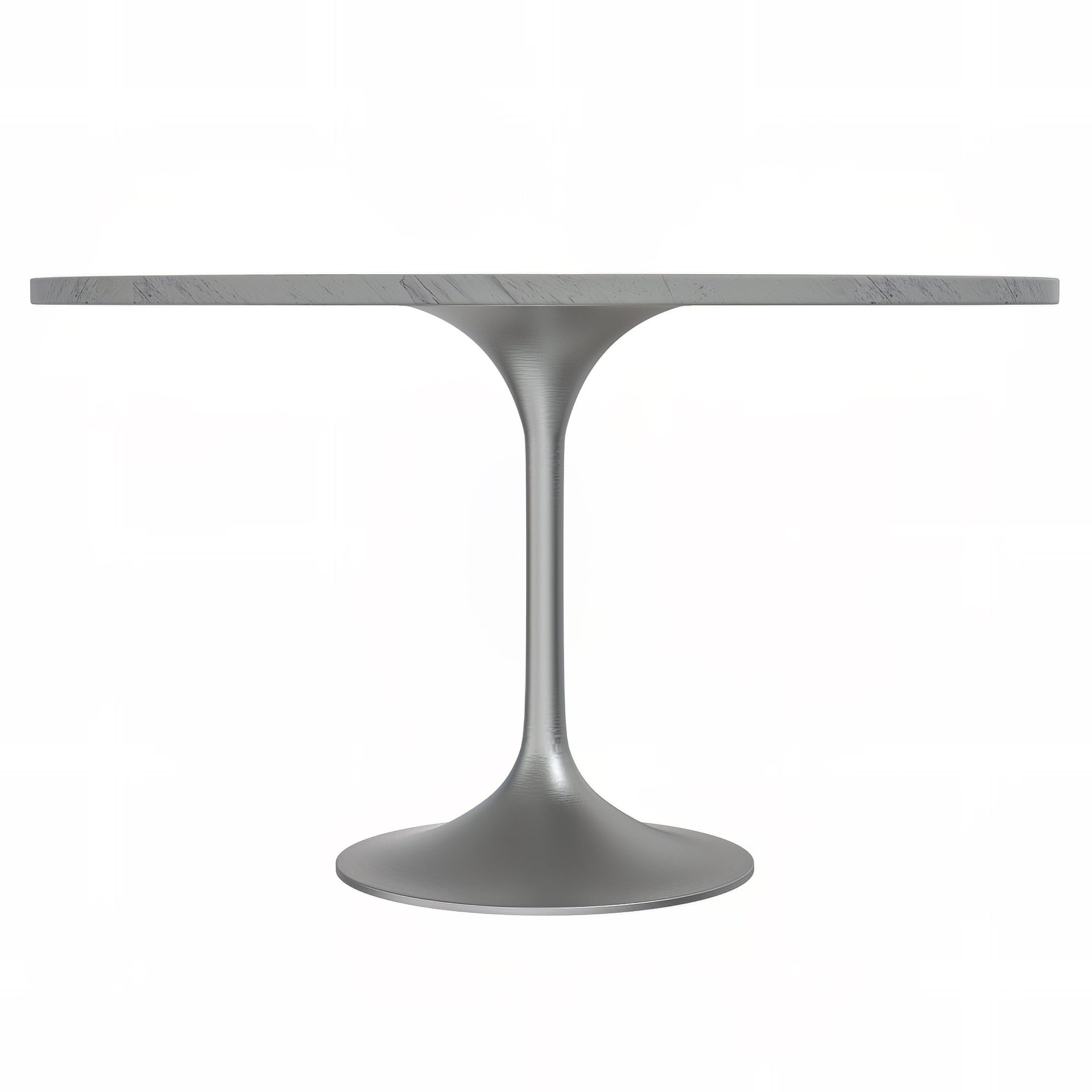 Verve Round Dining Table with MDF/Sintered Stone/Resin Tabletop in Silver Stainless Steel Pedestal Base