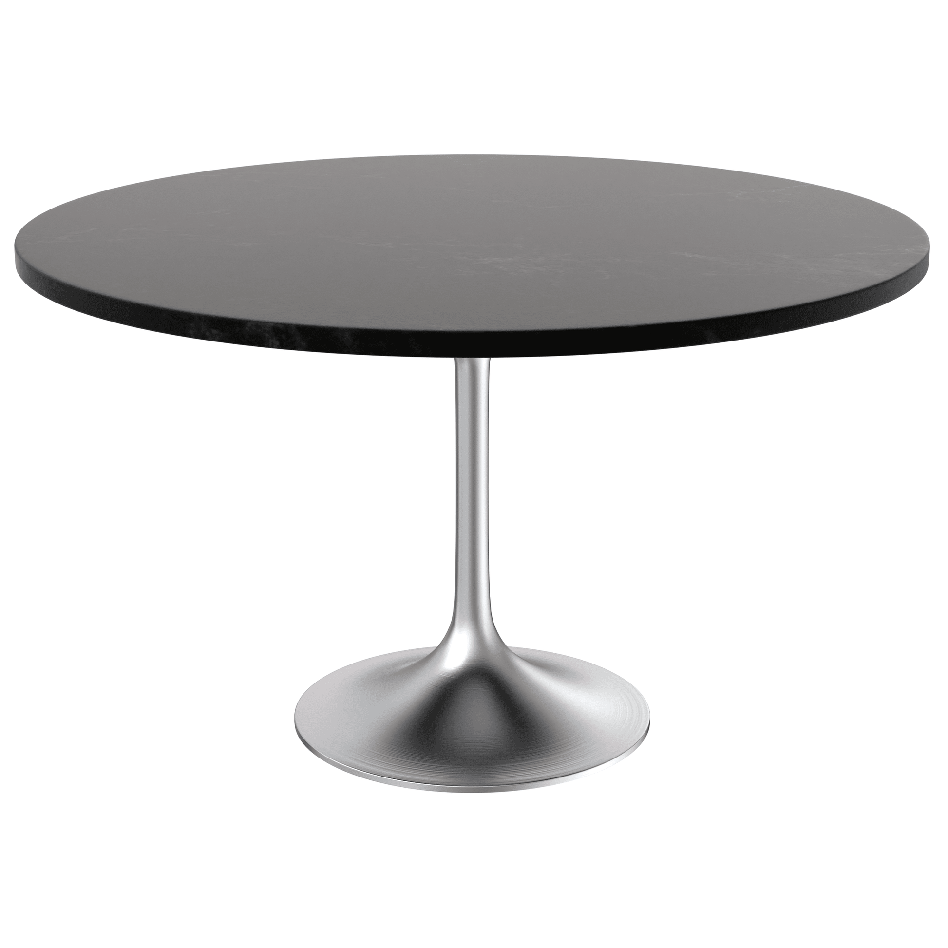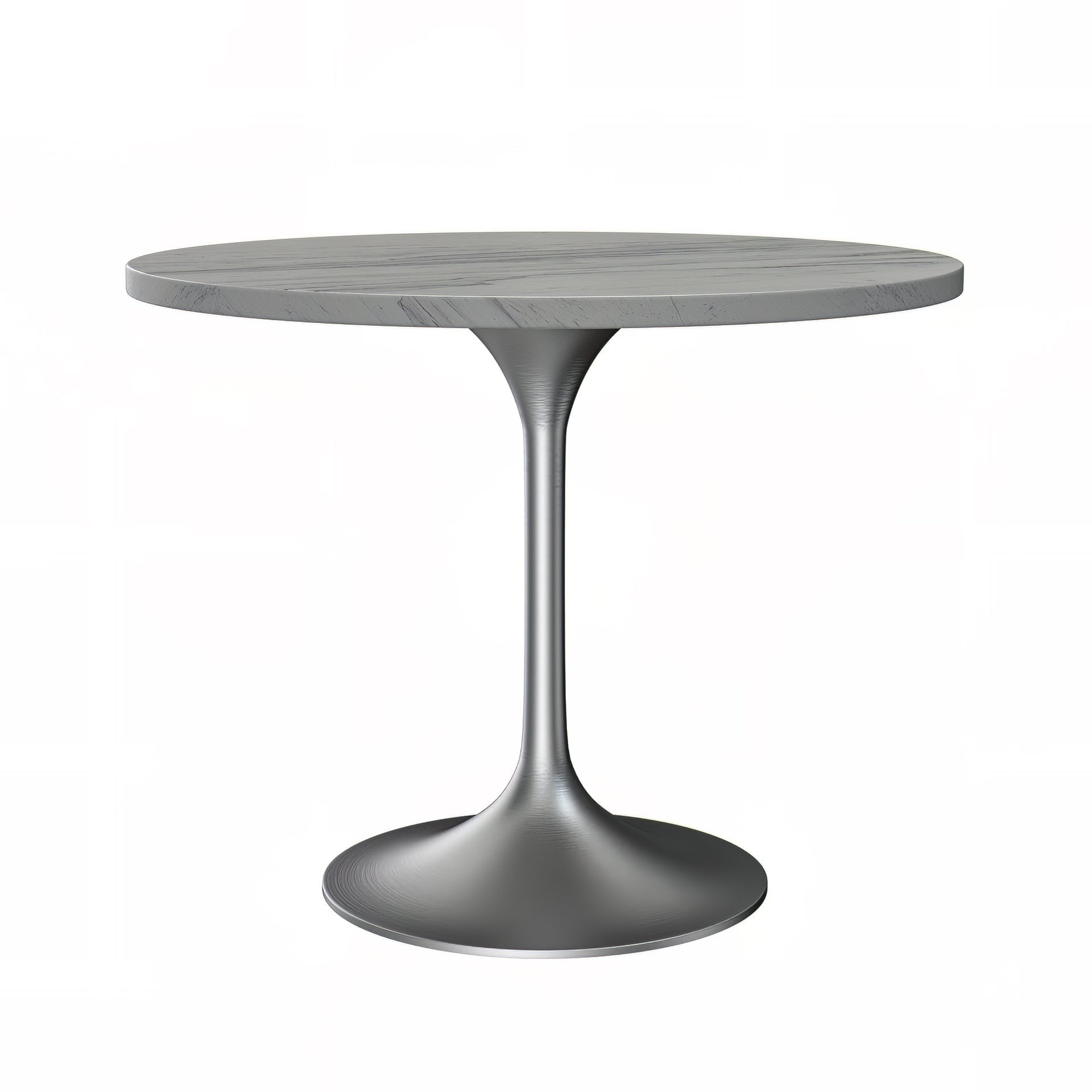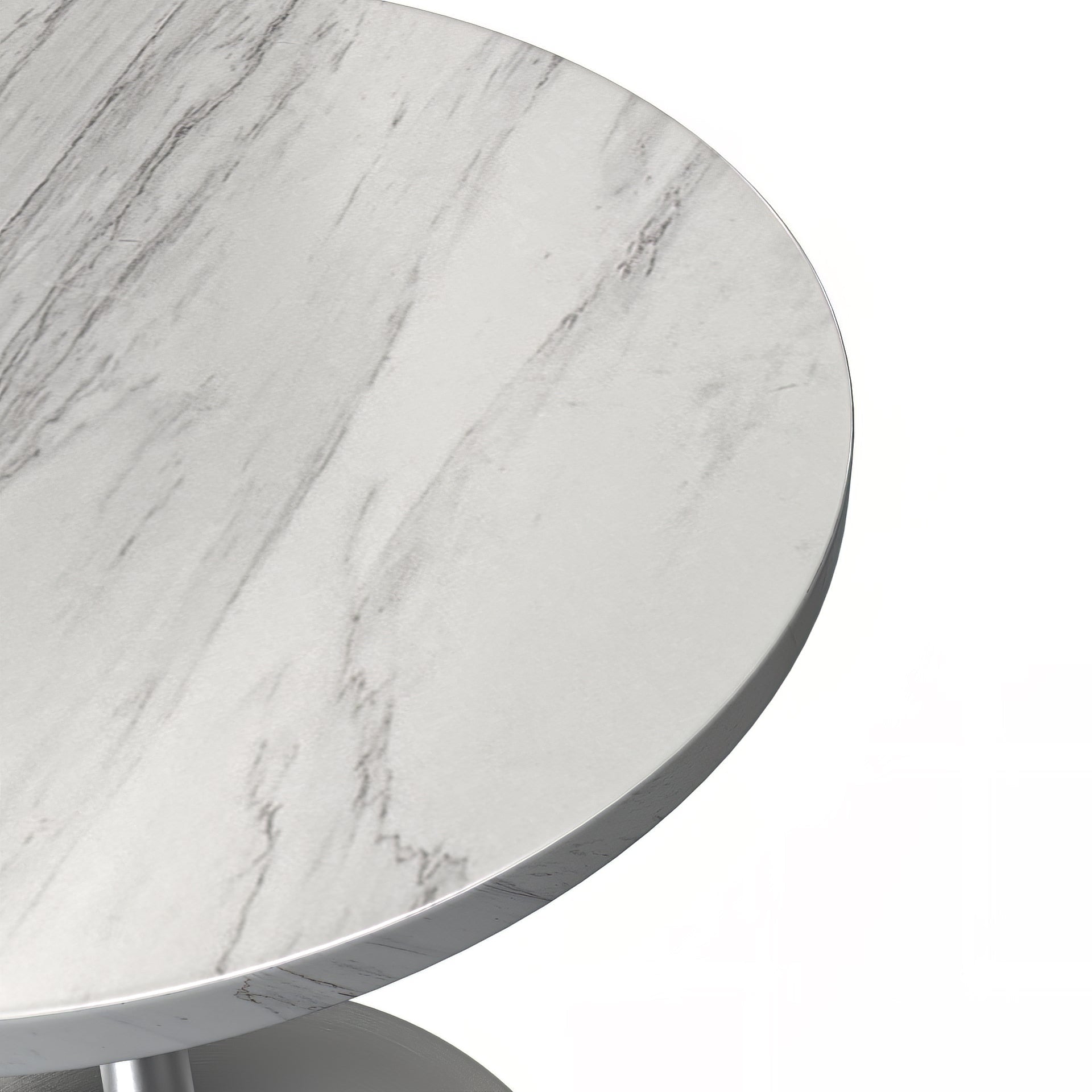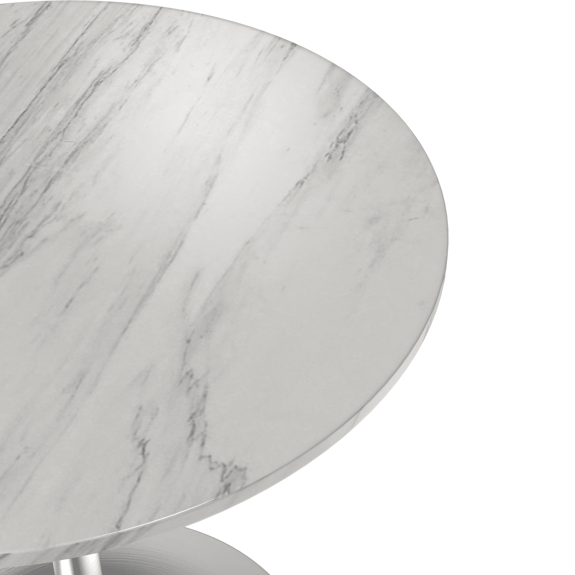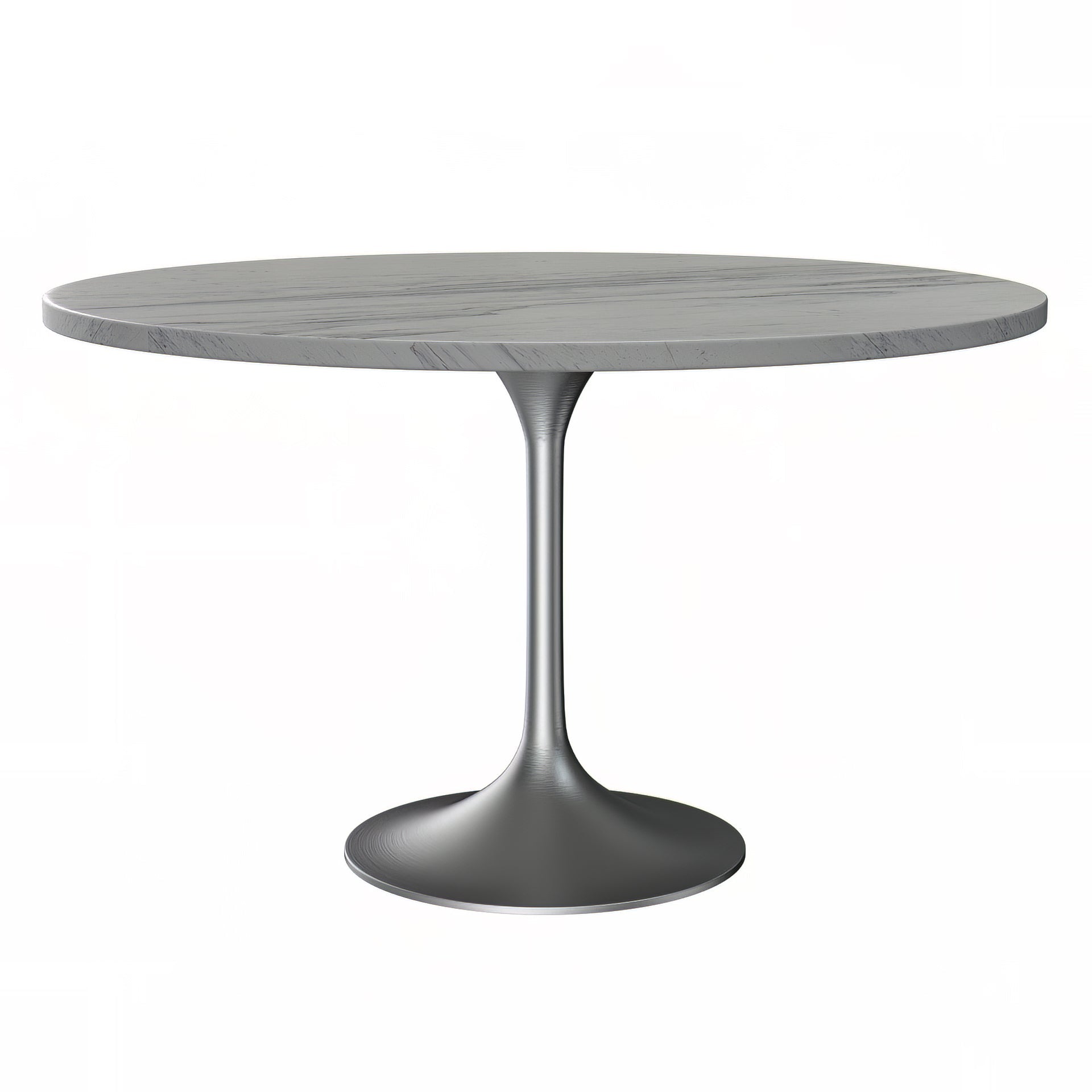 Verve Round Dining Table with MDF/Sintered Stone/Resin Tabletop in Silver Stainless Steel Pedestal Base