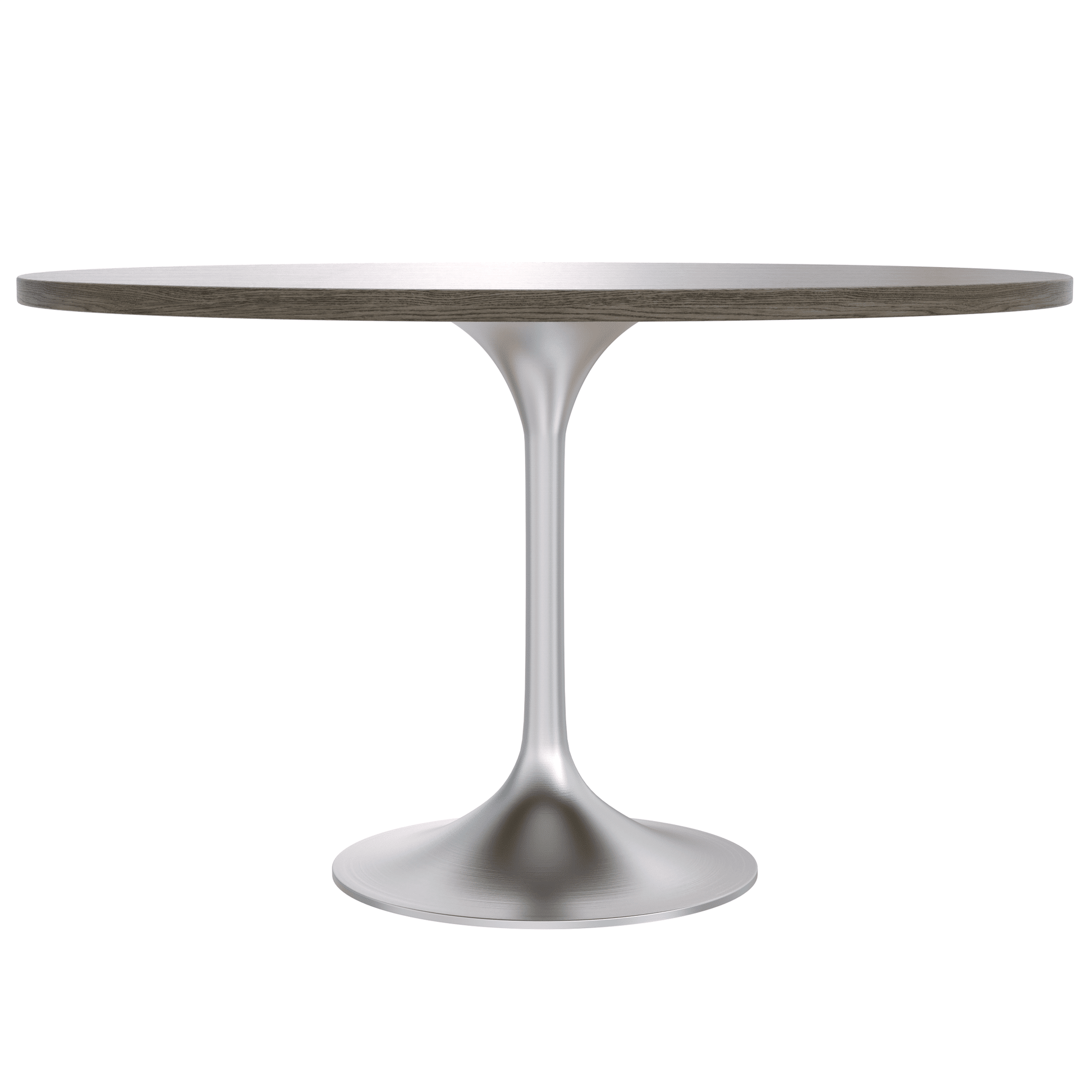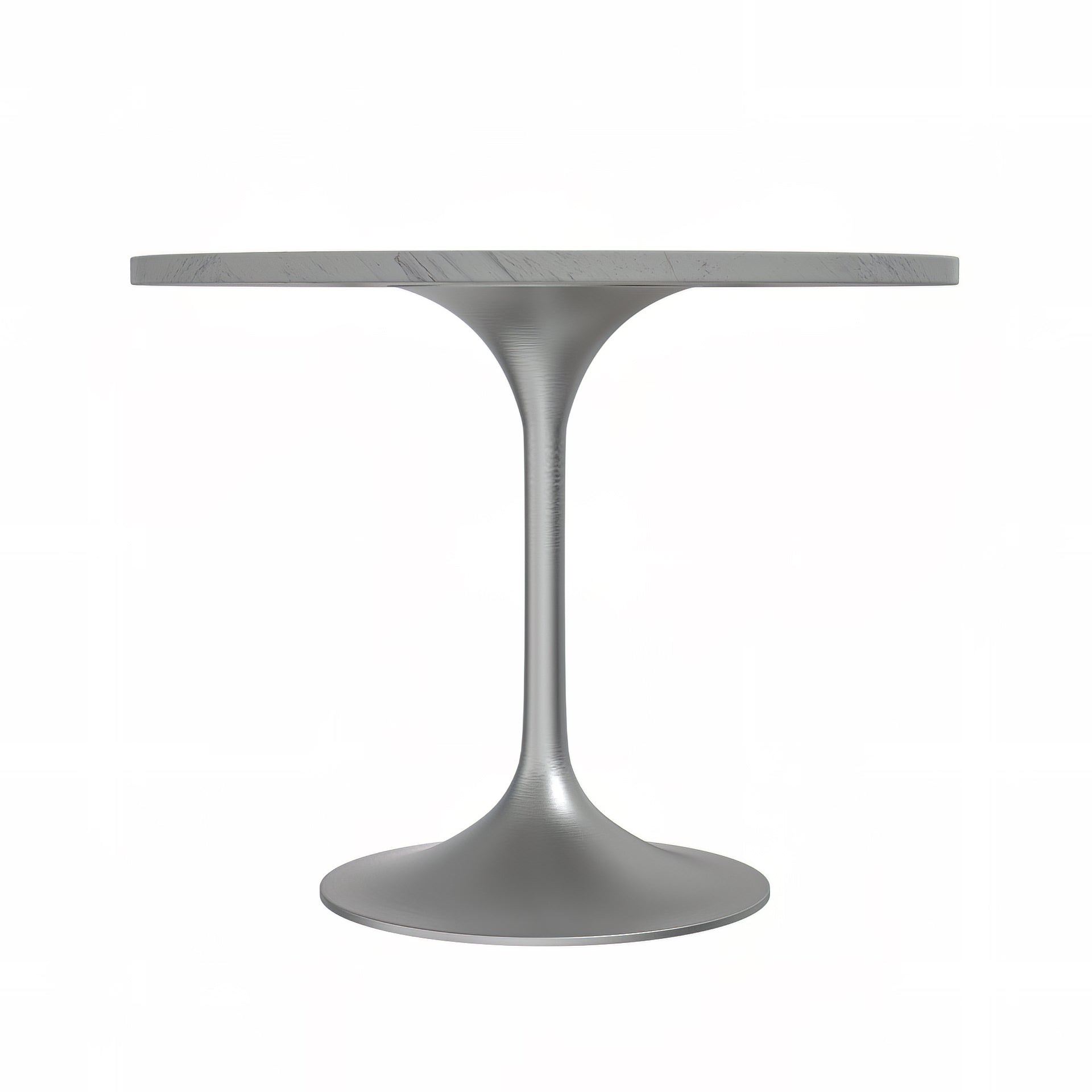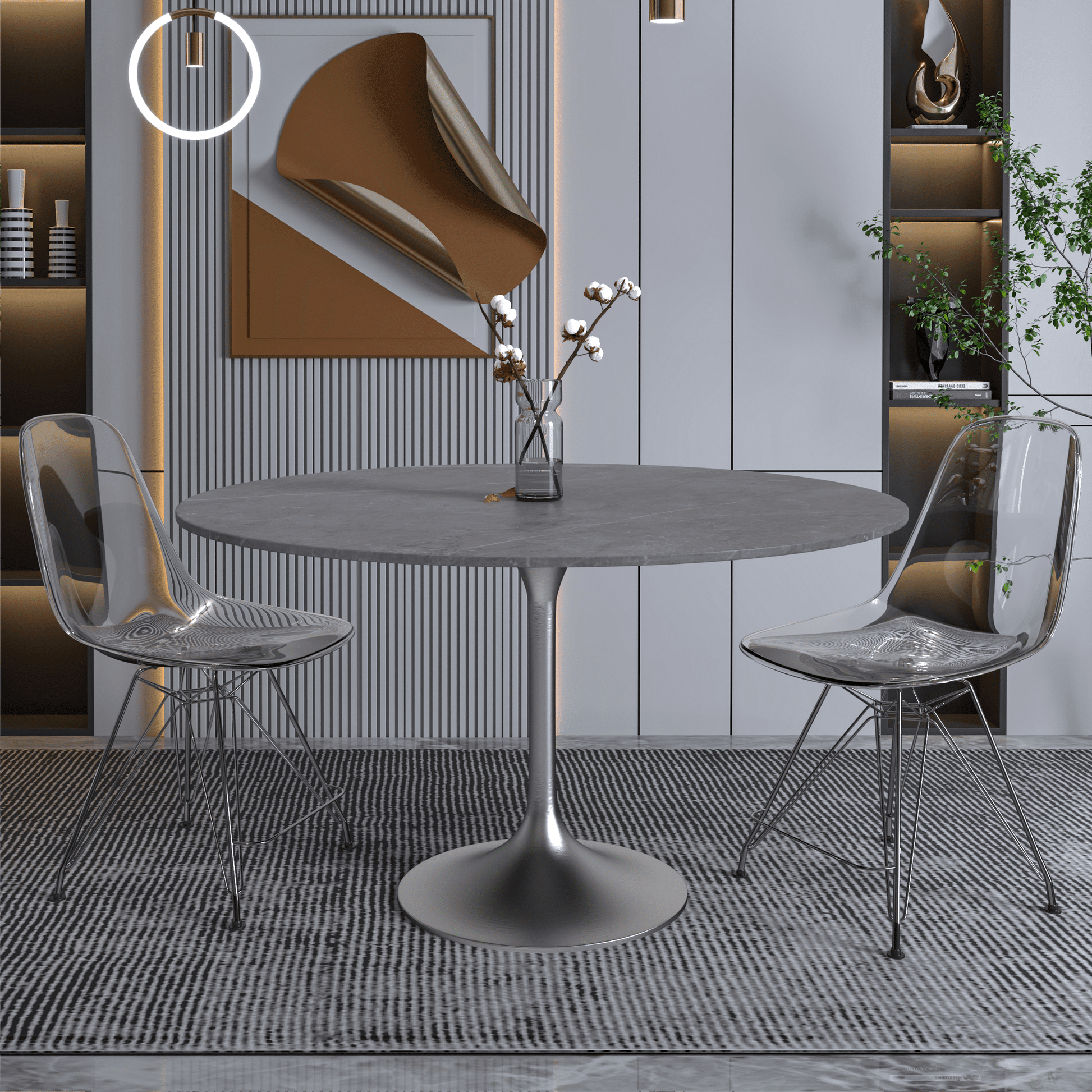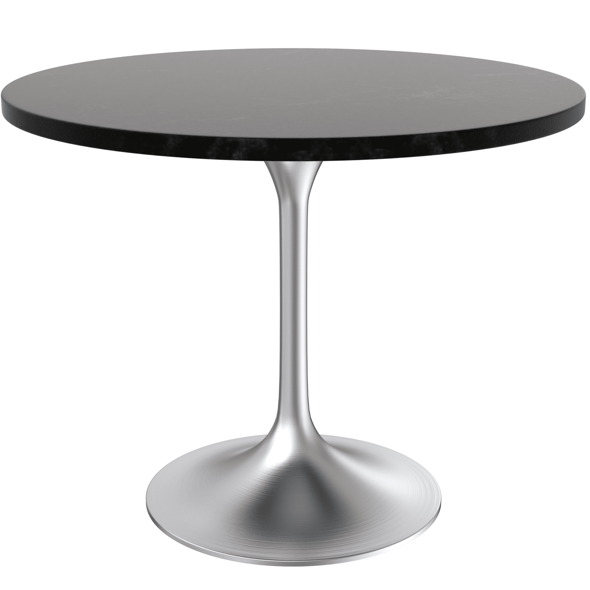 Verve Round Dining Table with MDF/Sintered Stone/Resin Tabletop in Silver Stainless Steel Pedestal Base