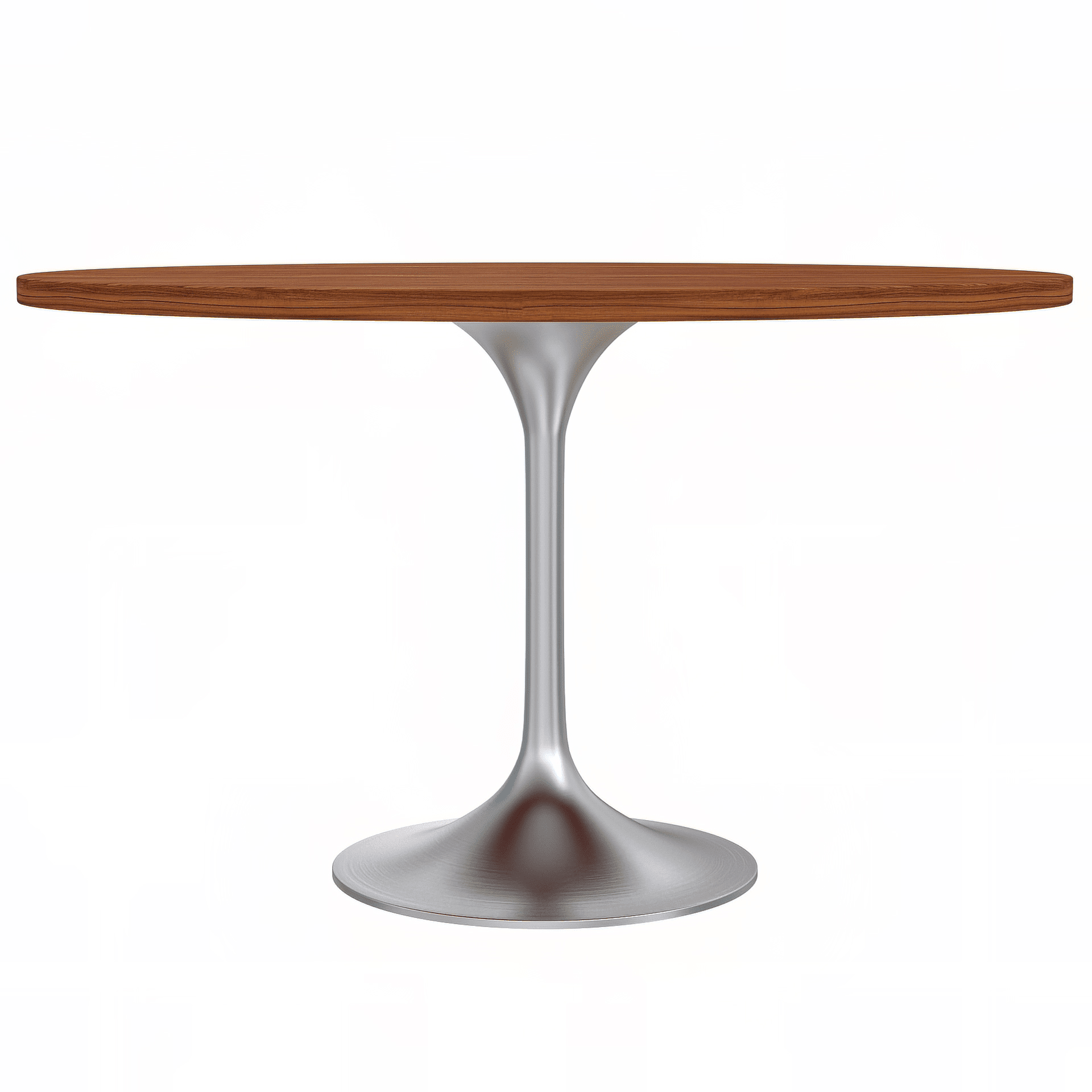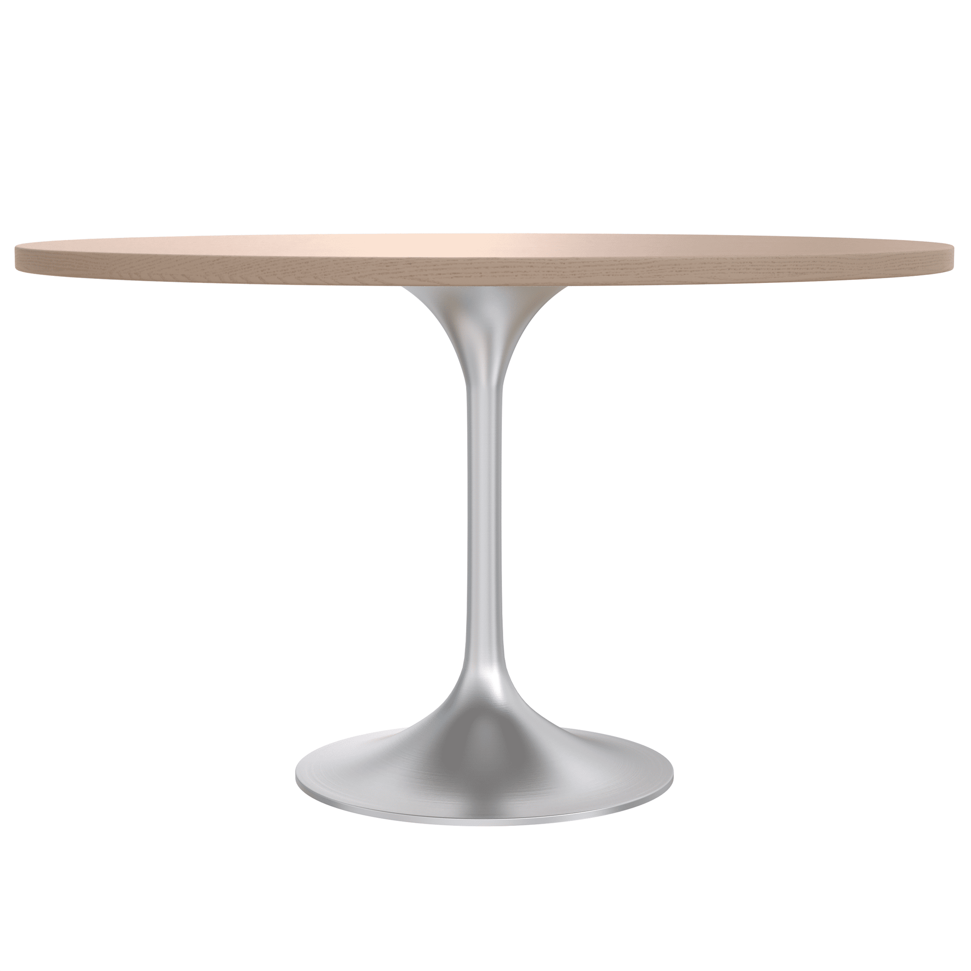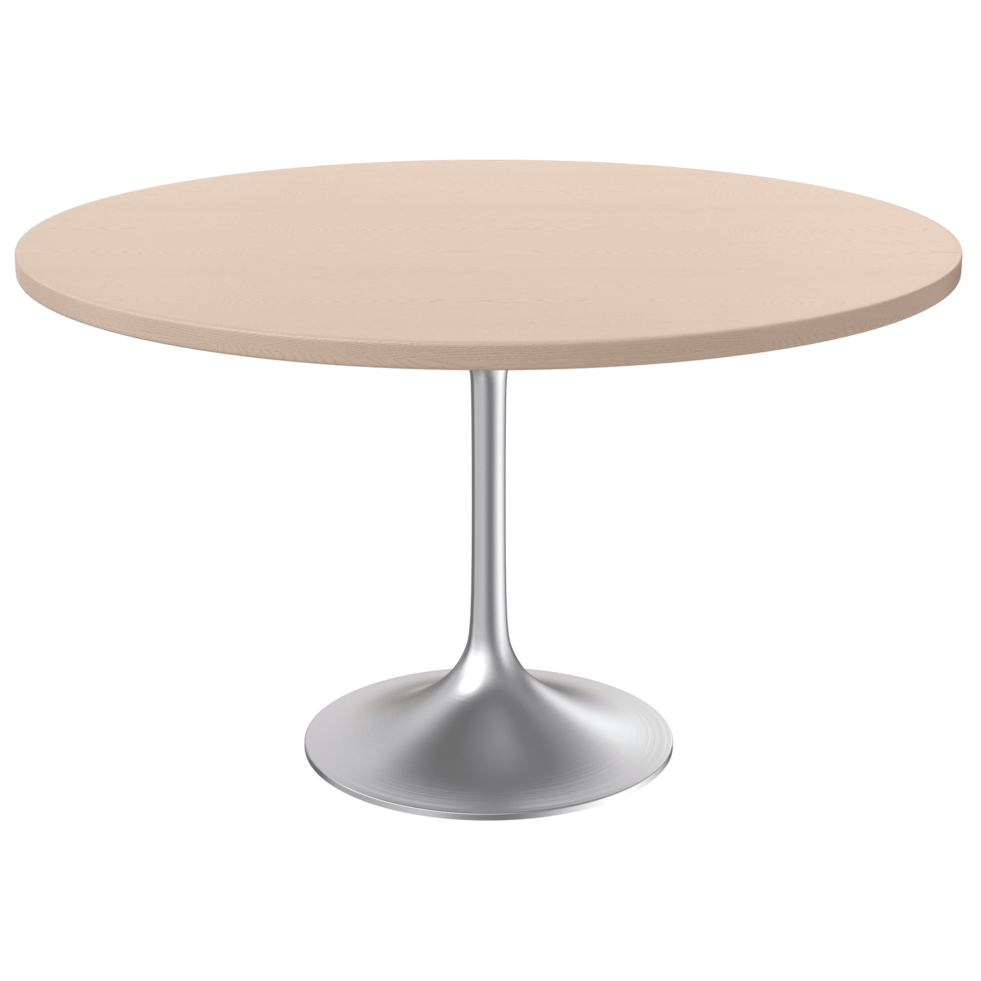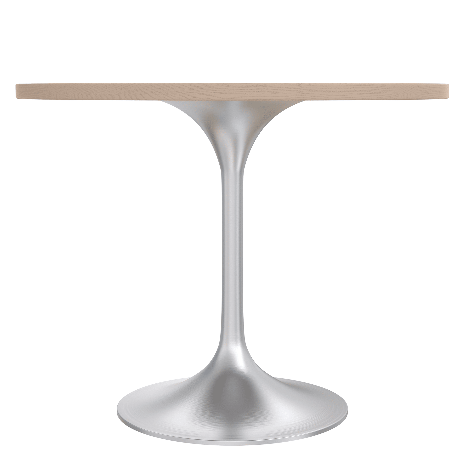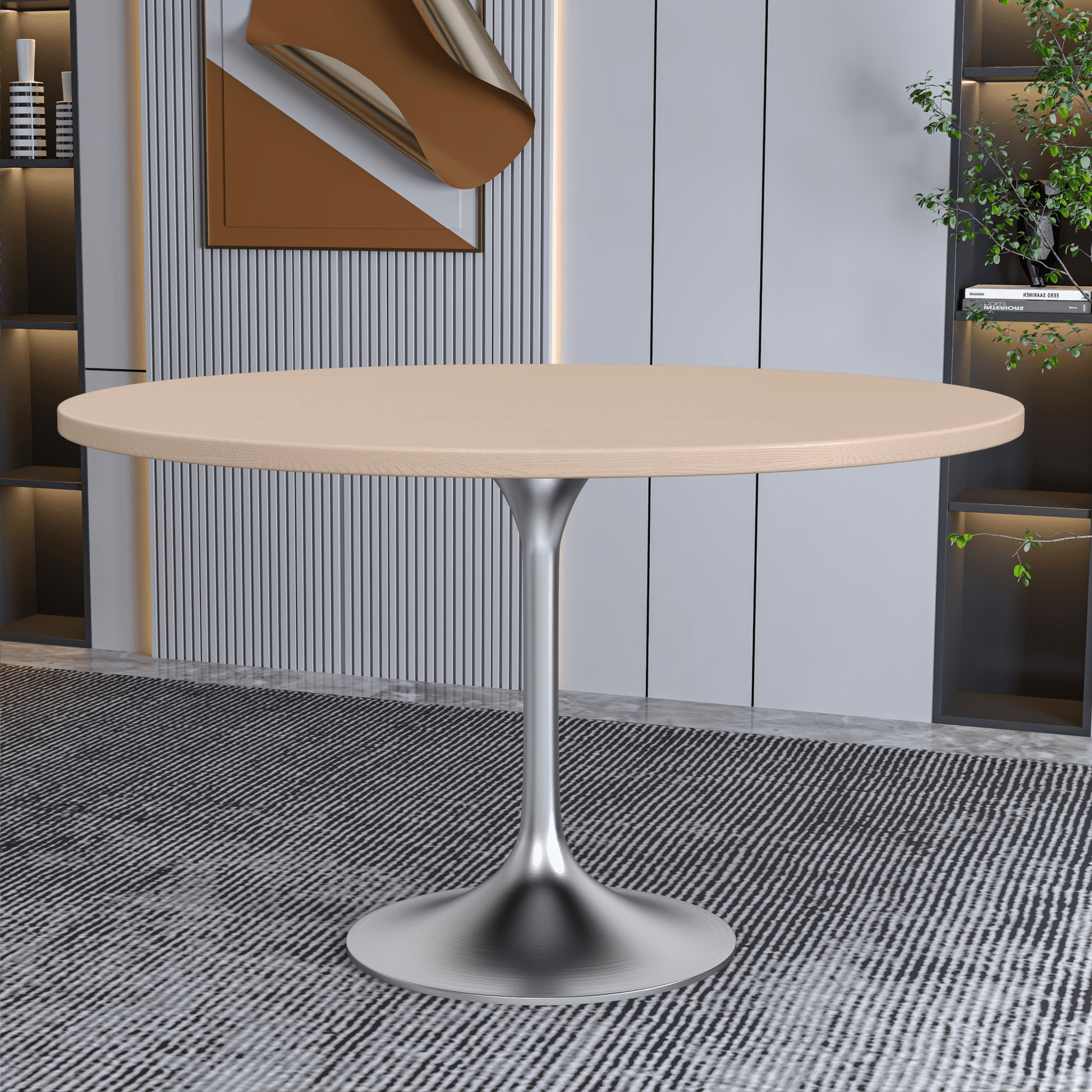 Verve Round Dining Table with MDF/Sintered Stone/Resin Tabletop in Silver Stainless Steel Pedestal Base