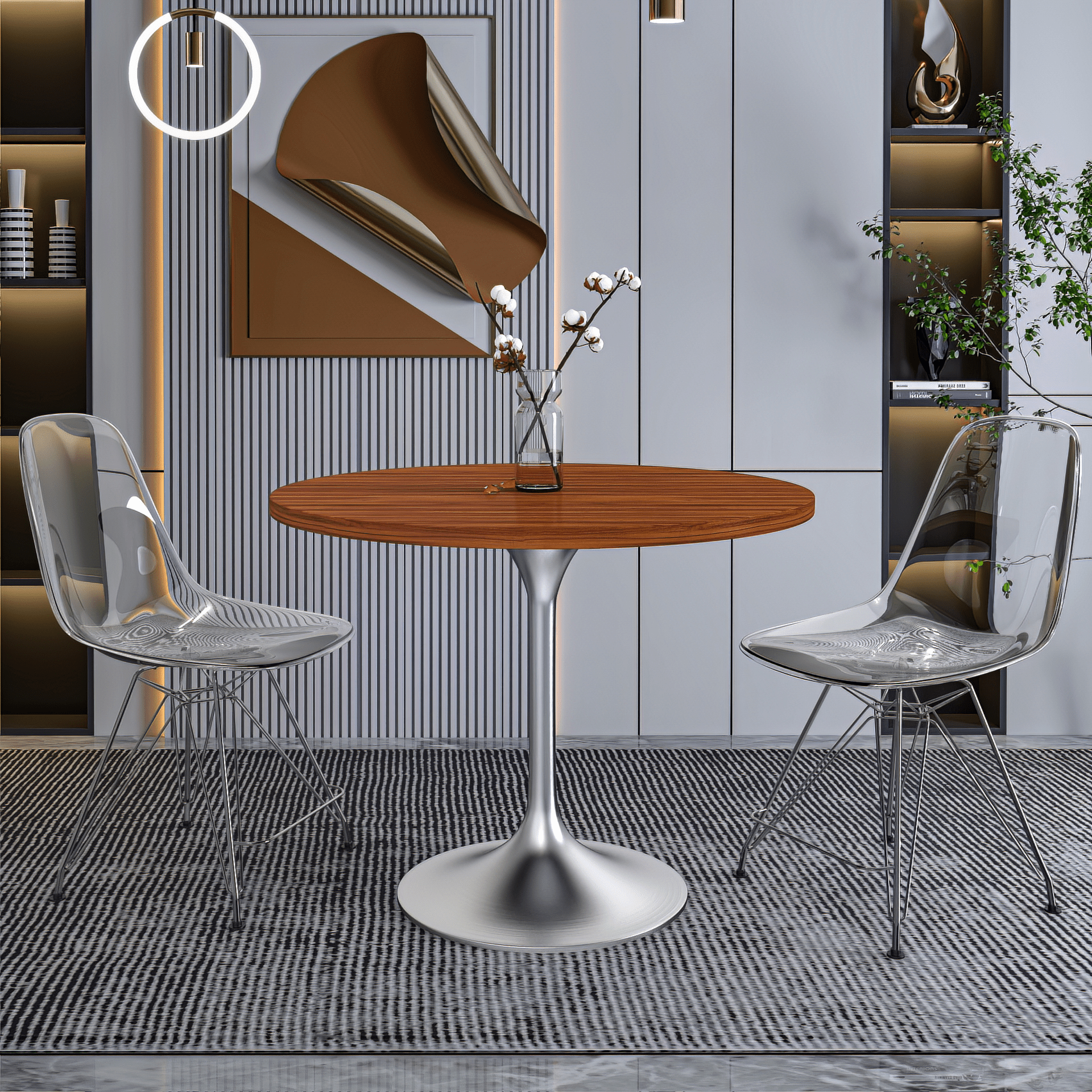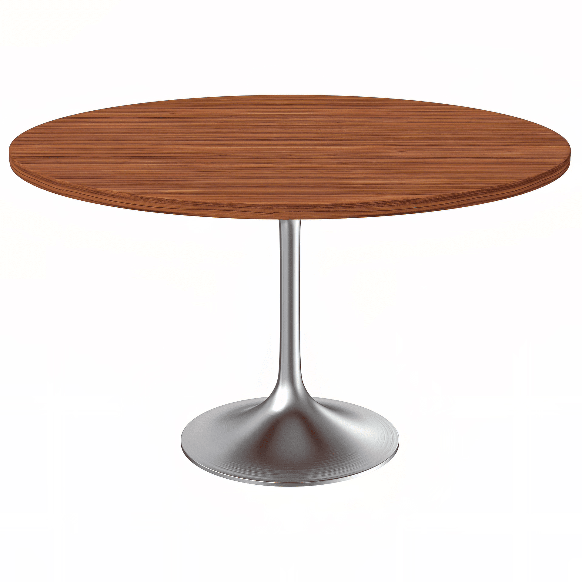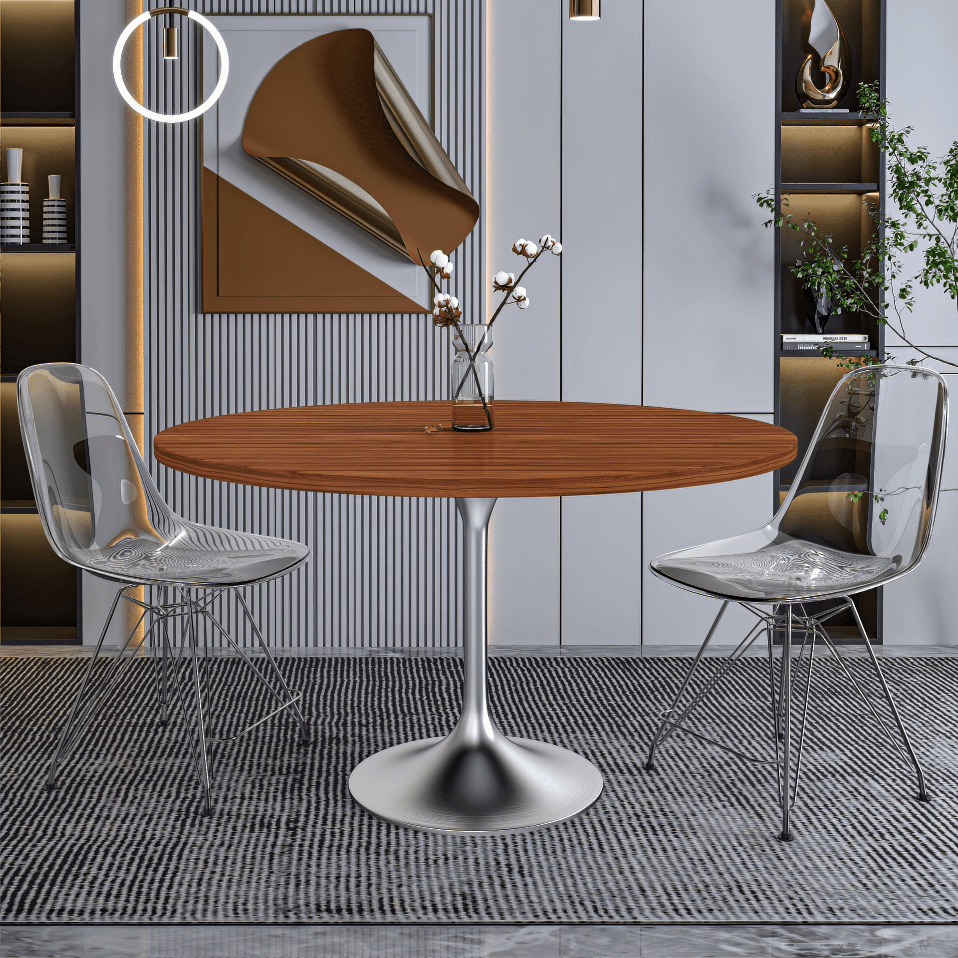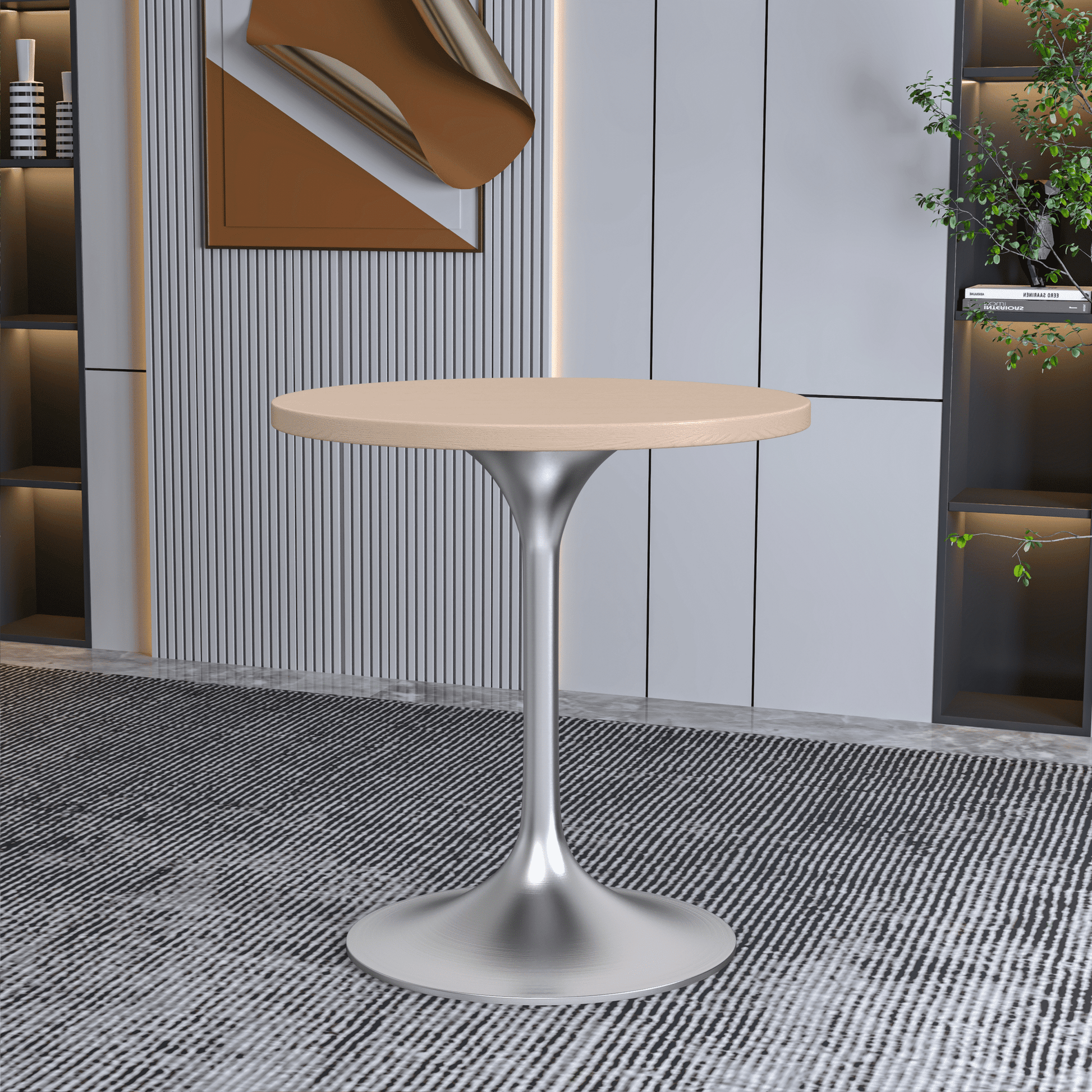 Verve Round Dining Table with MDF/Sintered Stone/Resin Tabletop in Silver Stainless Steel Pedestal Base
