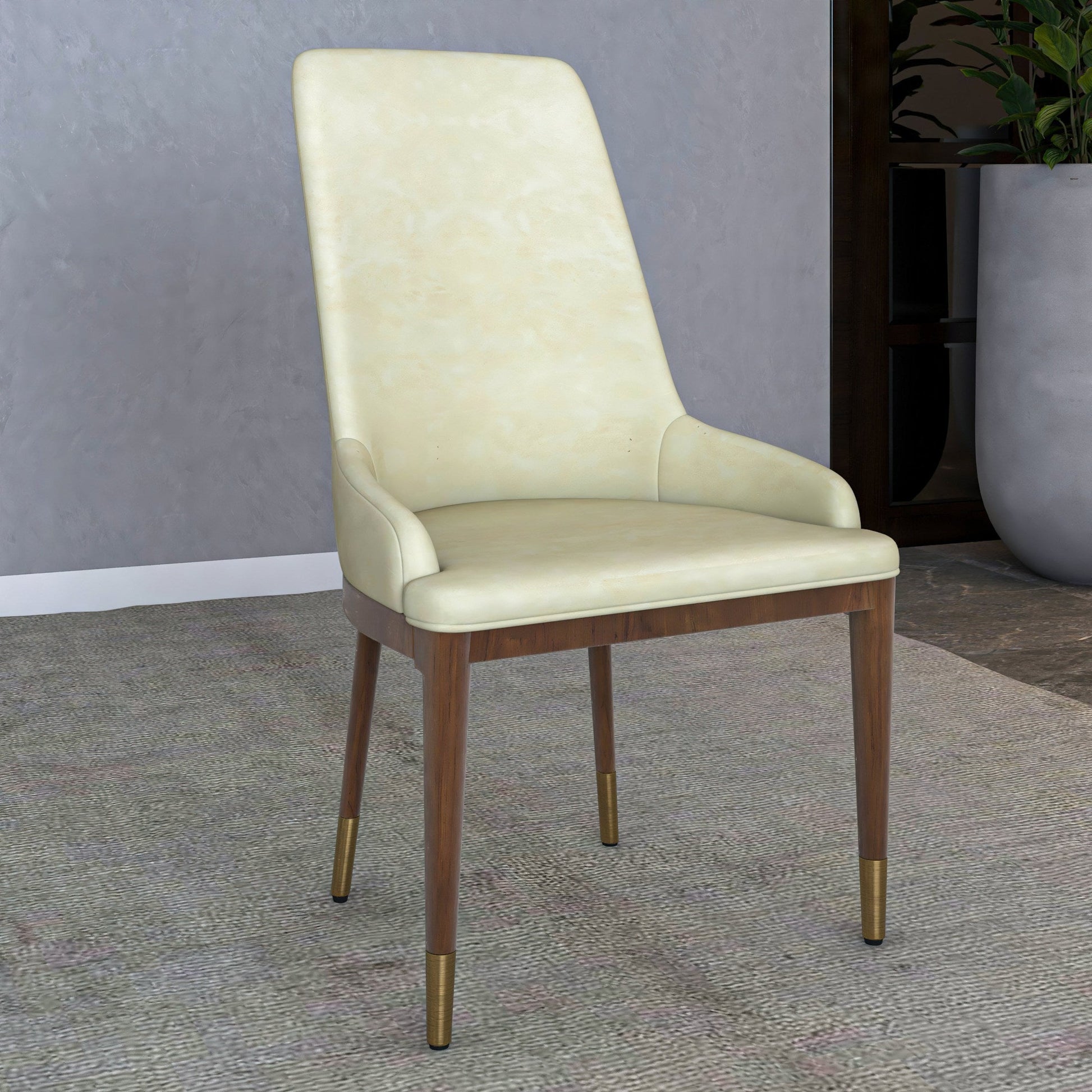 Viva Dining Side Chair Upholstered in Leather with Brown Rubberwood Legs