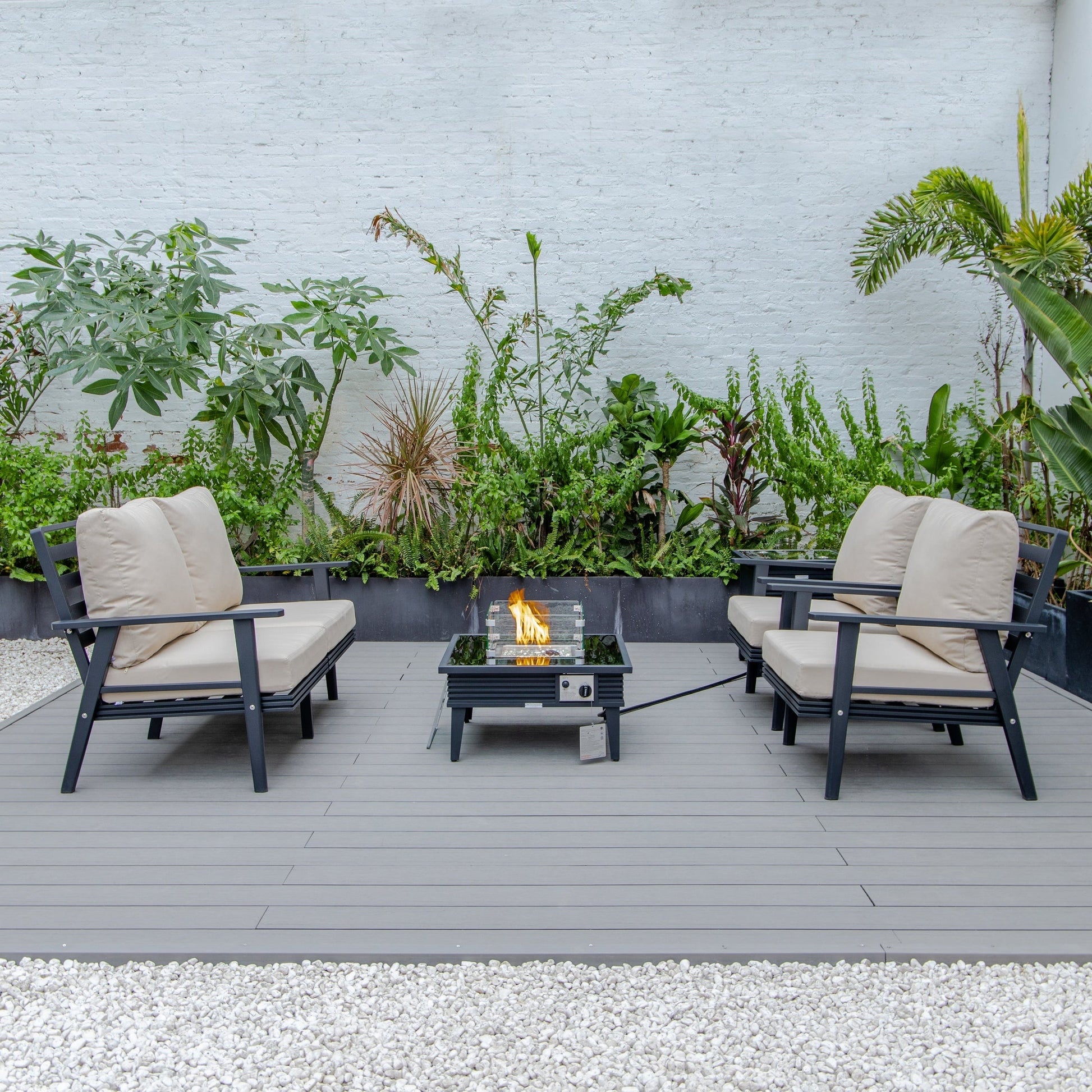 Transform your backyard into a cozy oasis with the Walbrooke Aluminum Patio Conversation set. Invite friends over for cocktails around the fire pit table, while enjoying the comfort of super-soft, cotton-filled cushions. Made with weather-resistant, powder-coated aluminum, this set is built to last and adds a touch of modern style to any outdoor space. Fits up to 4 adults comfortably.